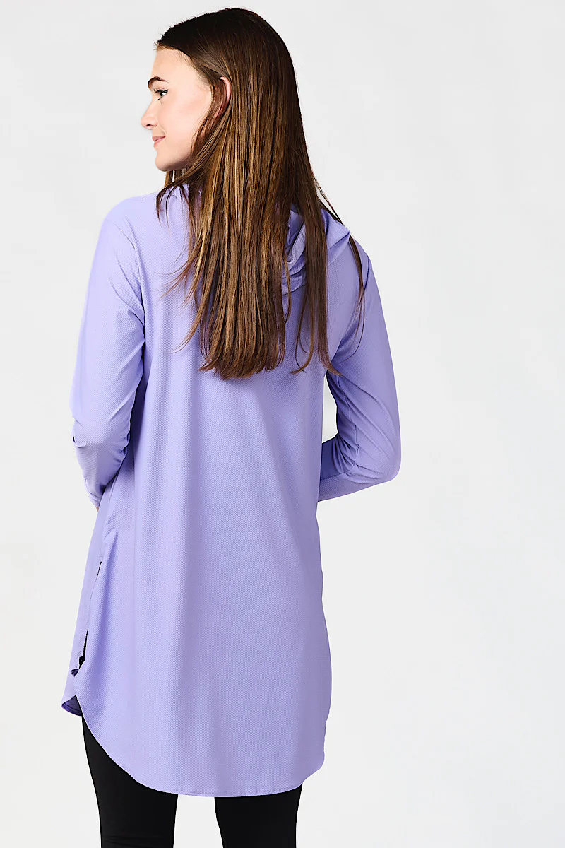 Your workout just got better. The no excuses modest tunic -- The Funnel Neck Active Top is back! Micro-perforated fabric, moisture wicking breathability, high neck, zipper sides and it's a hoodie What more can you ask for? This one is definitely a winner.