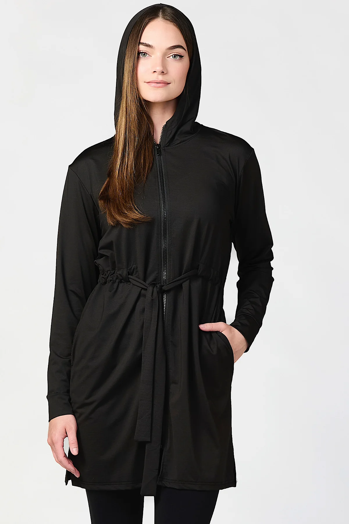 Summer is calling. Holla back with the only lightweight hoodie you'll ever need. Hoodie, pockets, and an adjustable belt..I think we're on to something.