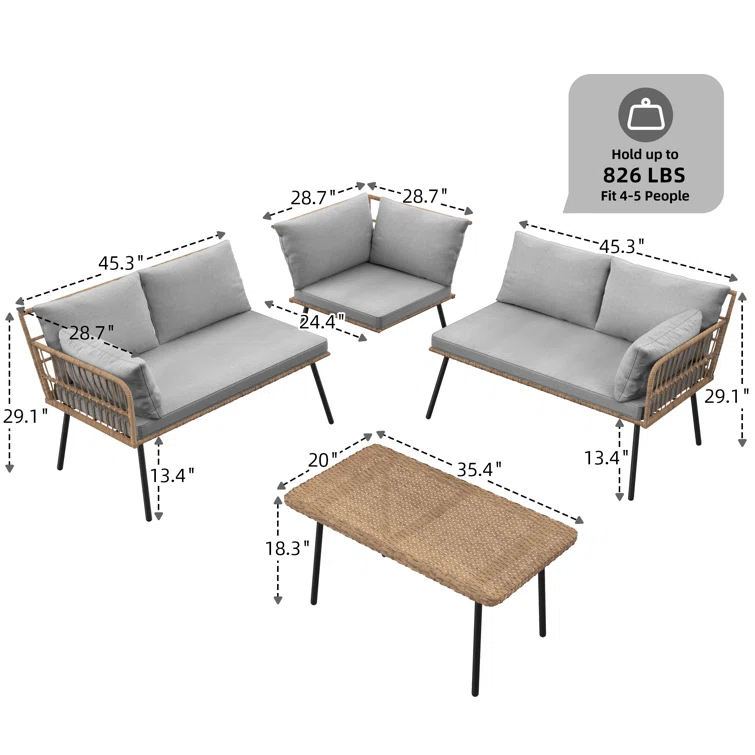- Family Friendly Sofa: Discover our sofa with a strong steel frame, PE rattan, and a weight capacity of 794lbs. Seats 4-5 comfortably, with anti-slip feet for added stability and security.