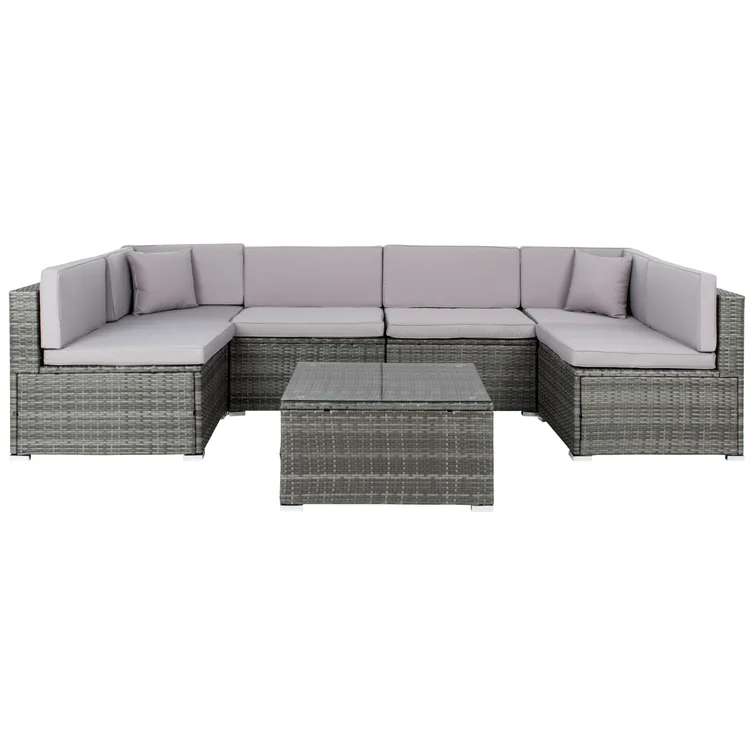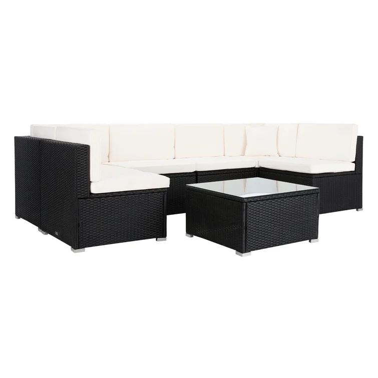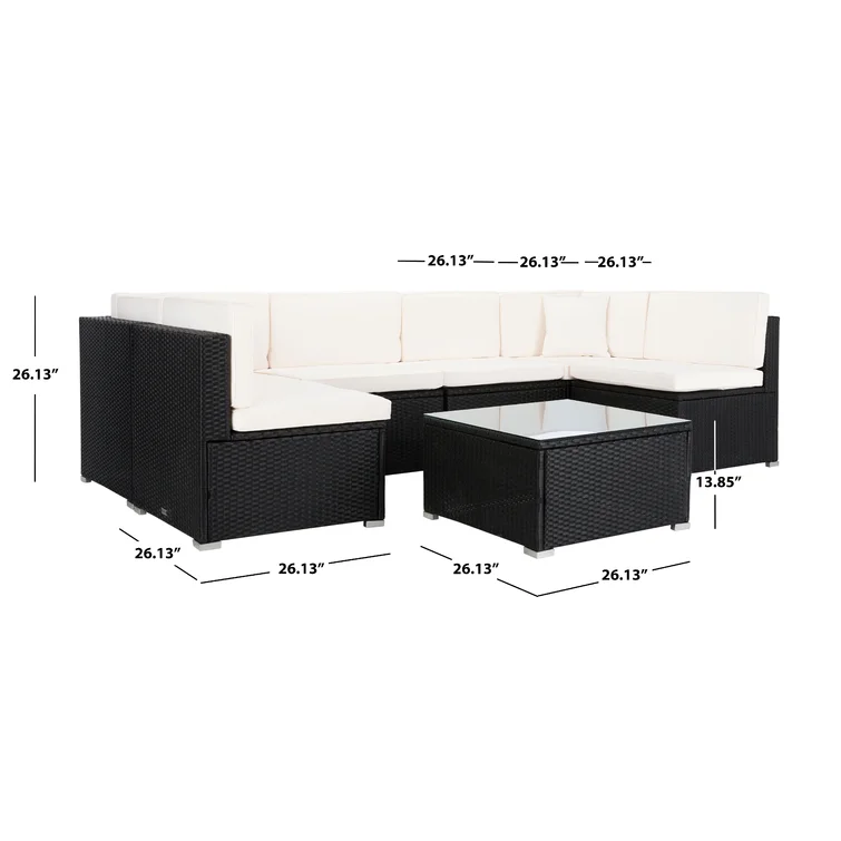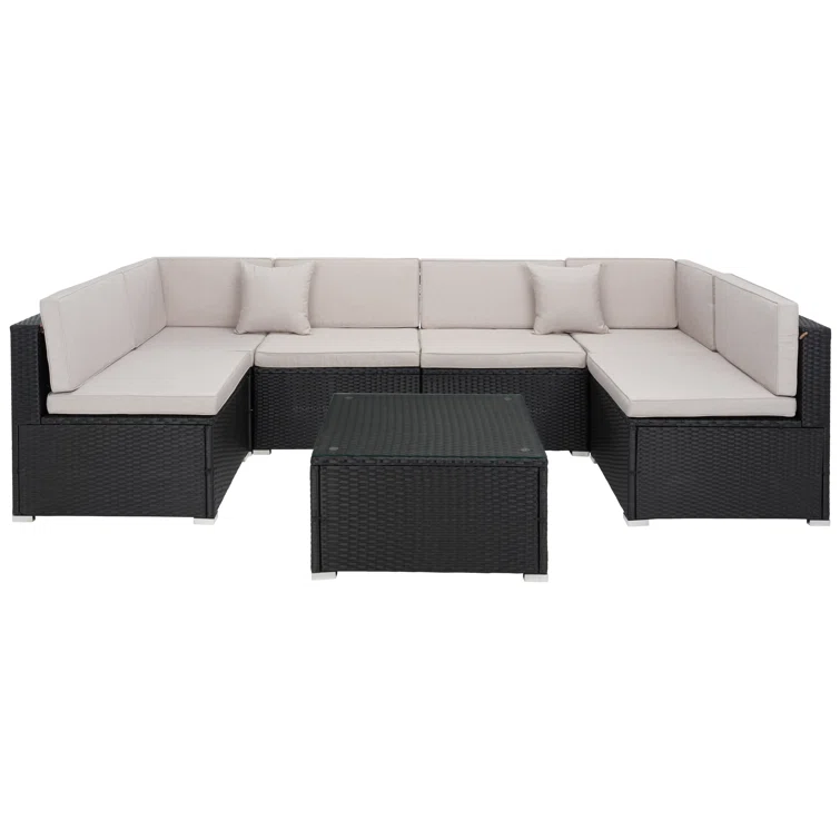The living room sectional moves outdoors with fabulous modern flair in this Azrien Living Set. Strong and chic, Azrien’s texture wicker frame support luxurious cushions, making for lavish outdoor lounging. Azrien includes a matching glass topped coffee table to complete the look.