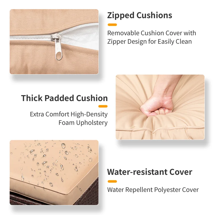 - All-weather PE wicker UV-resistant, durable steel frame.