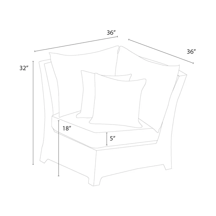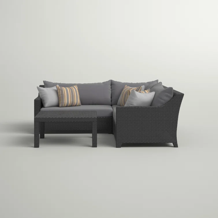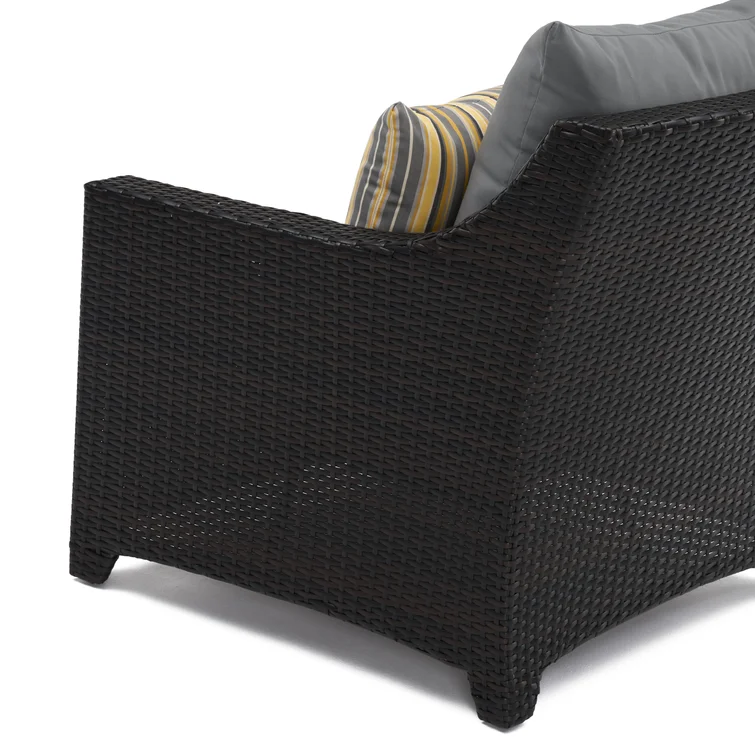 - Includes: One (1) Two-piece Oversized Sofa, One (1) Corner Chair, and One (1) Woven Accent Conversation Table with Six (6) Coordinated Accent Pillows