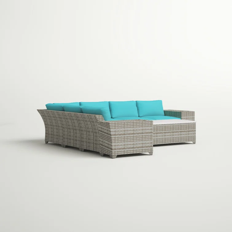 This 5-person sectional seating group has everything you need to create the ideal spot for gathering friends and family. It includes sectional (six modular sofa sectional pieces, two end tables with cup holders) and one rectangular coffee table. Each piece has a frame made from powder-coated aluminum with an outdoor resin wall-weather wicker, woven for a classic patio look. We love that it includes foam-filled cushions for an immediate, plush setup – the removable covers feature zippers for each cleaning. Plus, this sectional set is UV-resistant.