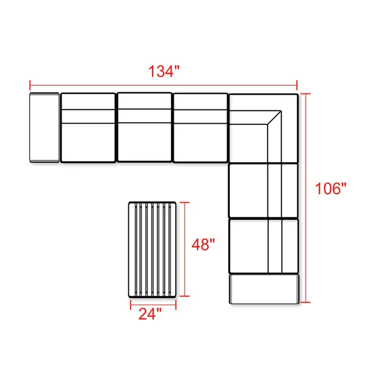 - Includes 1 corner sectional sofa piece, 5 armless sectional sofa pieces, 2 cup tables, and 1 storage coffee table (decorative pillows sold separately)