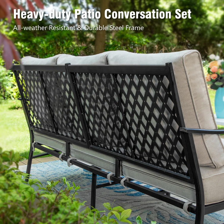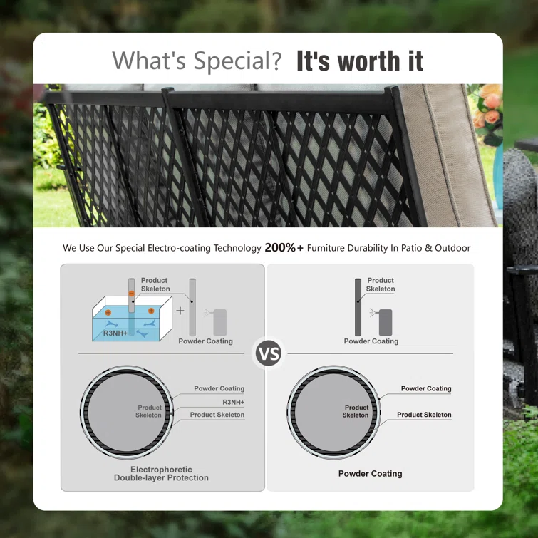 - Sturdy Steel Frame: Consists of a heavy-duty steel frame with high-performance e-coating & powder-coating, which ensures its weather resistance, this set is perfect for outdoor use.