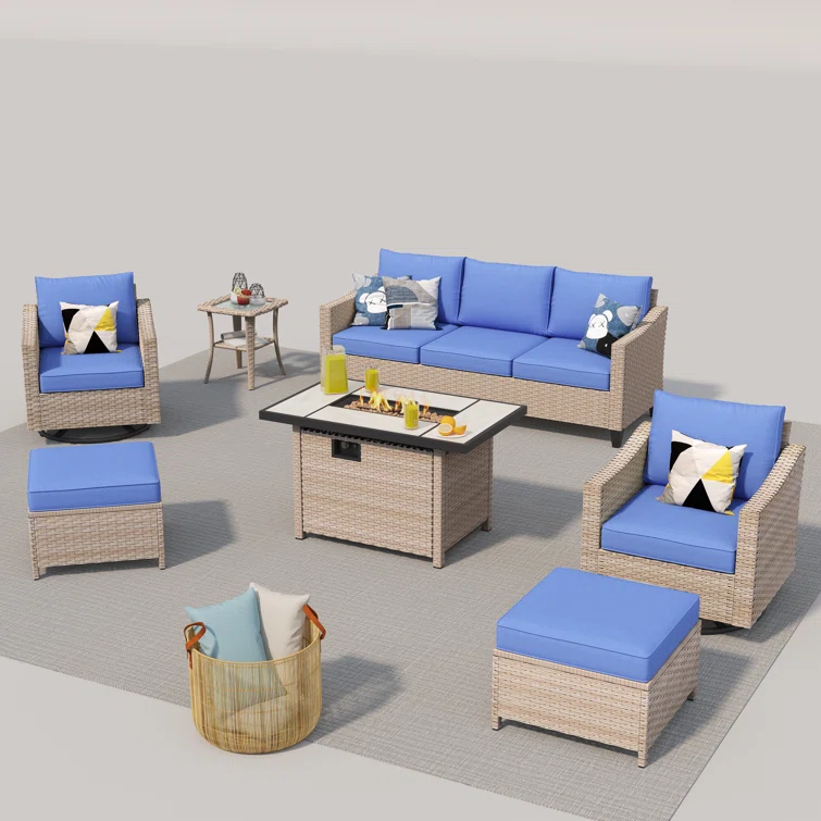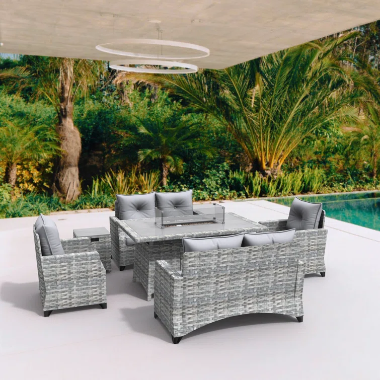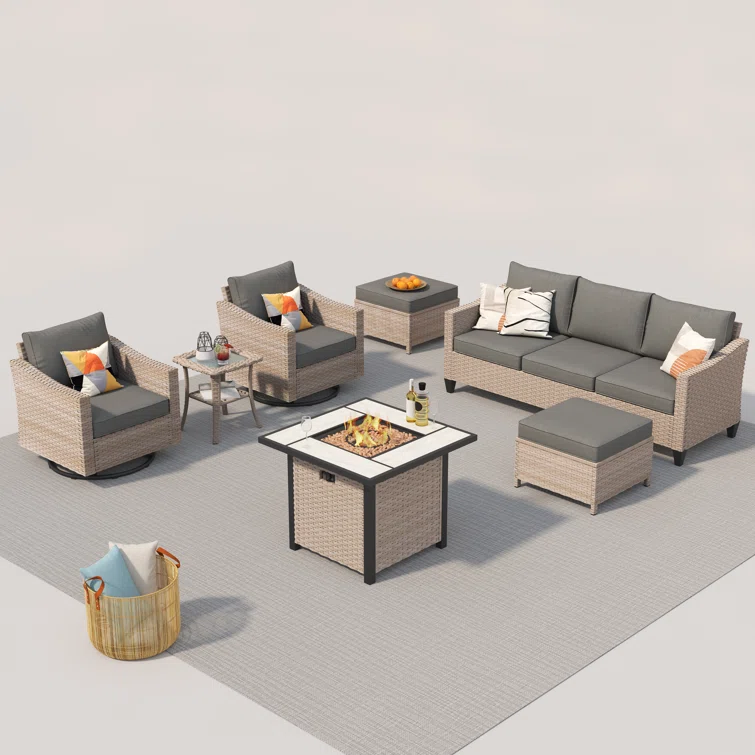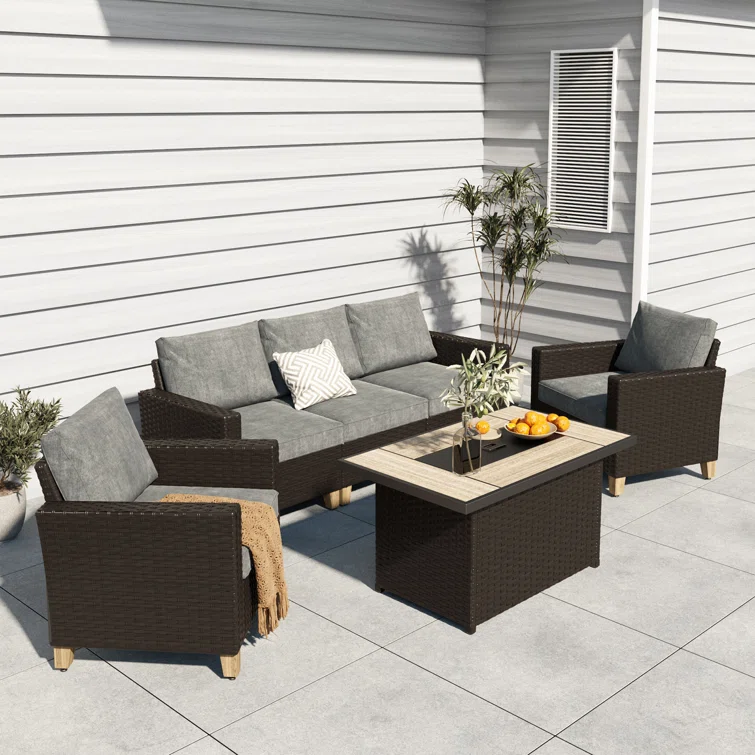 Quadrell 6 - Person Outdoor Wicker Patio Conversation Furniture Set with Optional Fire Pit Table