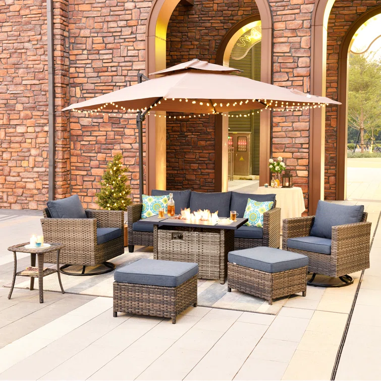Asfand 5-7- Person Patio Conversation Set with Optional Ottoman
