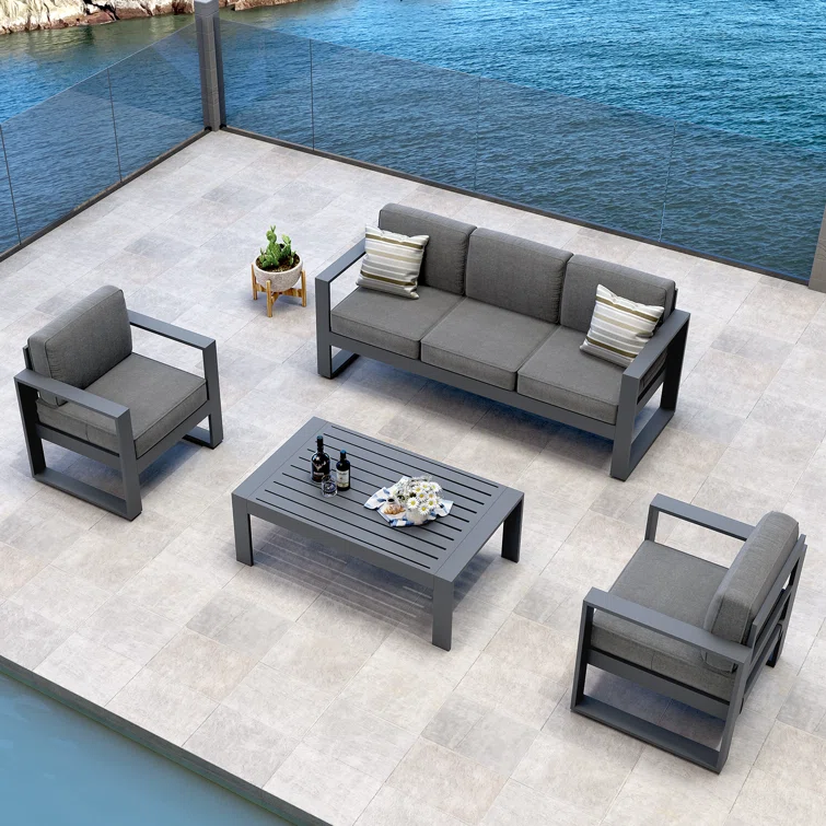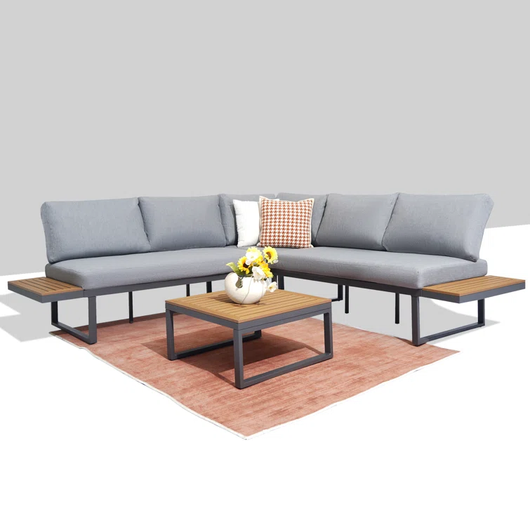 Ithnan 5 - Person Silver Gray Aluminum Outdoor Seating Group with Cushions