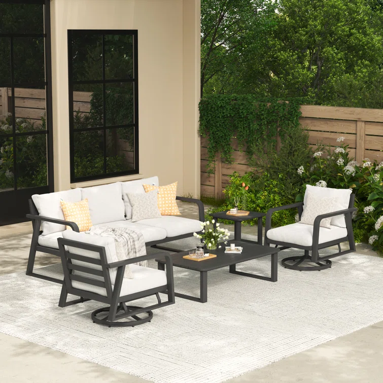 Patio Aluminum Swivel Conversation Seating Group With Olefin Cushions For 5 Person