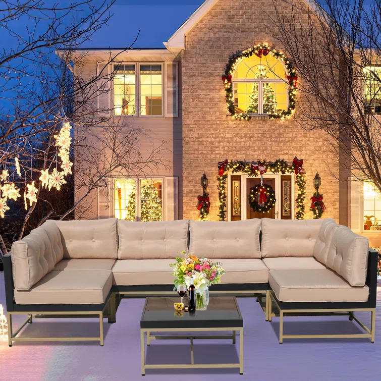 Patio 7-Piece Furniture Set,Outdoor Wicker Sectional Sofa w/Golden Legs (Set of 7)