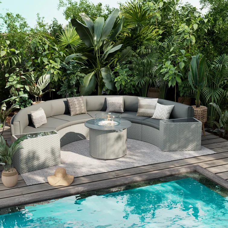 Meredithe Half-Moon 6 - Person Fully Assembled Curved Patio Conversation Set With Fire Pit Table & Side Table