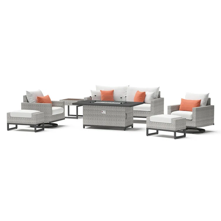 6-Pieces Wicker Conversation Set With Fire Pit Table