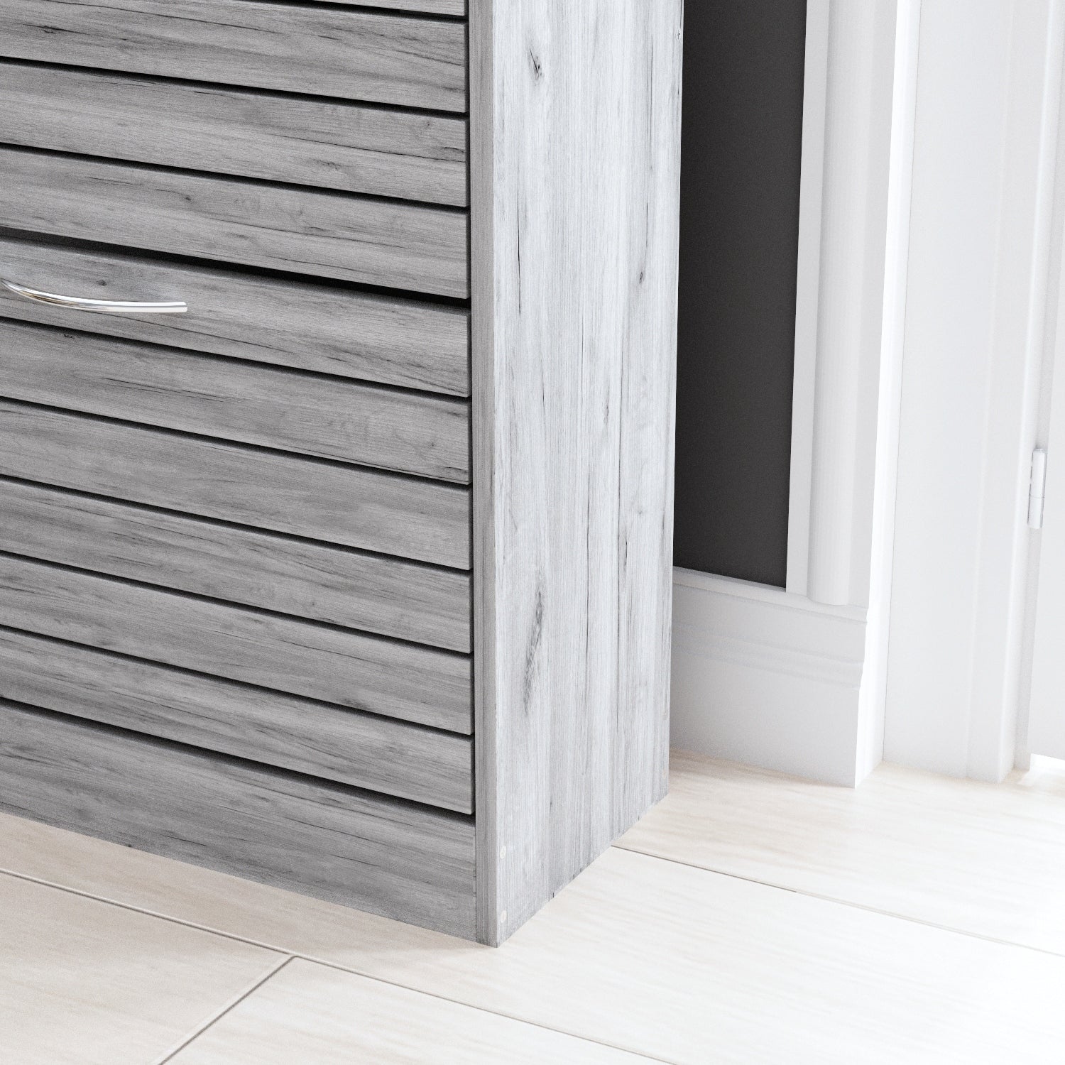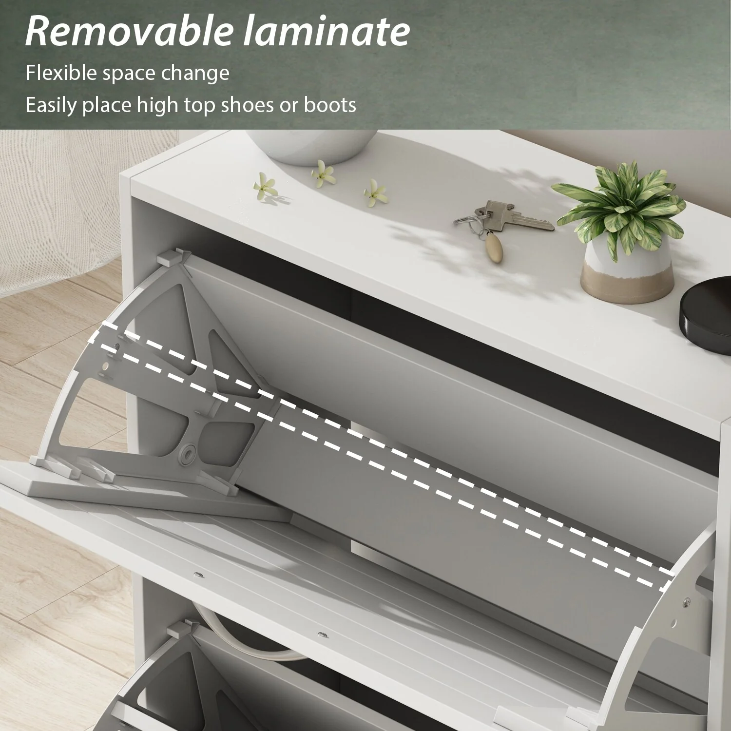 - Enclosed cabinets and flip doors for easy access and shoe hiding