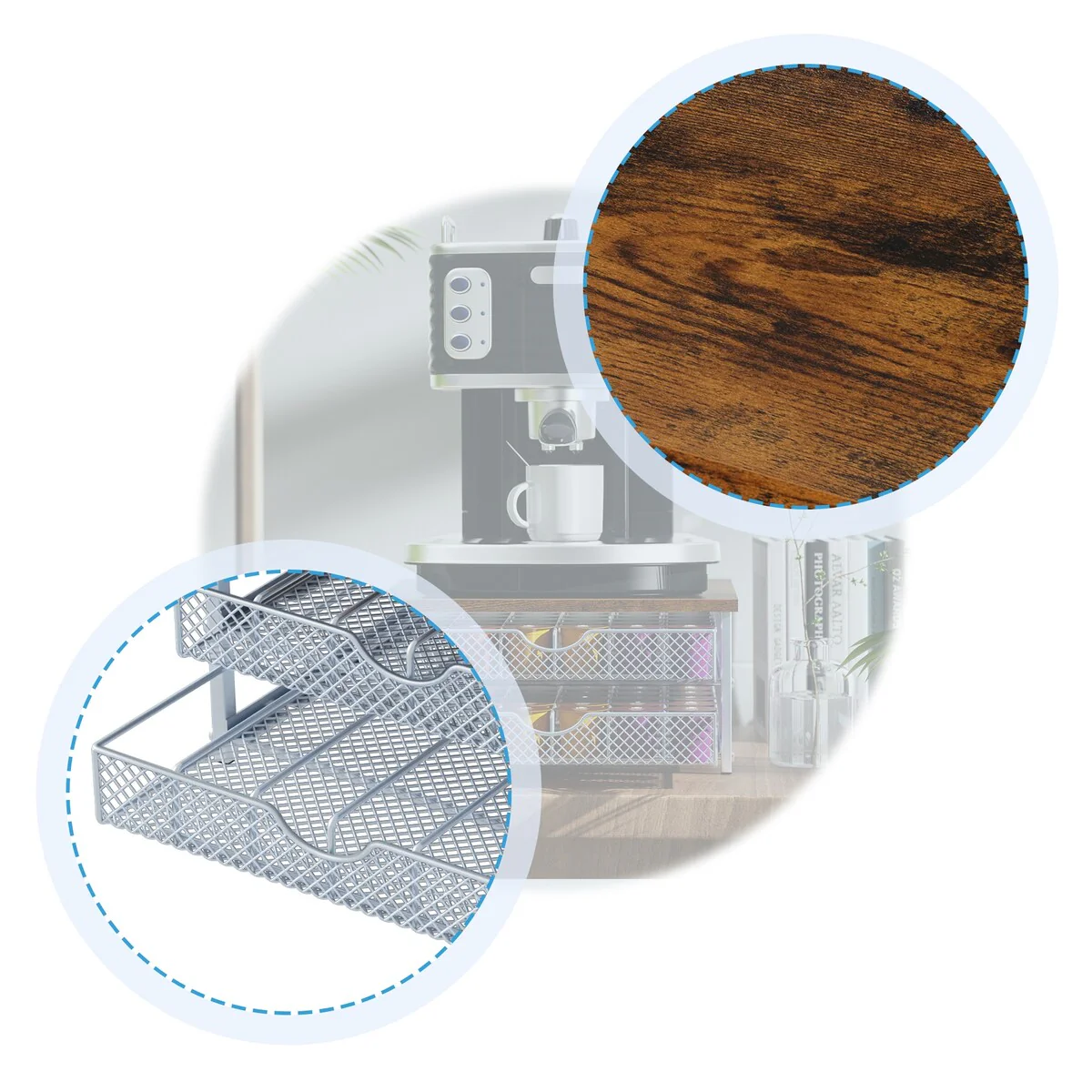 - �Rustic and Sturdy Design: The coffee pod holder features a wooden top that provides firm support for your coffee maker or brewer, preventing deformation over time. Its stylish rustic style blends seamlessly into your office or kitchen decor, adding a touch of charm to your space.