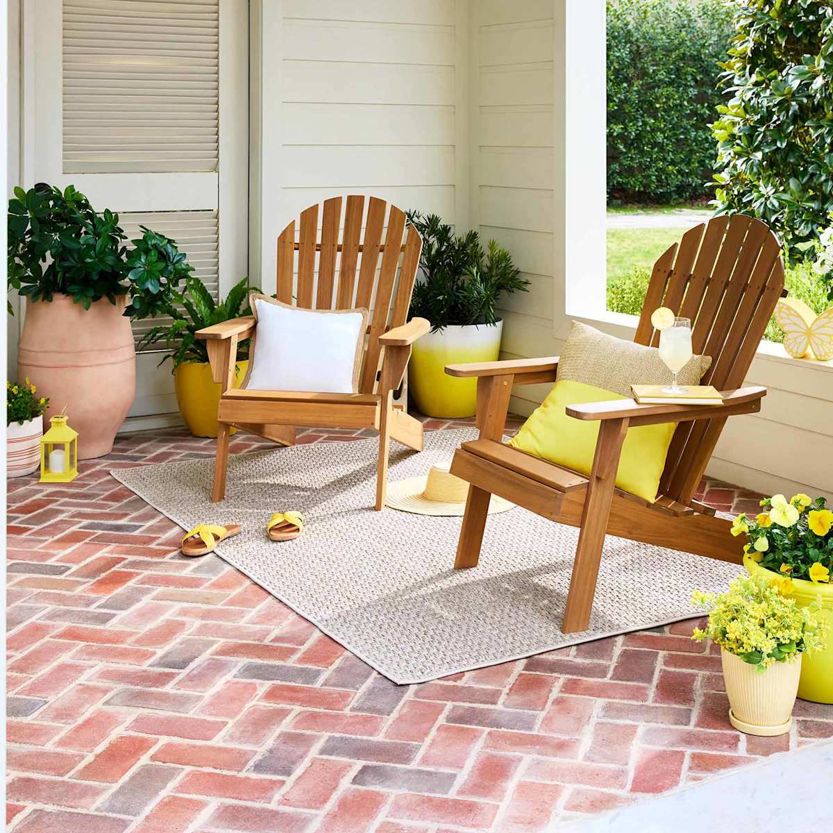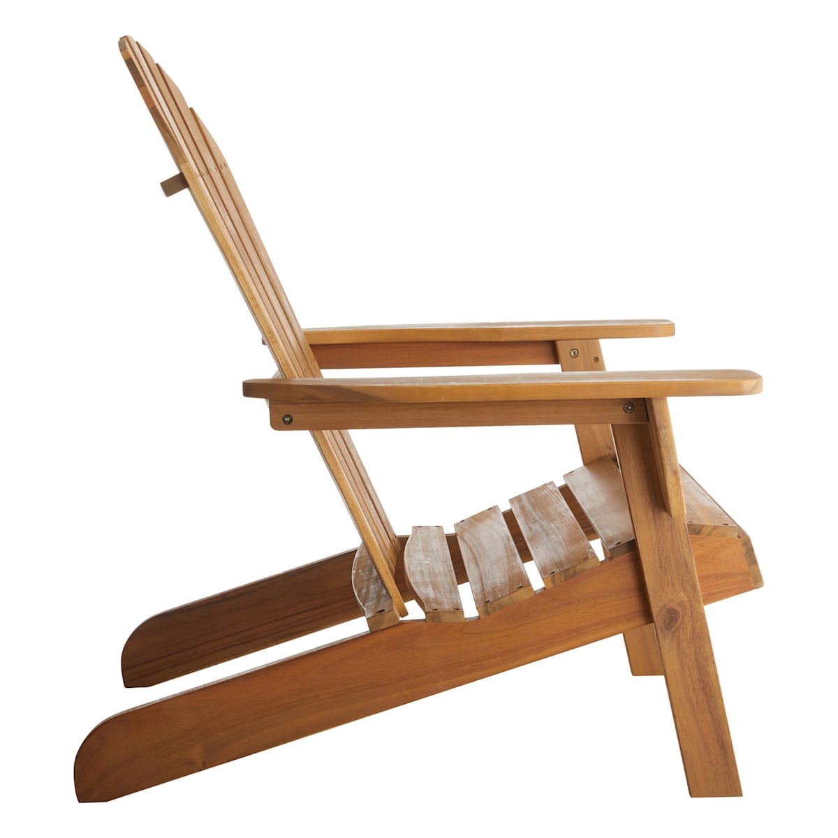 Modern farmhouse meets At Home prices in Honeybloom, our exclusive new brand that celebrates life lived together. Create instant lakeside charm with a traditional bent and add a relaxed old world vibe to your outdoor space with our natural wood Honeybloom Adirondack chair. Designed with the classic vertical slat back and slatted seat, this Adirondack is ideal for fashion forward decks or a relaxed patio. Beautiful solid wood construction ensures last beauty and durability. You'll be soaking up the sun or catching up with friends in style with this outdoor chair.