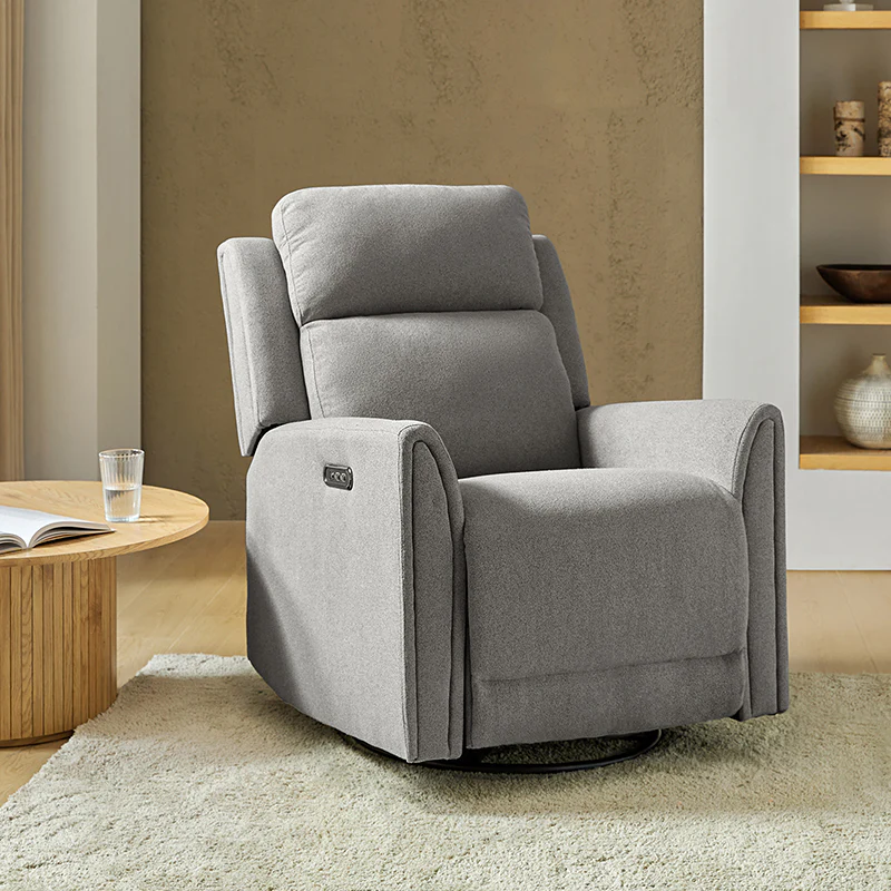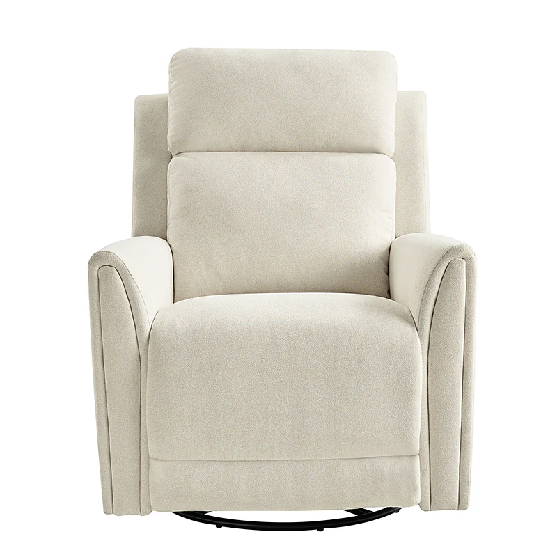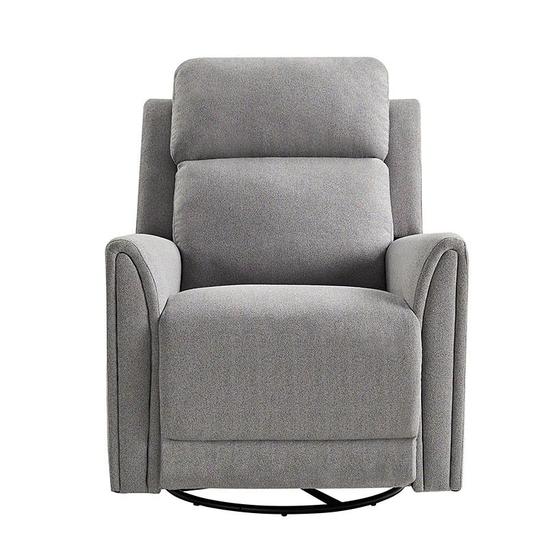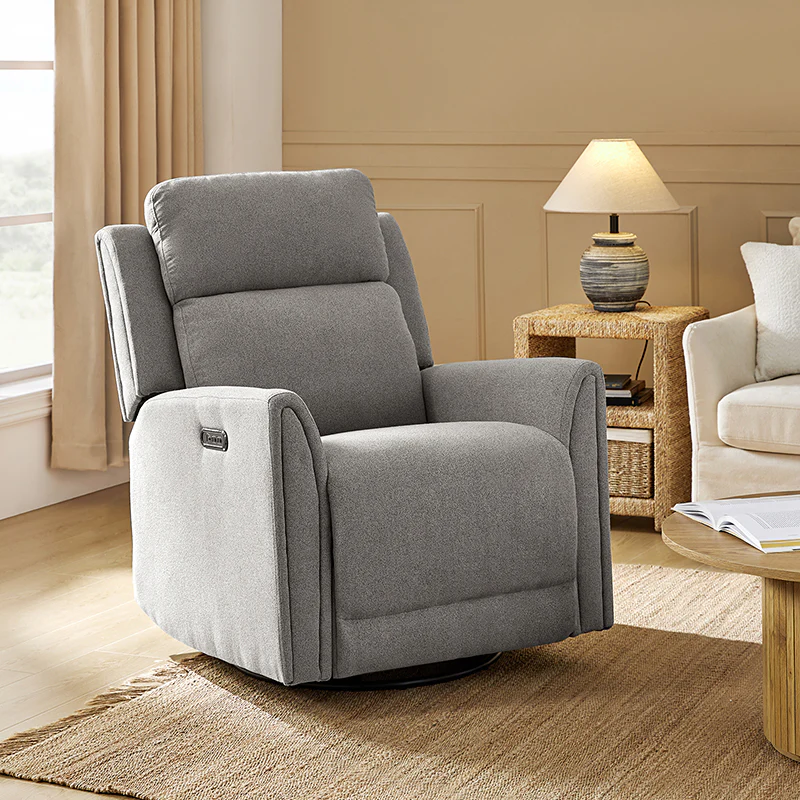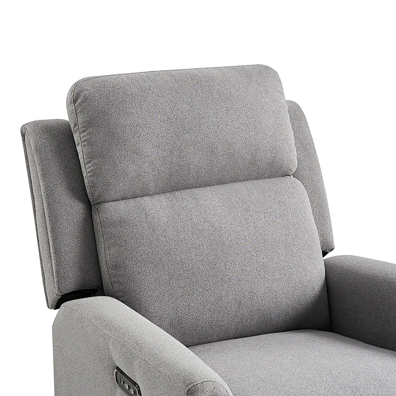 Suitable for your living room, bedroom, or study, the modern swivel and rocking power recliner offers comfort for your leisure time. With its 360-degree swivel and rocking design, you can easily adjust your position to find the angle for reading, watching TV, or simply unwinding after a long day. The convenient one-touch reset mechanism allows you to effortlessly adjust your position, while the adjustable headrest provides personalized comfort and support. Stay connected and powered up with the built-in USB and type-c ports, ensuring your devices are always within reach. Crafted with a soft-touch fabric in elegant shades of white or grey, the contemporary swivel recliner seamlessly blends style with functionality. Whether unwinding after a long day or catching up on your favorite book, this transitional style power recliner provides a spot to relax and recharge.