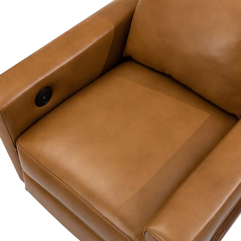 Introducing the power genuine leather recliner, a harmonious blend of sophistication and comfort. Crafted with a solid wood frame, this recliner boasts sleek, modern lines that elevate any living space. Luxuriate in genuine leather upholstery while effortlessly reclining at the touch of a button, thanks to the power recline feature. The retractable footrest cradles your legs in relaxation, while a built-in USB charge station keeps your devices powered and within reach. Elevate your lounging experience with this elegant and functional recliner, where contemporary design meets cutting-edge convenience for the ultimate in relaxation and style.