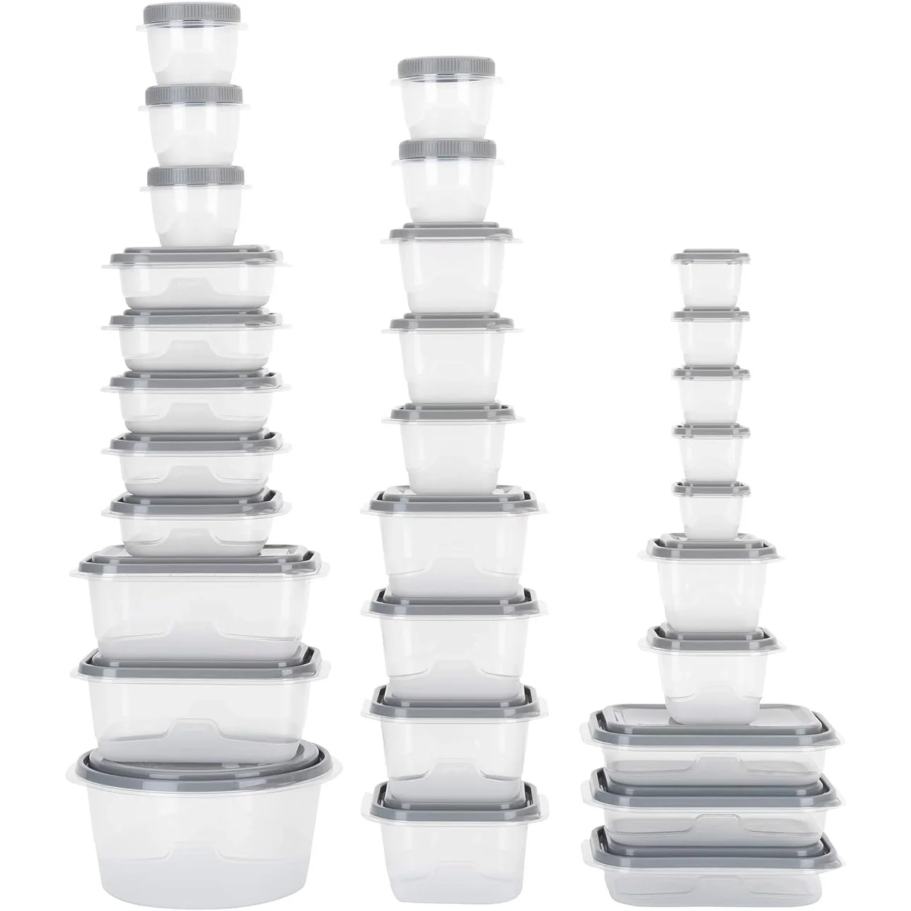 - 34 - PIECE FOOD STORAGE CONTAINER SET: Includes 17 containers in a variety of shapes and sizes along with 17 coordinating lids