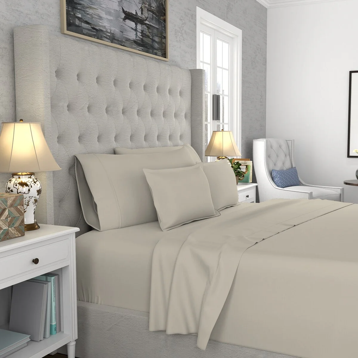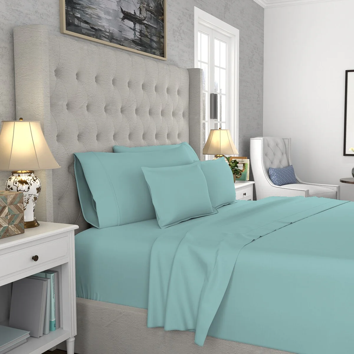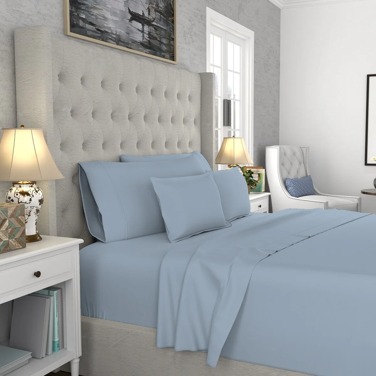 Luxurious sleep is just a sheet set away! The Color Sense 1200TC luxury cotton-blend super-soft sheet set is bound to give you the comfort that you always longed for. Made using 55% cotton and 45% Polyester, this extravagant sheet set is outstandingly soft, giving you much-needed comfort every time you bump in. Also, complementing the colors, the sateen weave creates a subtle sheen to elevate the look and feel of any modern decor. This premium-quality sheet set comes in Full, Queen, and King size to best suit your need.