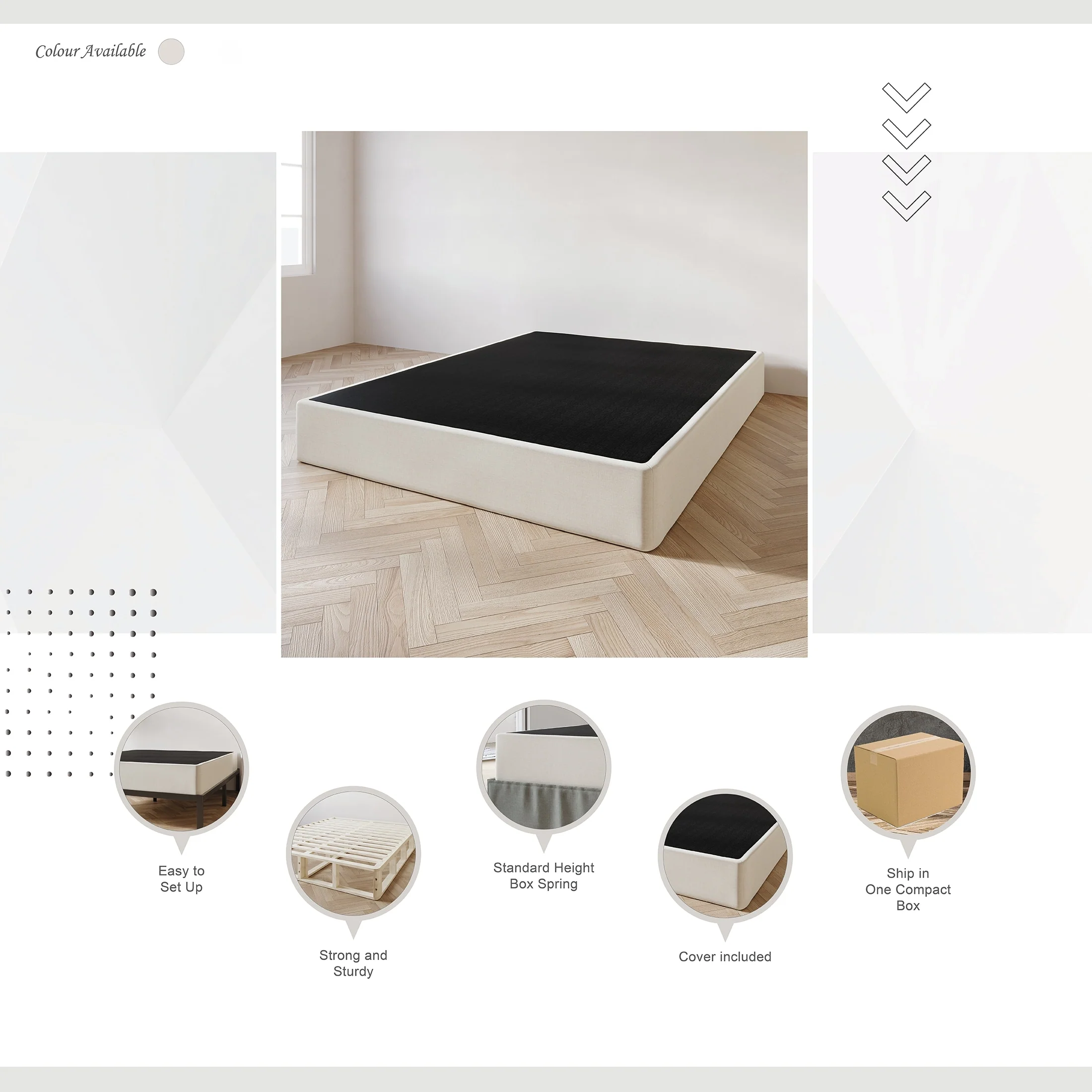 Looking for a sturdy and firm box spring that provides excellent mattress support? This 8-inch height box spring is perfect for any mattress, including heavier ones like memory foam and latex. The box spring is made with a solid wood structure to ensure durability and long-lasting use. It also comes with 10 wooden slats covered in durable linen fabric to keep your mattress in great condition. This box spring is available in warm grey linen fabric cover, gives the box spring an upholstered look that complements your bed frame and mattress. Available in Twin, Full, Queen and King sizes, this quality box spring ensures comfort and safety with the highest standards in durability and aesthetics. The box spring ships in one compact box and all hardware needed for assembly is included.
