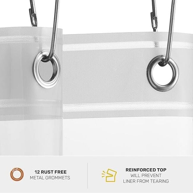 - DURABLE: Our Durably Constructed 72�� X 72 Inch Curtain Liner Delivers, Carefully Crafted with Three Strong Magnetic Weights Along the Curtain��s Bottom Keep the Barrier from Sliding Around as You Wash and Move About in The Shower, And Rustproof Metal Grommets.