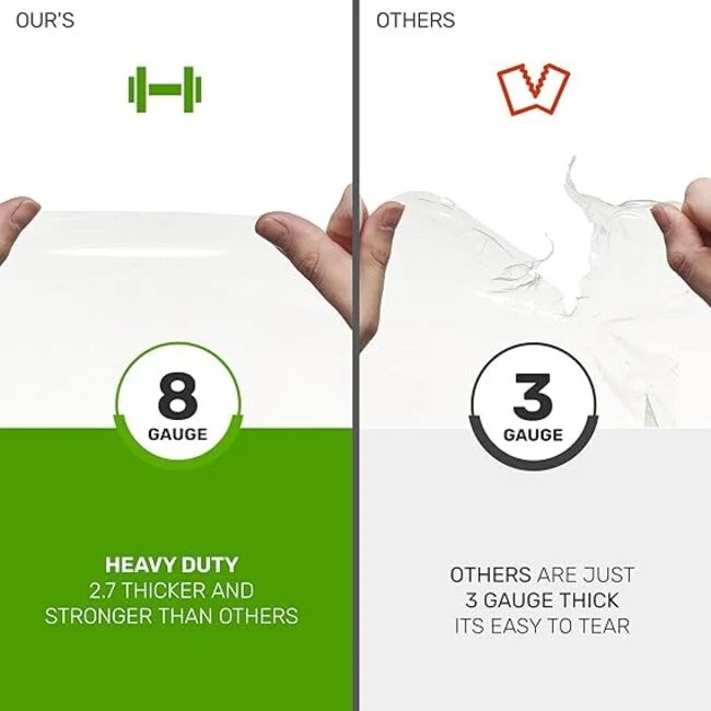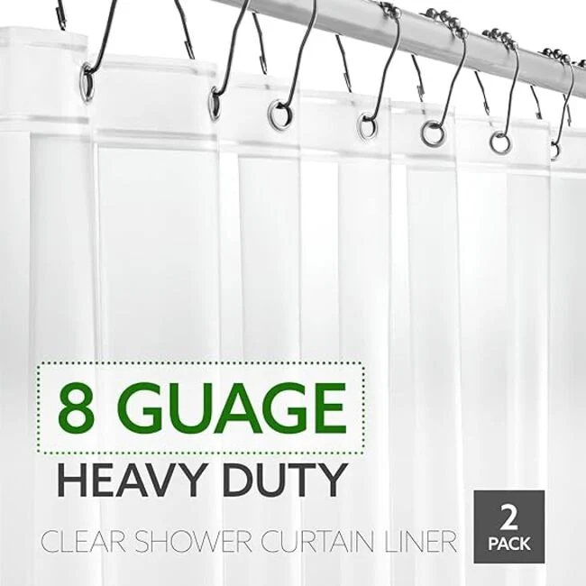 - THICKER MATERIAL: This Shower Liner Is Made Of 8-Gauge Plastic Material That Is Thicker and More Durable Than Other Conventional Shower Curtain Liners on The Market. Fully Transparent Design, See-Through and Does Not Block Light.