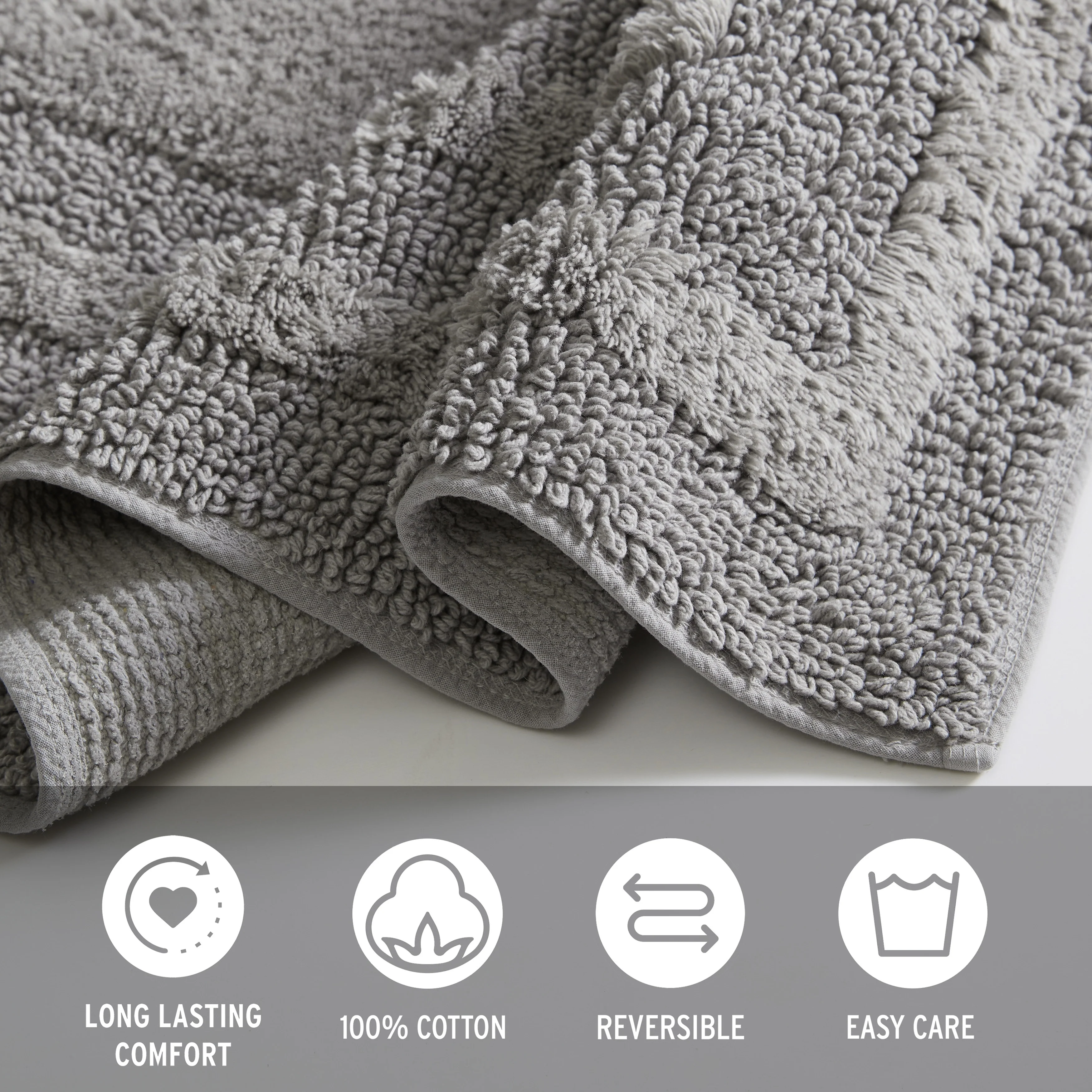 - Super absorbent plush tufted cotton dries quick and feels great against your feet