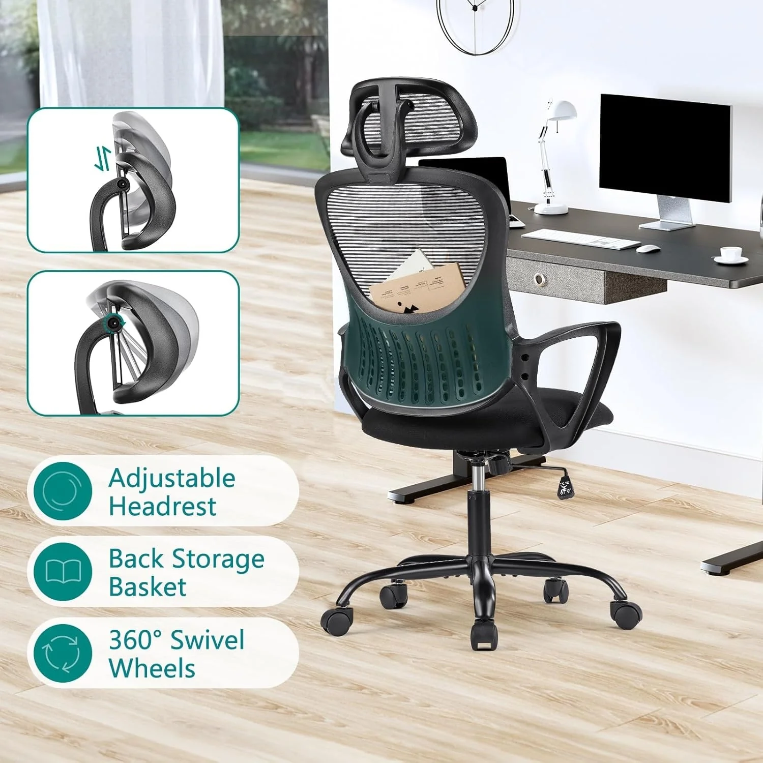 - Space-Saving Design: Ideal for any office setting, our hight back office chair features a simple style that adapts seamlessly to various office furniture. The chair is not limited to the office; it's perfect for living rooms, bedrooms, kitchens, and studies.