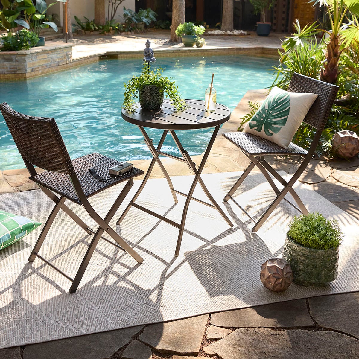 Explore what's right around the corner. Choose your own adventure every day. Savor it all and say yes to what comes next. Found & Fable is a new collection only found at At Home. Our Found & Fable brown synthetic wicker folding chair is a perfect choice for your patio and backyard setting. Made of metal and faux wicker, this convenient brown folding chair is sturdy and ready to take on any challenge. Made of water and weather resistant synthetic wicker and metal for extra durability, it's easy to clean and maintain. Featuring a convenient foldable design, it's a wonderful space saver when not in use. It is a perfect way to just relax in your back garden, offer extra seating when entertaining or enjoying a camping trip with the family.