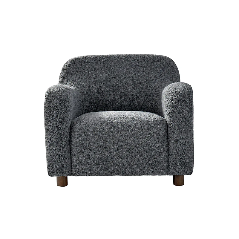 Presenting a contemporary upholstered armchair seamlessly adaptable to both living room and bedroom. Embodying the appeal of creamy style, this accent chair features quality lamb wool cloth upholstery, creating an inviting and cozy atmosphere. The solid wood legs add a touch of natural elegance and ensure sturdiness and stability. Designed for convenience, the armchair boasts a three-minute assembly, requiring only the attachment of the rubber wood legs. This time-saving design enhances the overall user experience, making it a choice for various spaces. Elevate your space with this modern armchair, where style meets functionality for moments of relaxation.