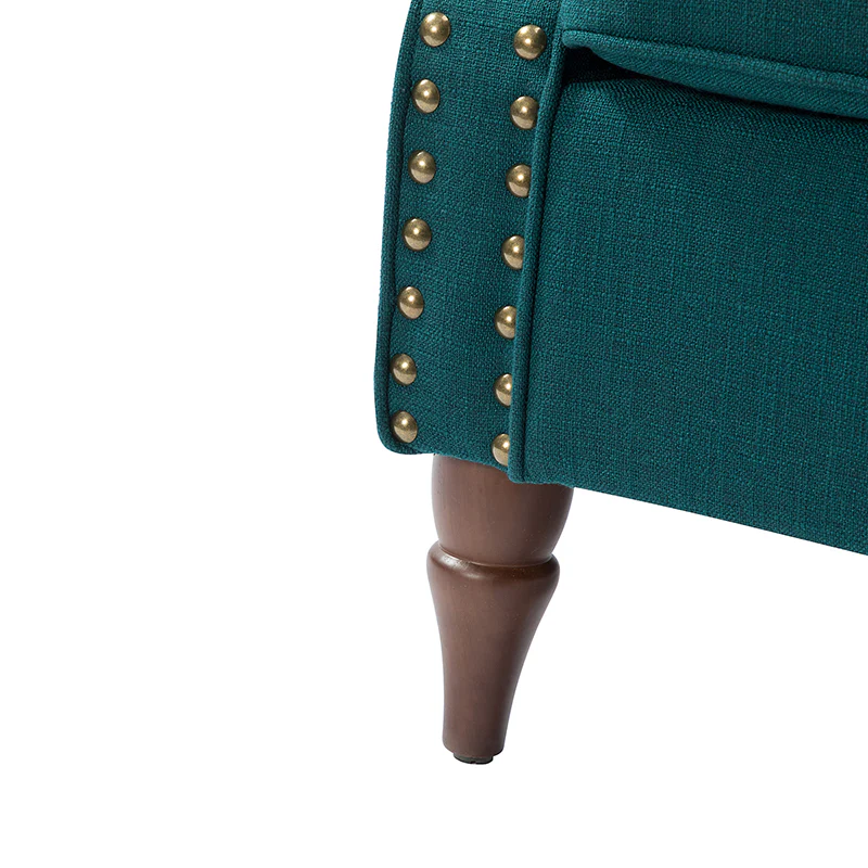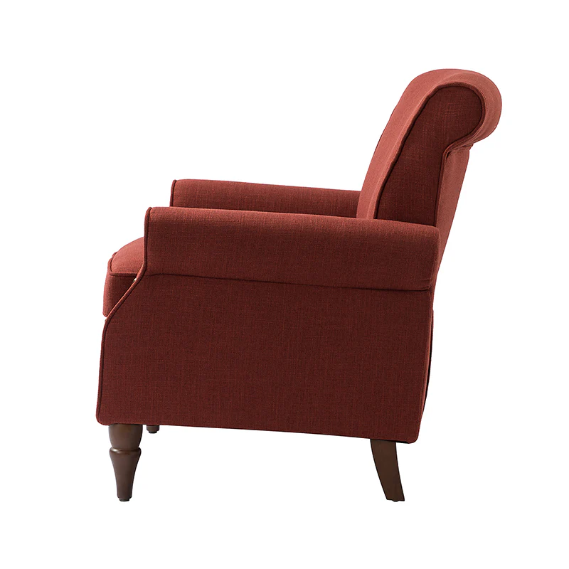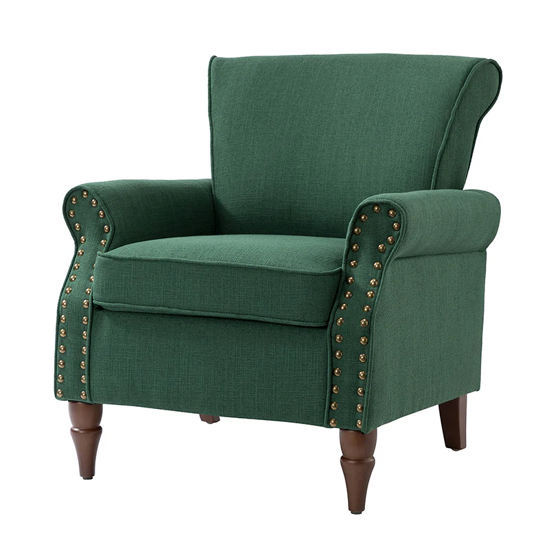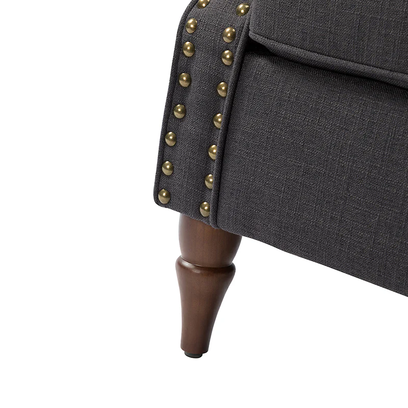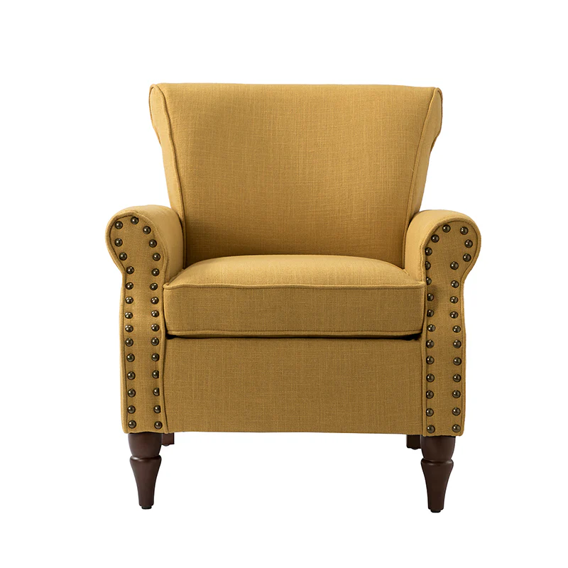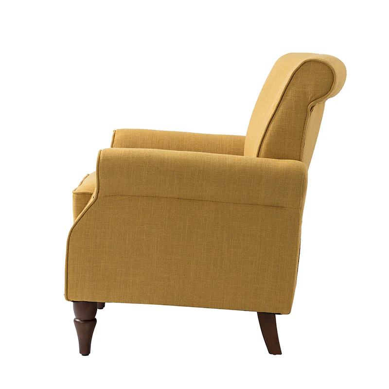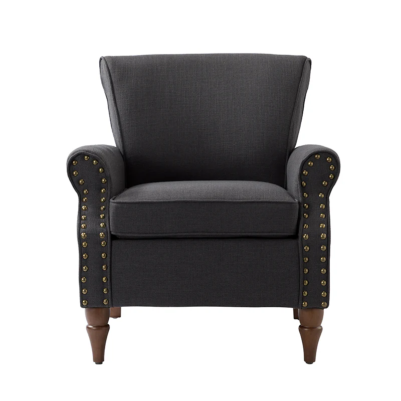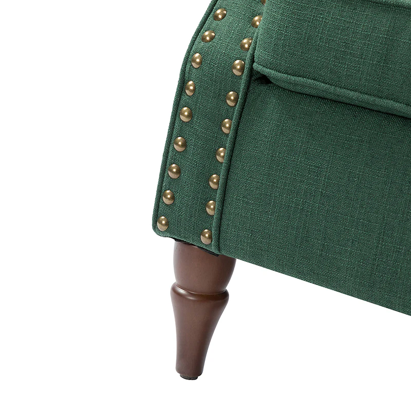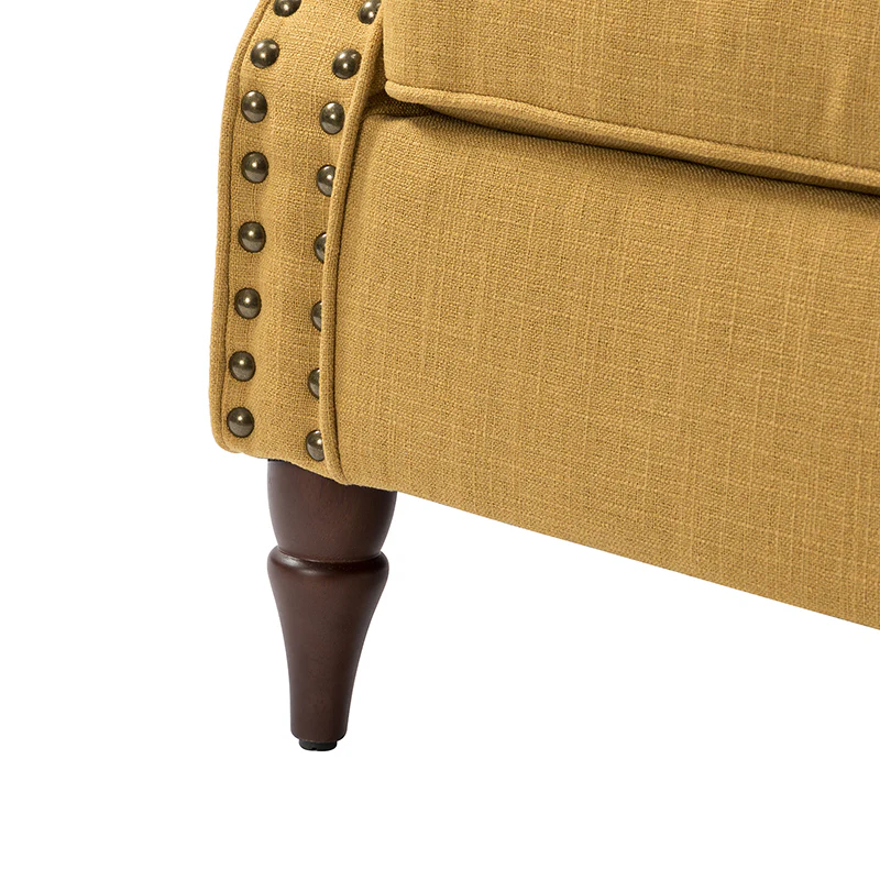 Spring meets your demands, bringing you endless reverie. Beautifully carved solid wood legs support the manufactured wood frame, and the seat cushion filled with a blend of silk wadding and foam is wrapped in soft polyester fabric. Awash in an attractive finish, it lends a touch of classic appeal to your arrangement. Fit well in the living room, bedroom, office, and other scenes thanks to the traditional yet classic outlook, all you need to do is add this wonderful piece to your cart and bring it home!