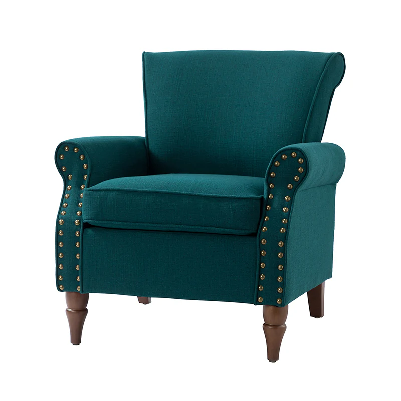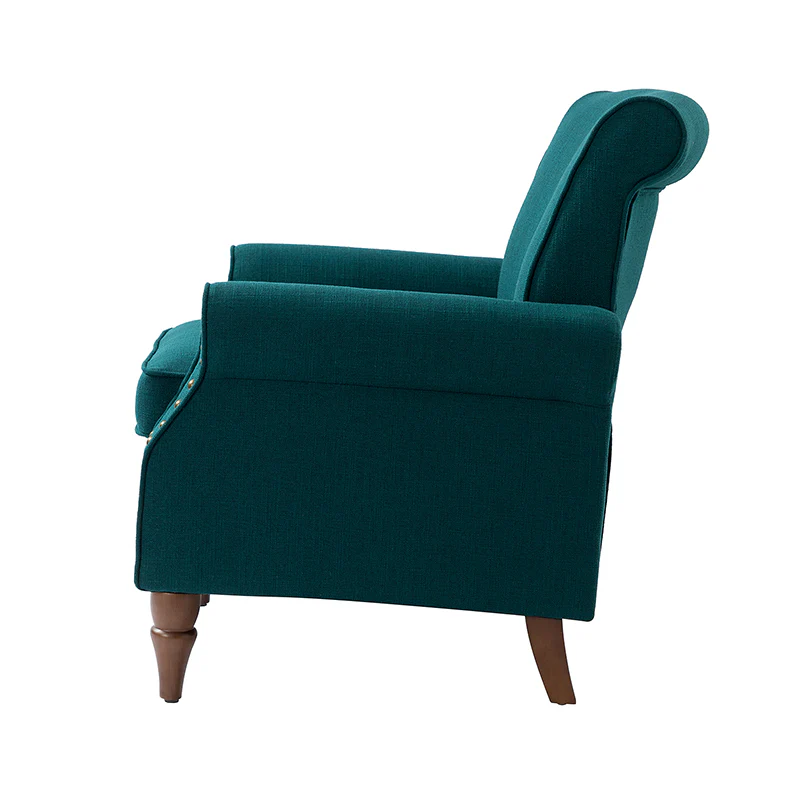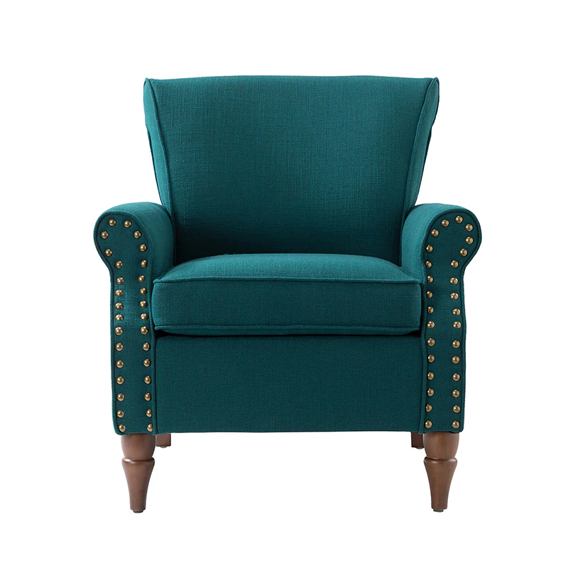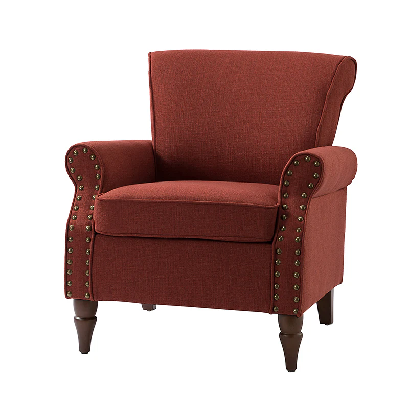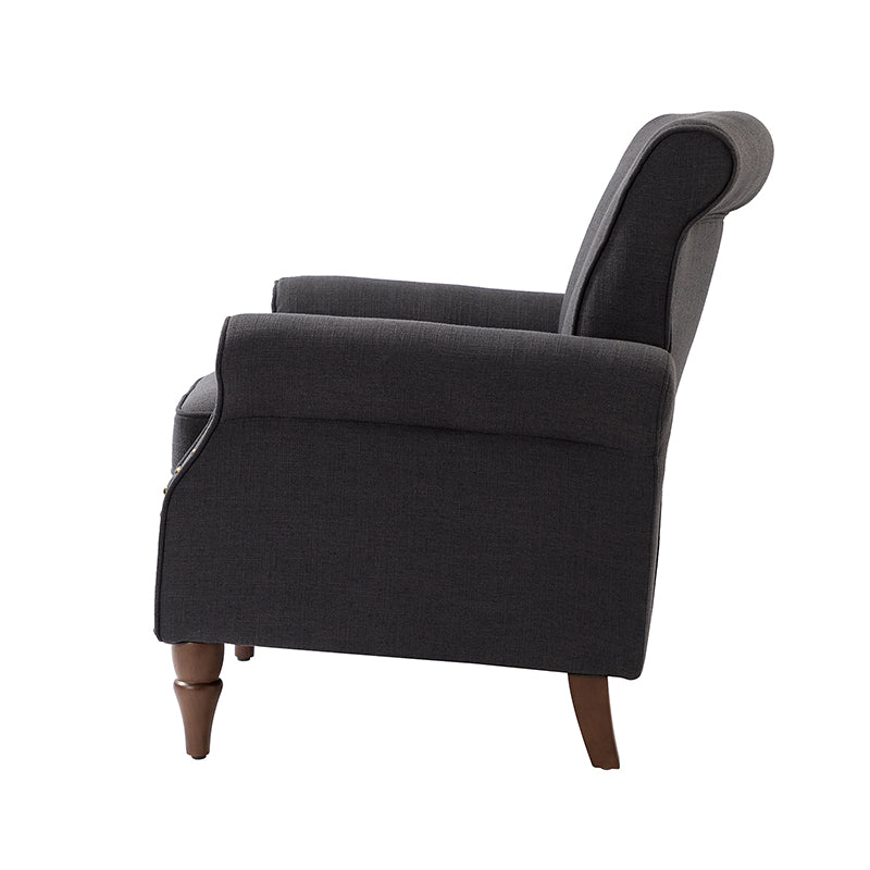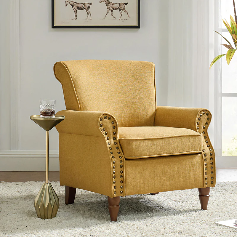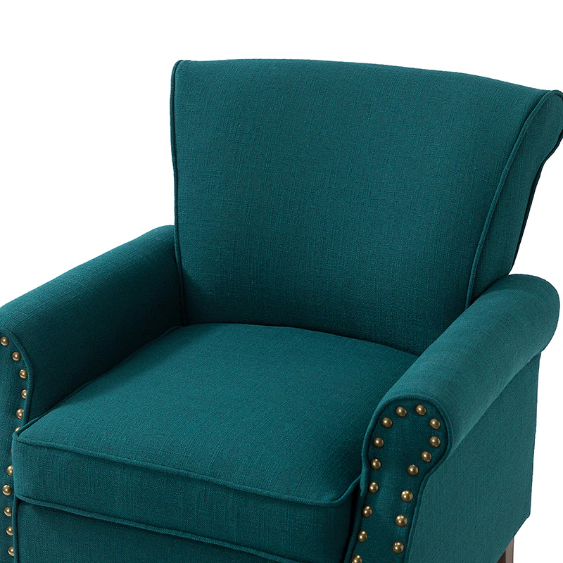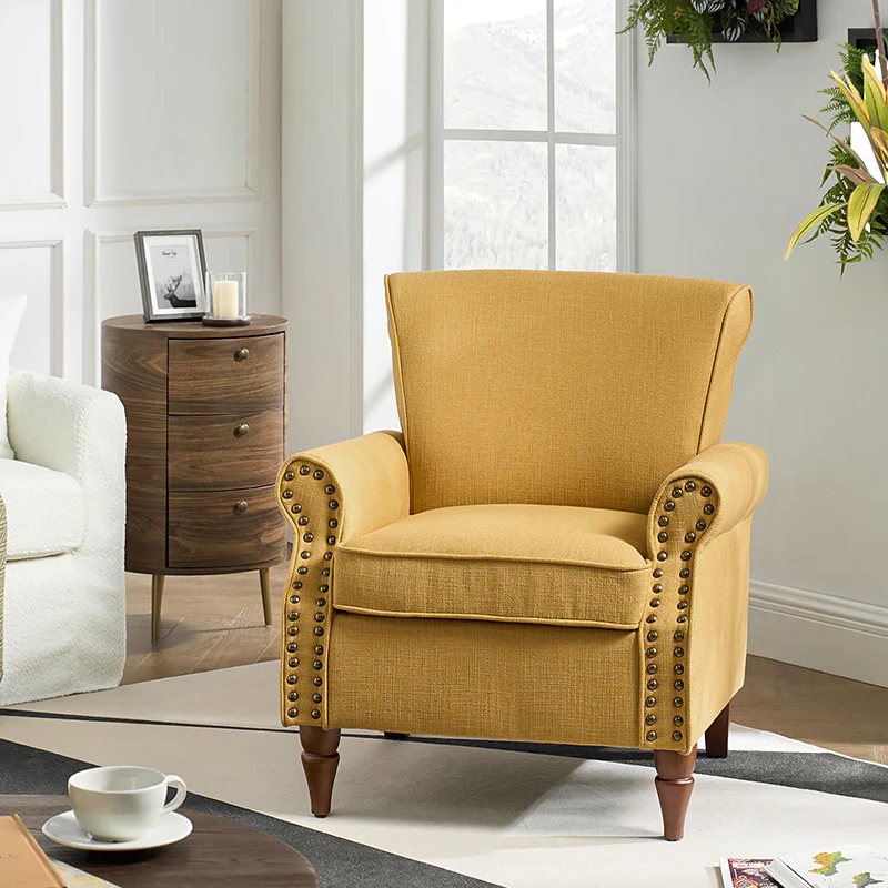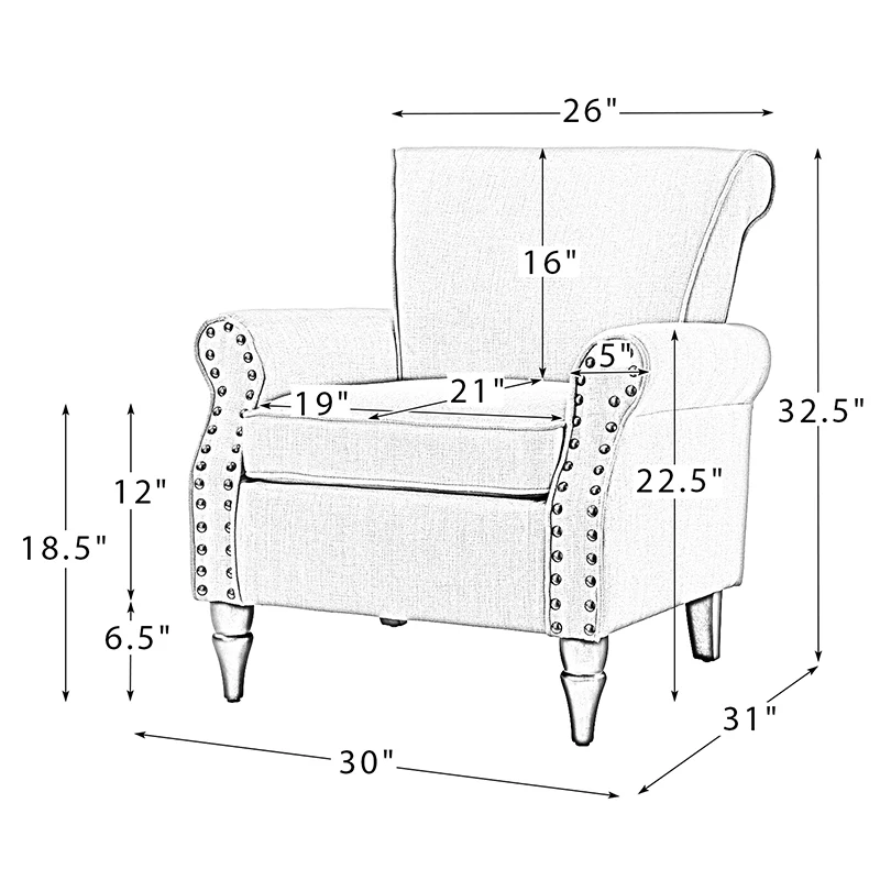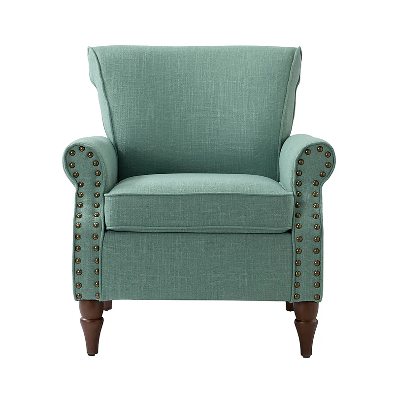 Spring meets your demands, bringing you endless reverie. Beautifully carved solid wood legs support the manufactured wood frame, and the seat cushion filled with a blend of silk wadding and foam is wrapped in soft polyester fabric. Awash in an attractive finish, it lends a touch of classic appeal to your arrangement. Fit well in the living room, bedroom, office, and other scenes thanks to the traditional yet classic outlook, all you need to do is add this wonderful piece to your cart and bring it home!