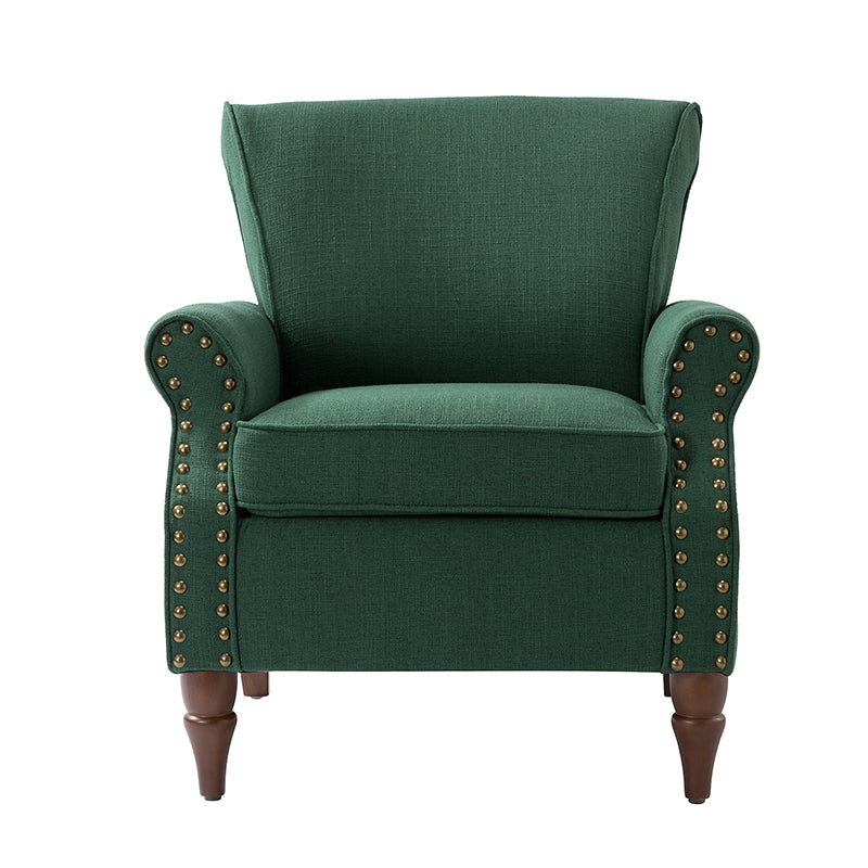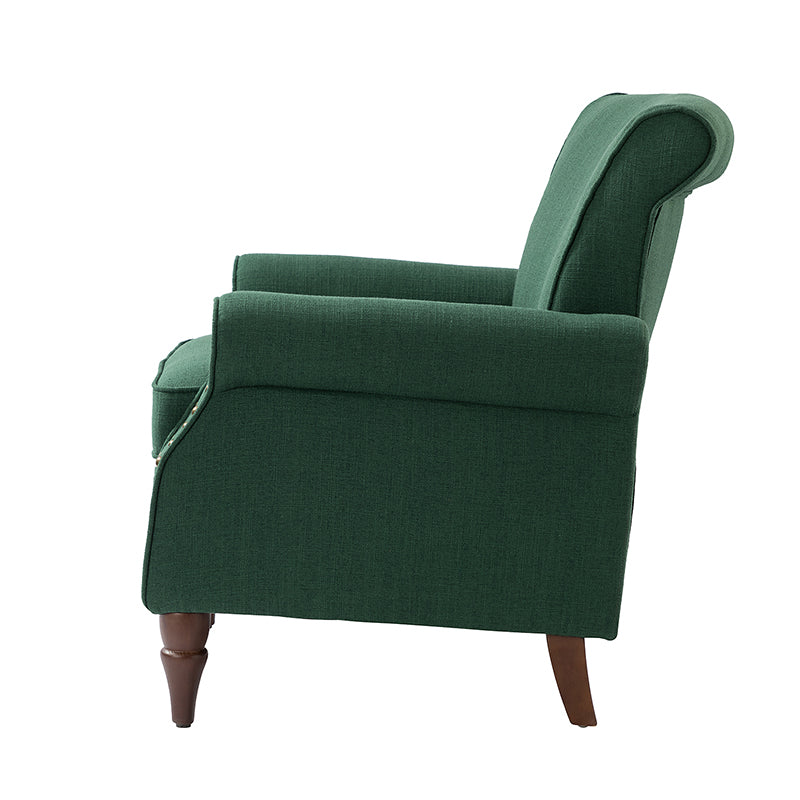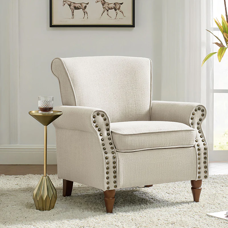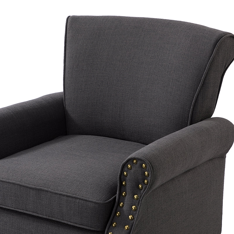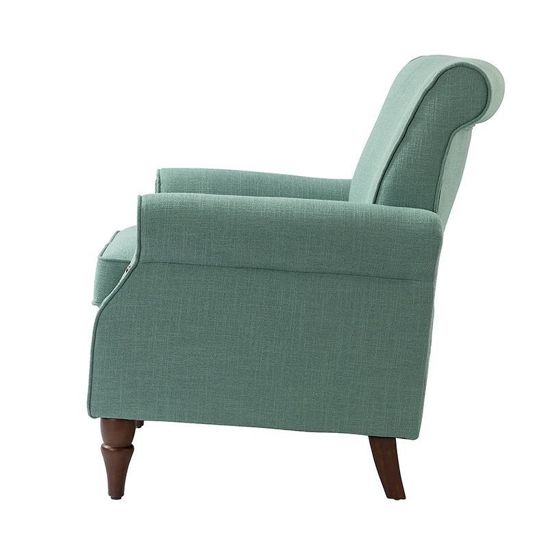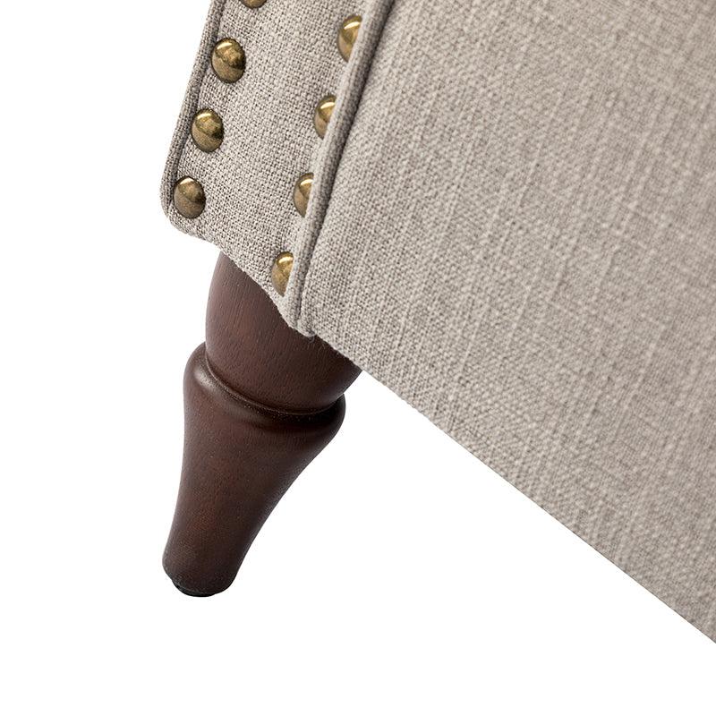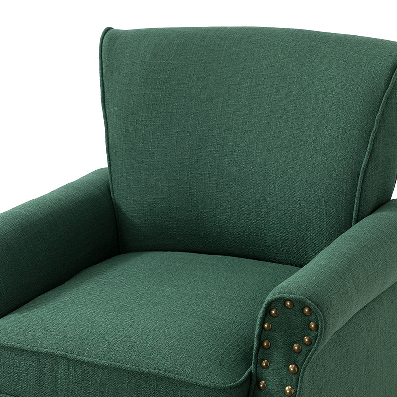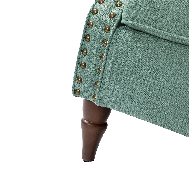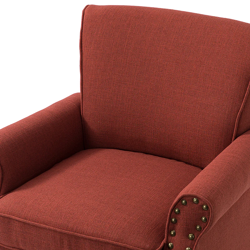 Spring meets your demands, bringing you endless reverie. Beautifully carved solid wood legs support the manufactured wood frame, and the seat cushion filled with a blend of silk wadding and foam is wrapped in soft polyester fabric. Awash in an attractive finish, it lends a touch of classic appeal to your arrangement. Fit well in the living room, bedroom, office, and other scenes thanks to the traditional yet classic outlook, all you need to do is add this wonderful piece to your cart and bring it home!