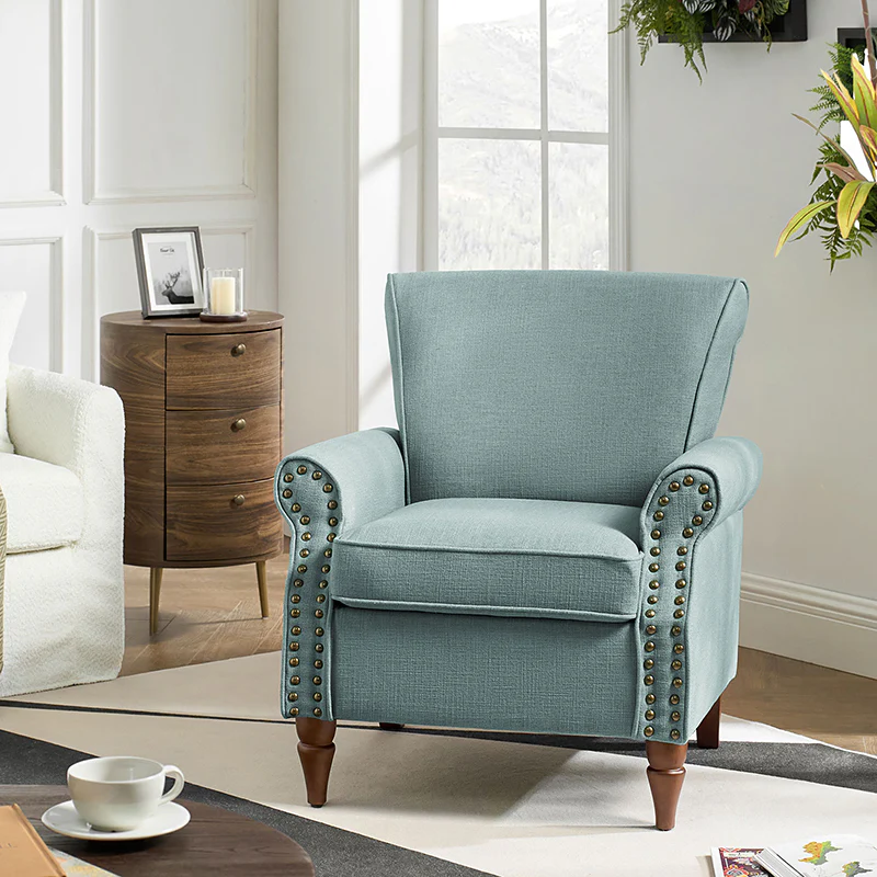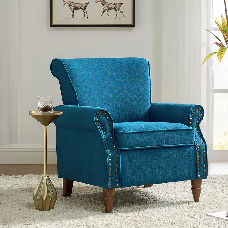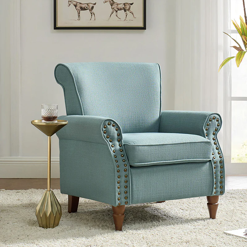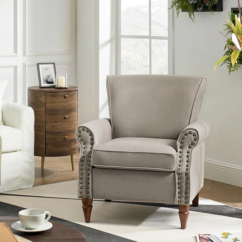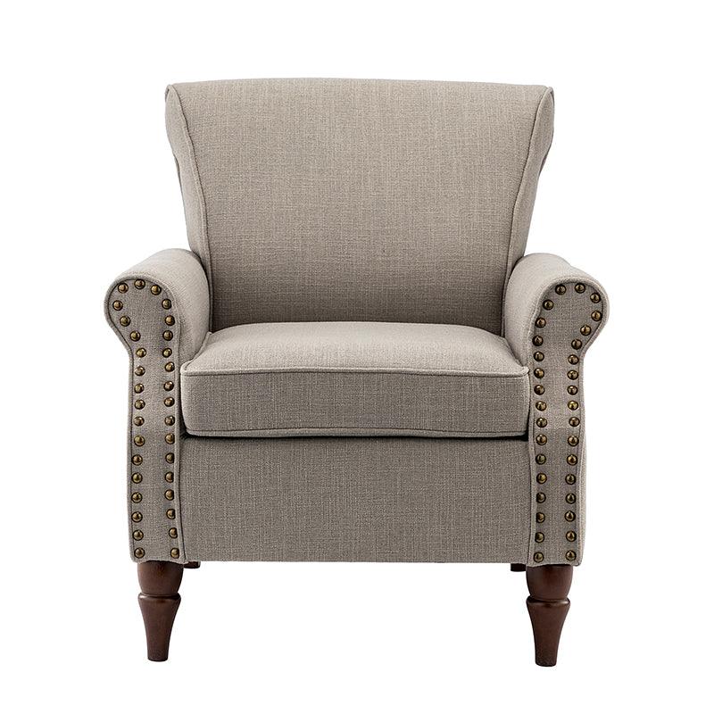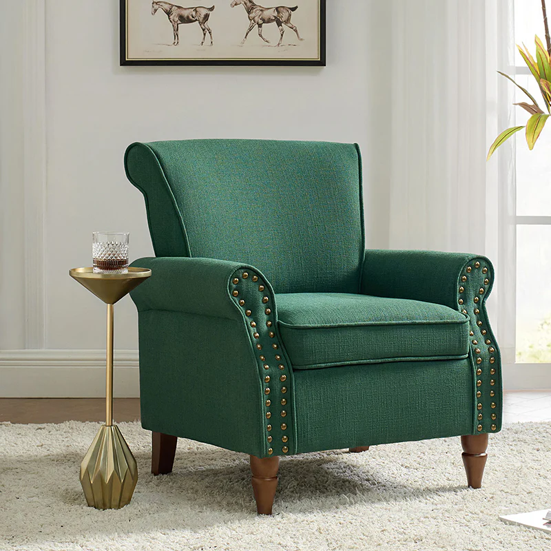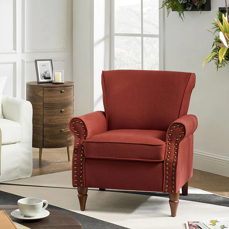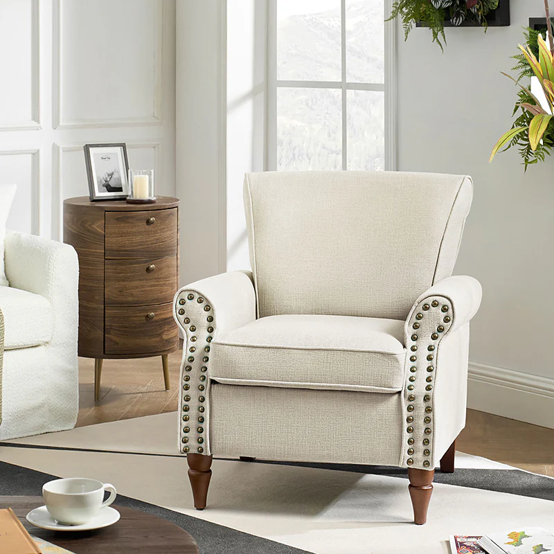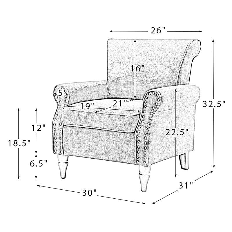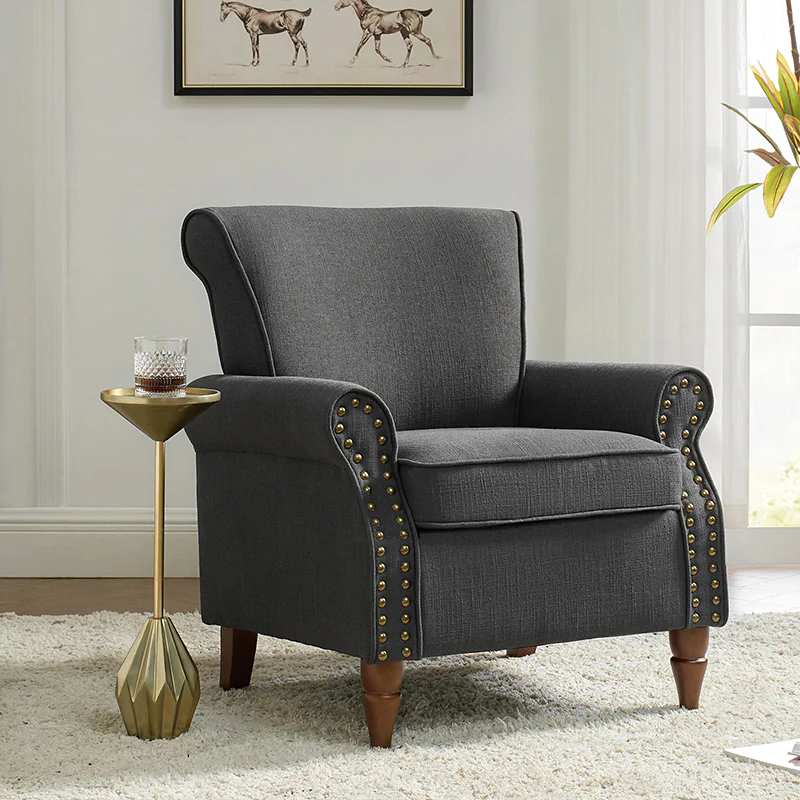 Spring meets your demands, bringing you endless reverie. Beautifully carved solid wood legs support the manufactured wood frame, and the seat cushion filled with a blend of silk wadding and foam is wrapped in soft polyester fabric. Awash in an attractive finish, it lends a touch of classic appeal to your arrangement. Fit well in the living room, bedroom, office, and other scenes thanks to the traditional yet classic outlook, all you need to do is add this wonderful piece to your cart and bring it home!
