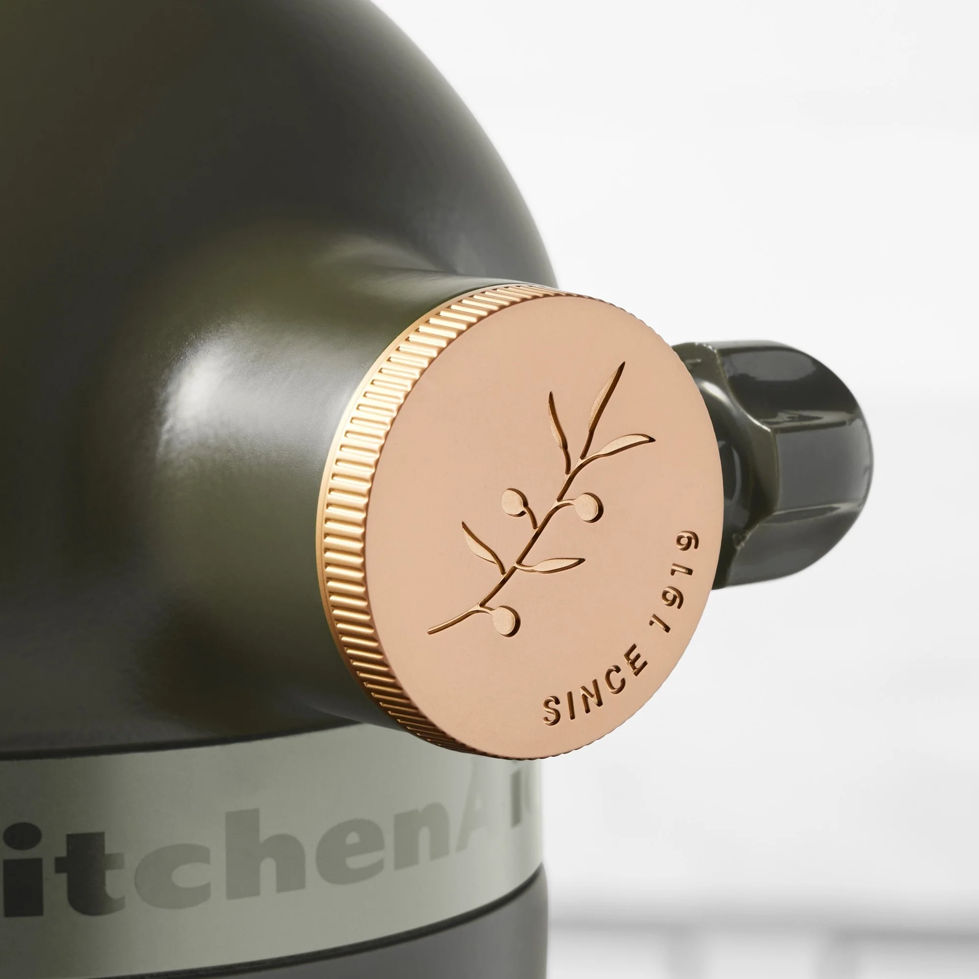 As much a piece of art as it is a top-grade appliance, this KitchenAid庐 stand mixer elevates your baking game in more ways than one. The base features a forest-green hue that contrasts beautifully with the walnut work bowl, which boasts a unique grain pattern and food-safe finish. The versatile machine has enough power and capacity to prepare large batches of cake batter or cookie dough without compromising counter space.