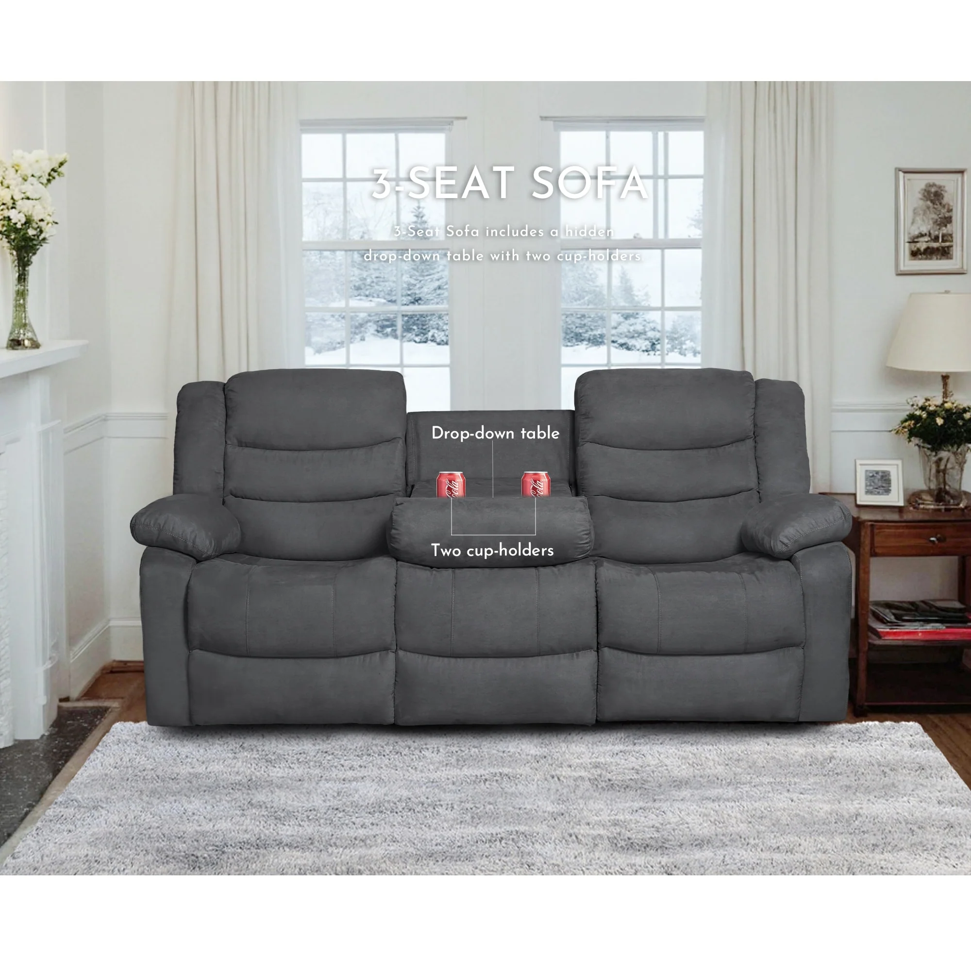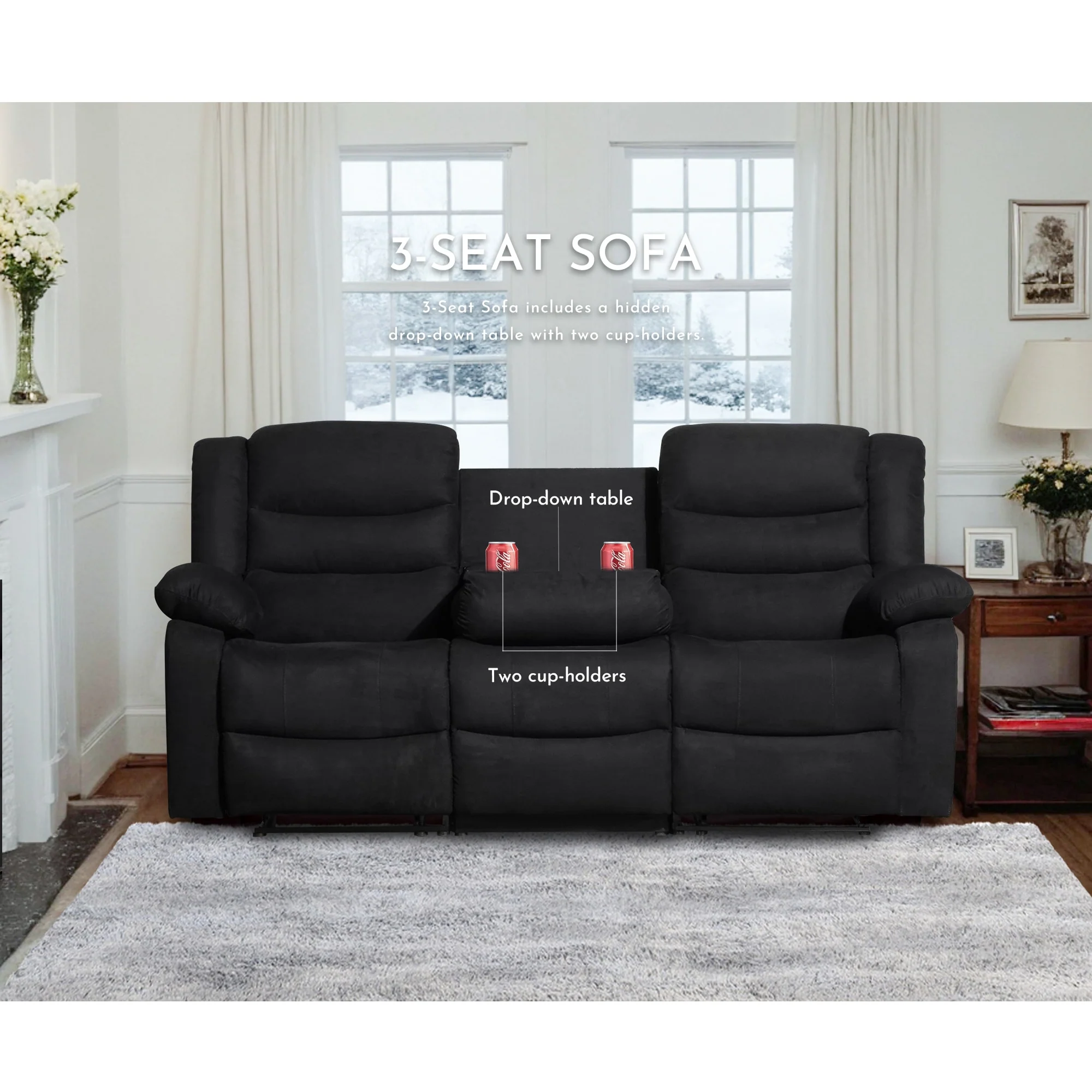 - 3-Seat Sofa includ a hidden drop-down table with two cup-holder.