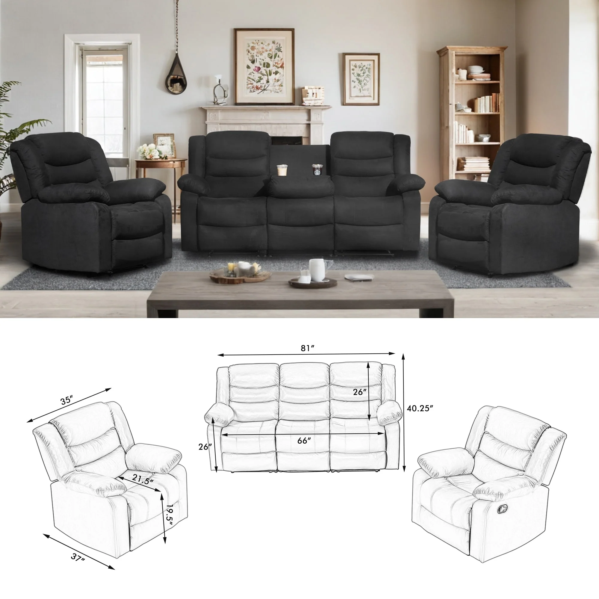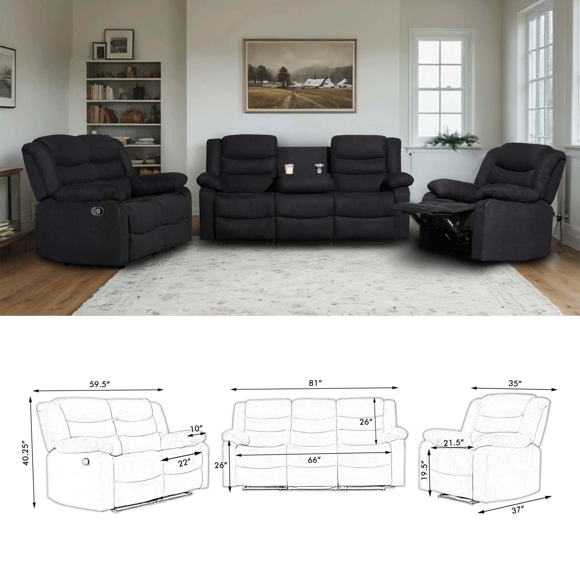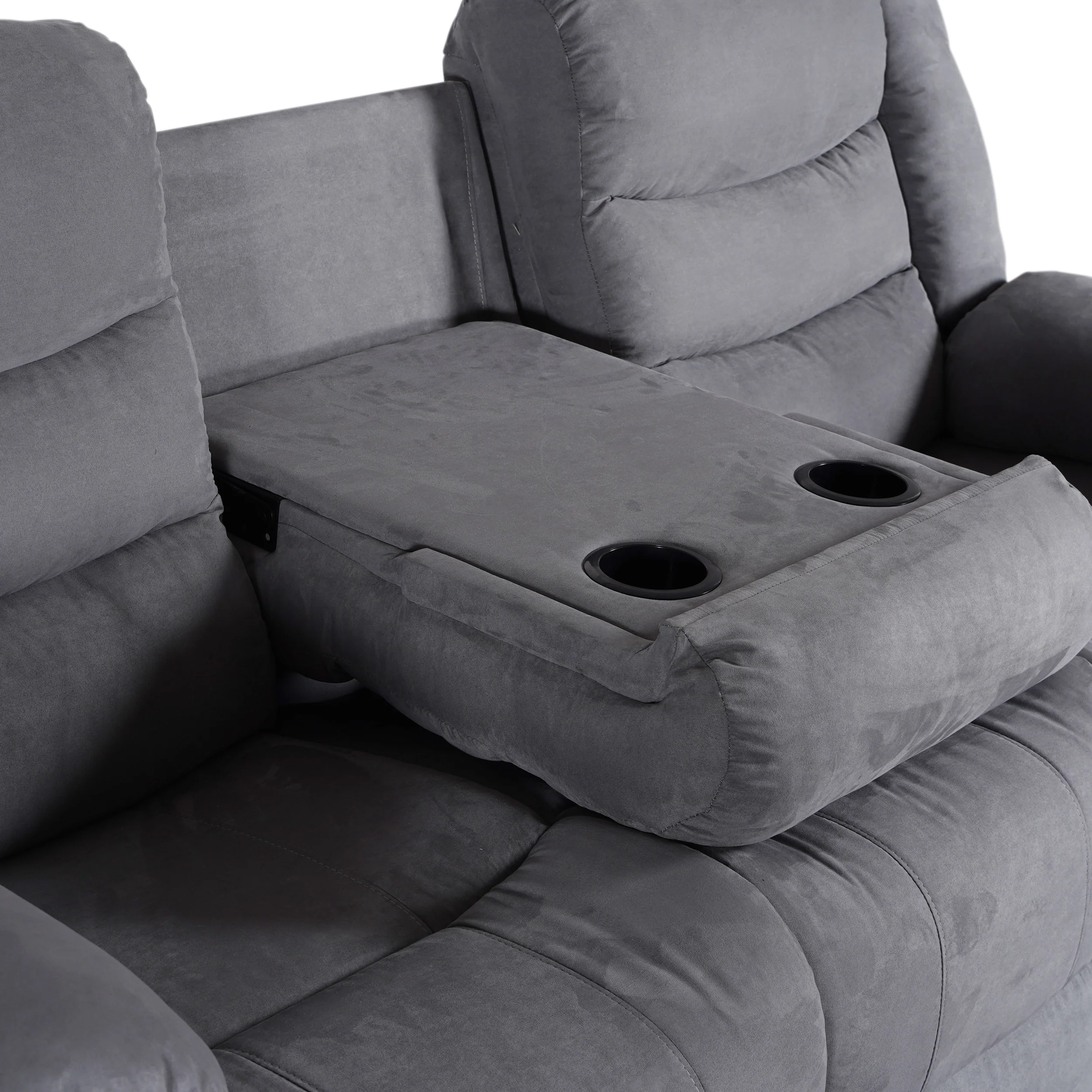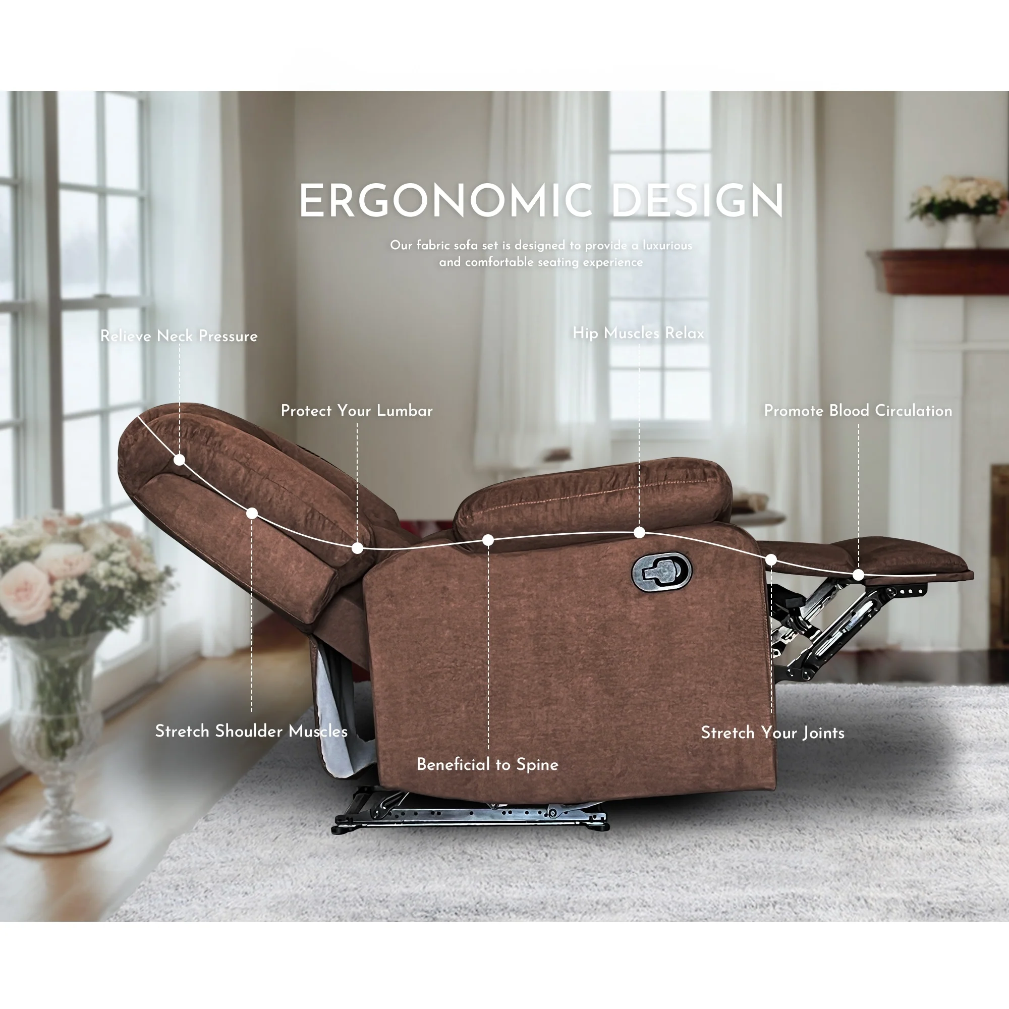 Experience the ultimate indulgence with our manual recliner sofa set, offering exceptional value. This sleek design allows you to unwind and adjust your position for premium relaxation. Crafted with luxurious suede upholstery, the sofa features cozy high-performance cushions filled with supportive innerspring foam. The distinctive stitching adds a touch of elegance to create a space you won't want to leave anytime soon.�