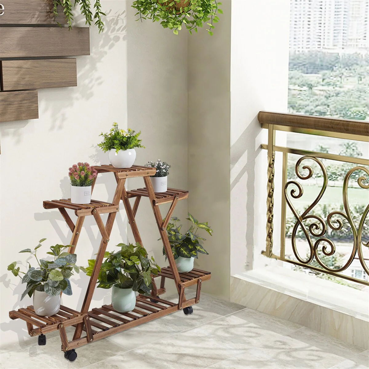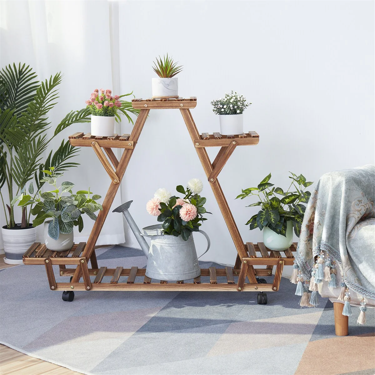 ��Sturdy and Durable��----This wooden plant stand is made of solid carbonized pine wood, which has high hardness, durability, stability, anti-deform and weather resistant. Its triangular shape �����increased its weight capacity, can display many flower pots, plants, succulent, etc