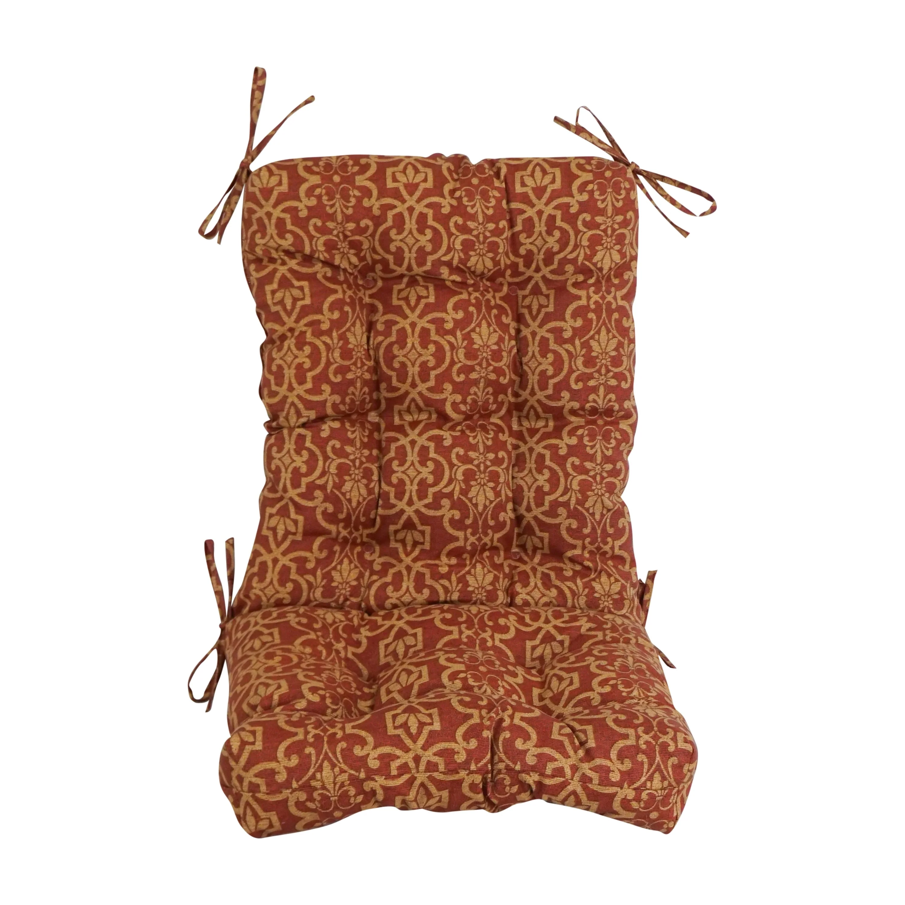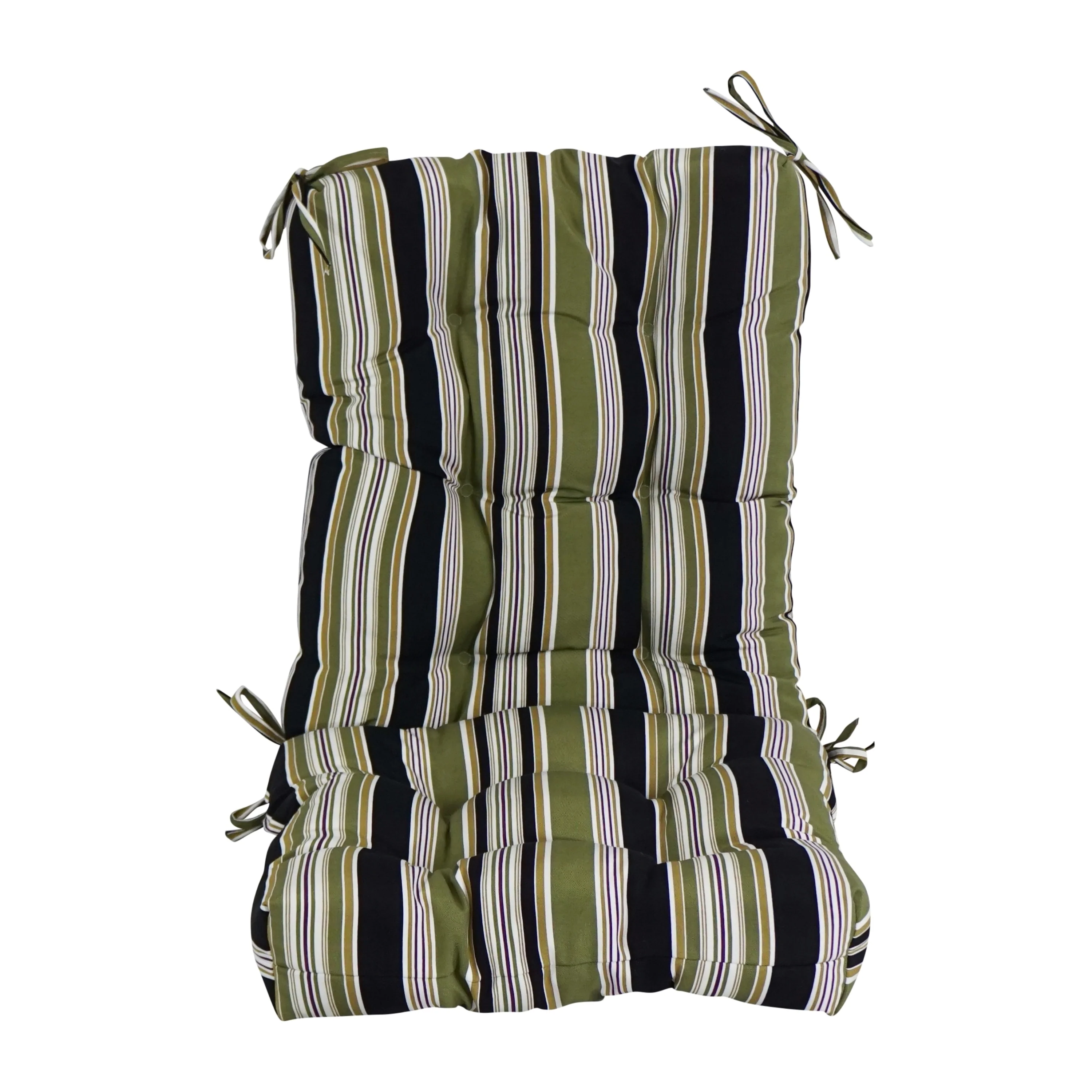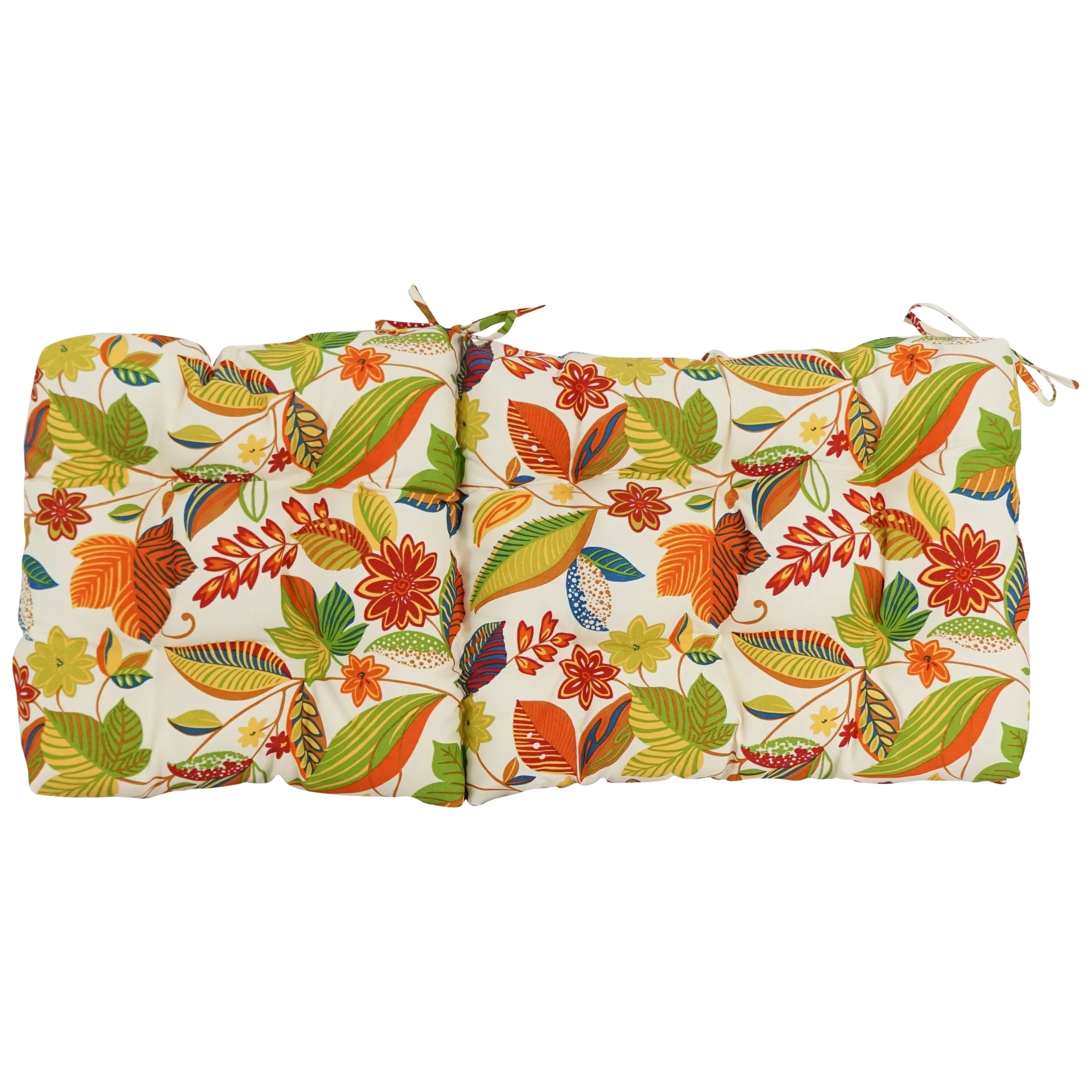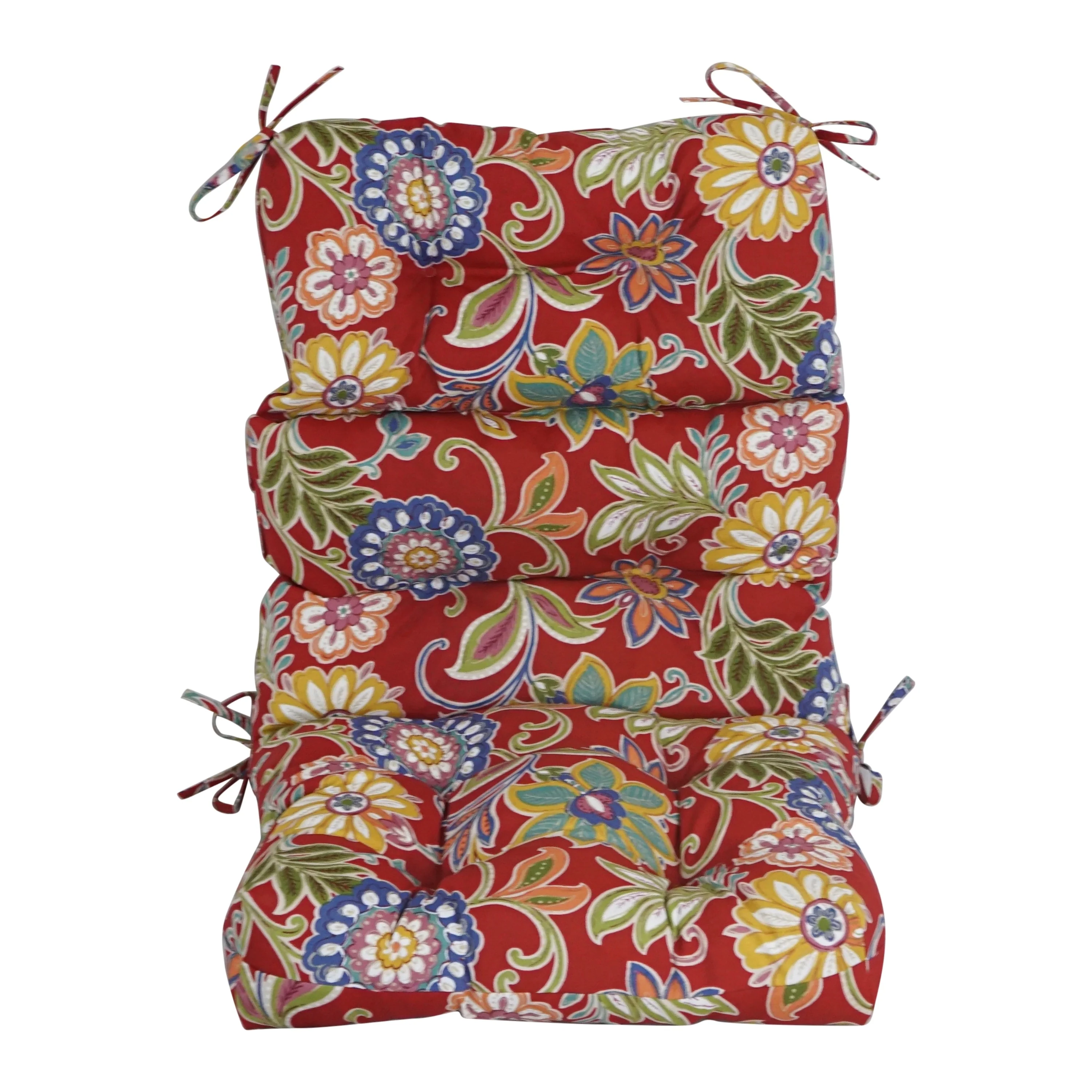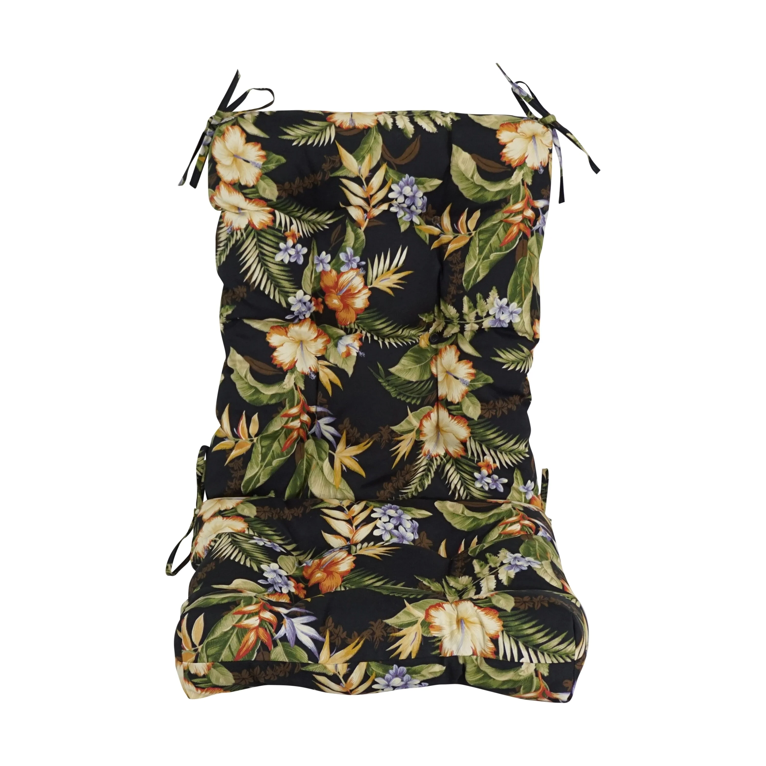 Add a touch of comfort and splash of color to your outdoor patio furnishings with this seat/back chair cushion. Crafted of durable, UV-resistant, and fade-resistant spun polyester outdoor fabric, these cushions include a classic tufted design for �ample cushioned loft. �This cushion can be easily secured to chairs using the attached fabric ties and is available is three sizes to allow a snug fit to a variety of patio and garden chairs. �Available in a wide variety of fabric patterns ranging from the timeless to the trendy, it is easy to select an color option that is a perfect match for your existing outdoor style.