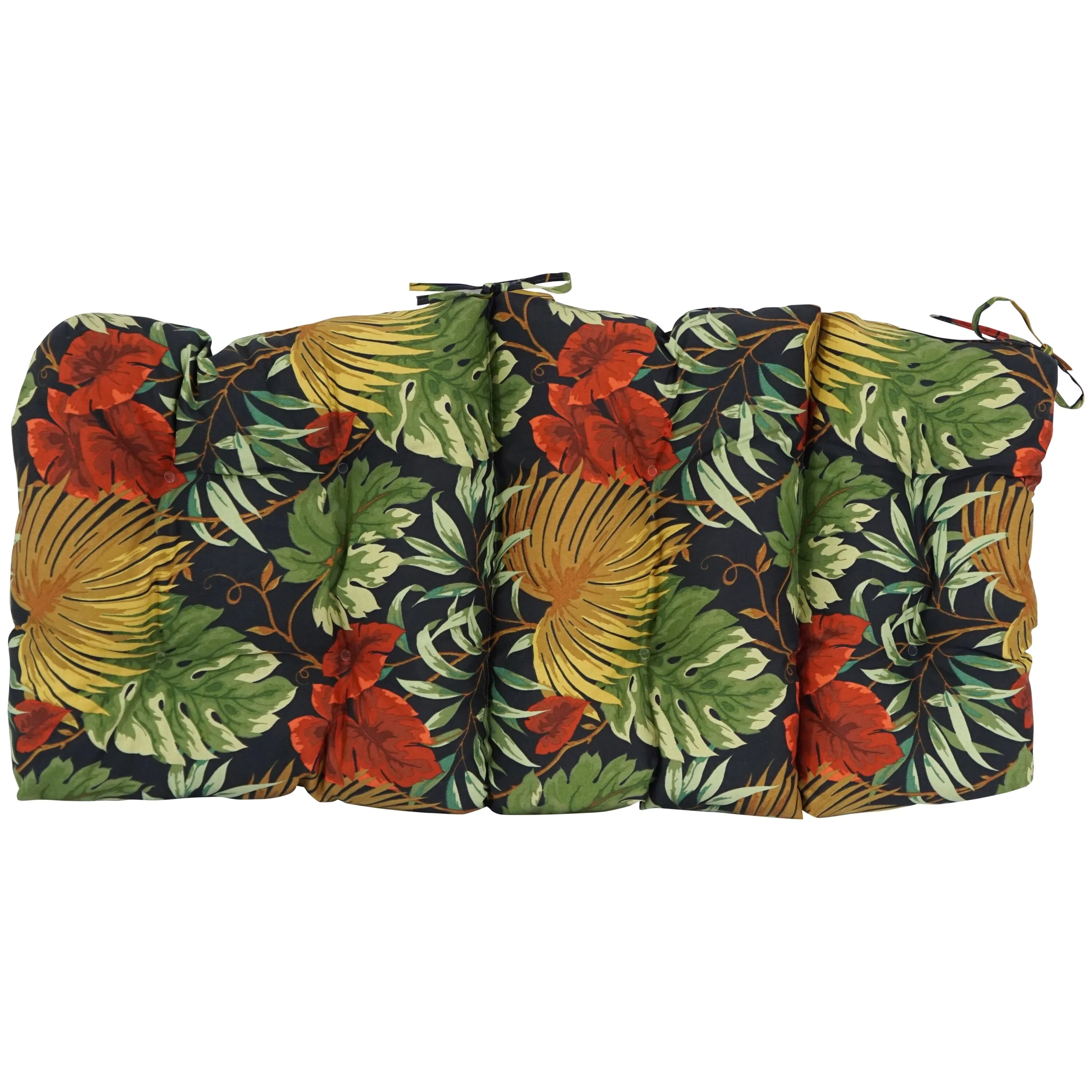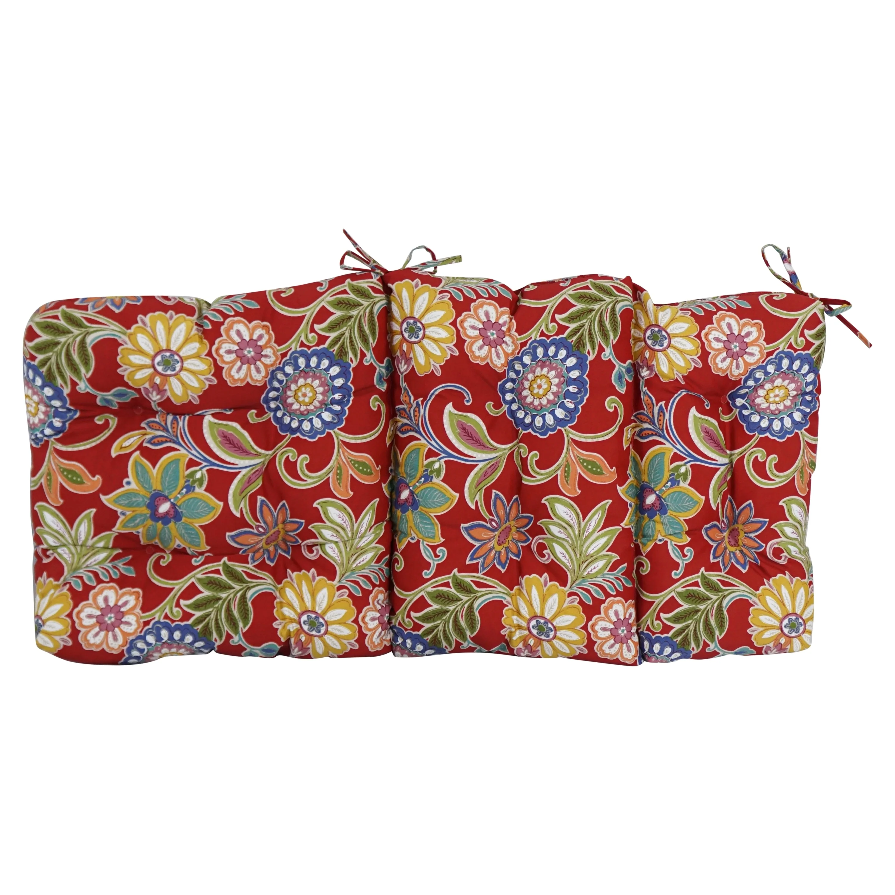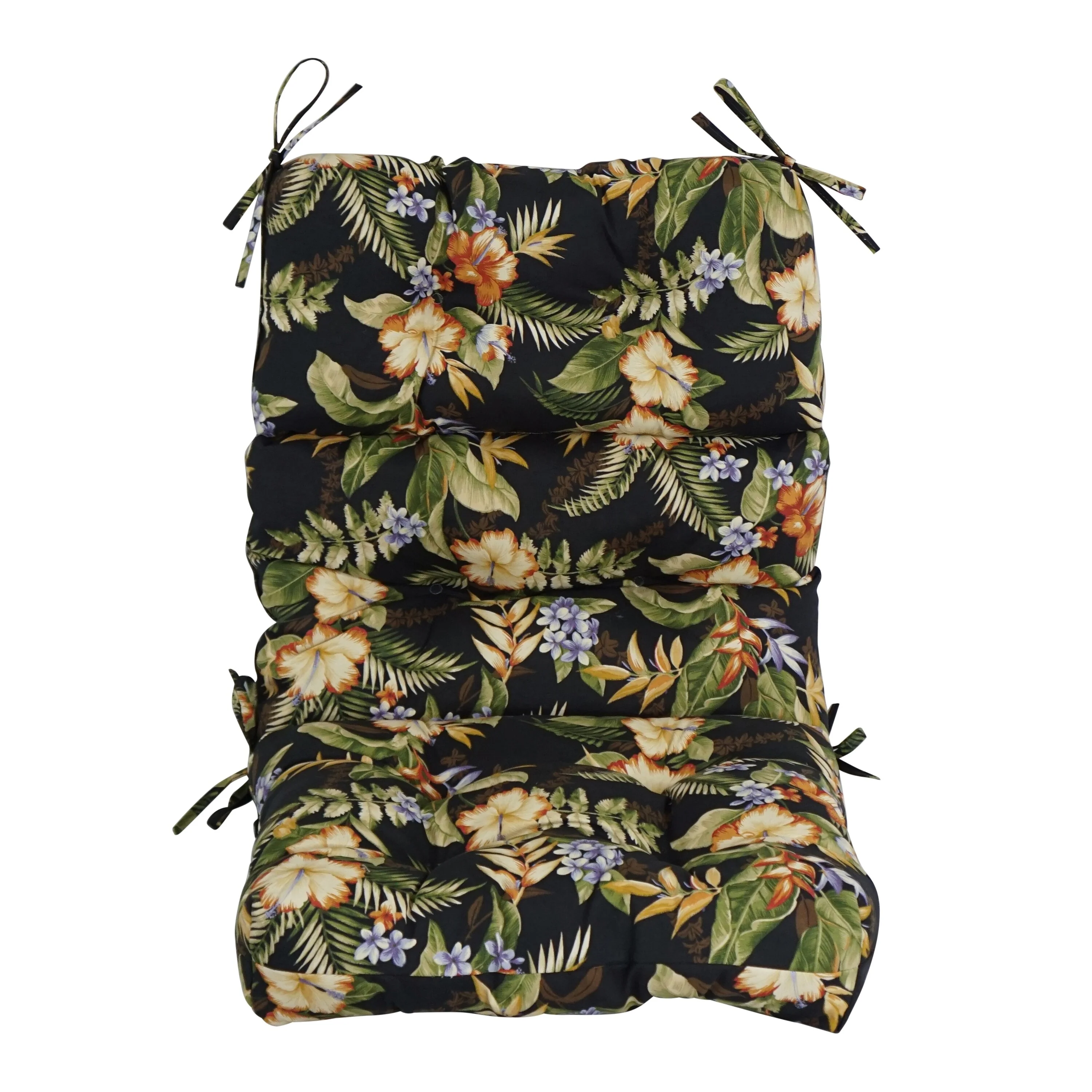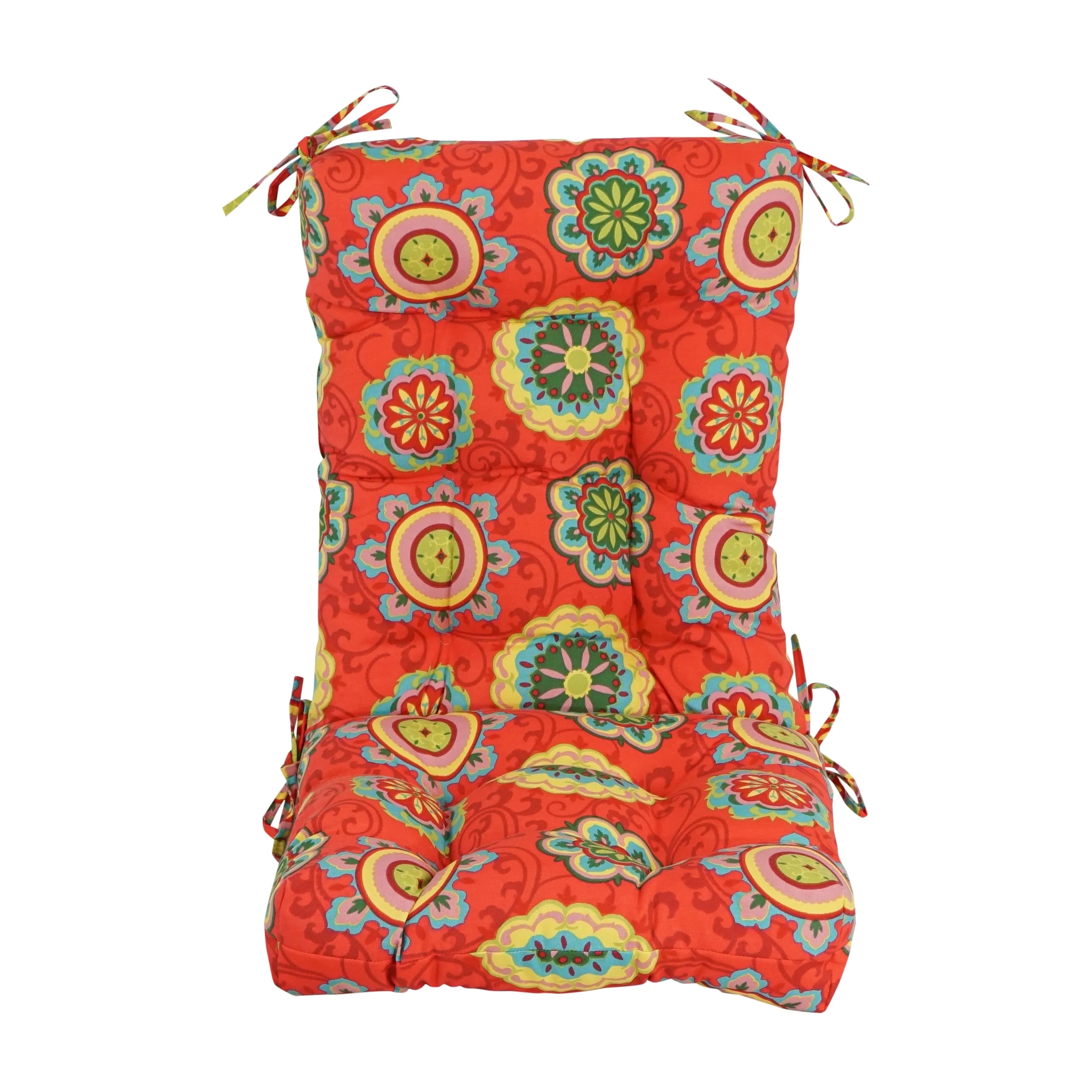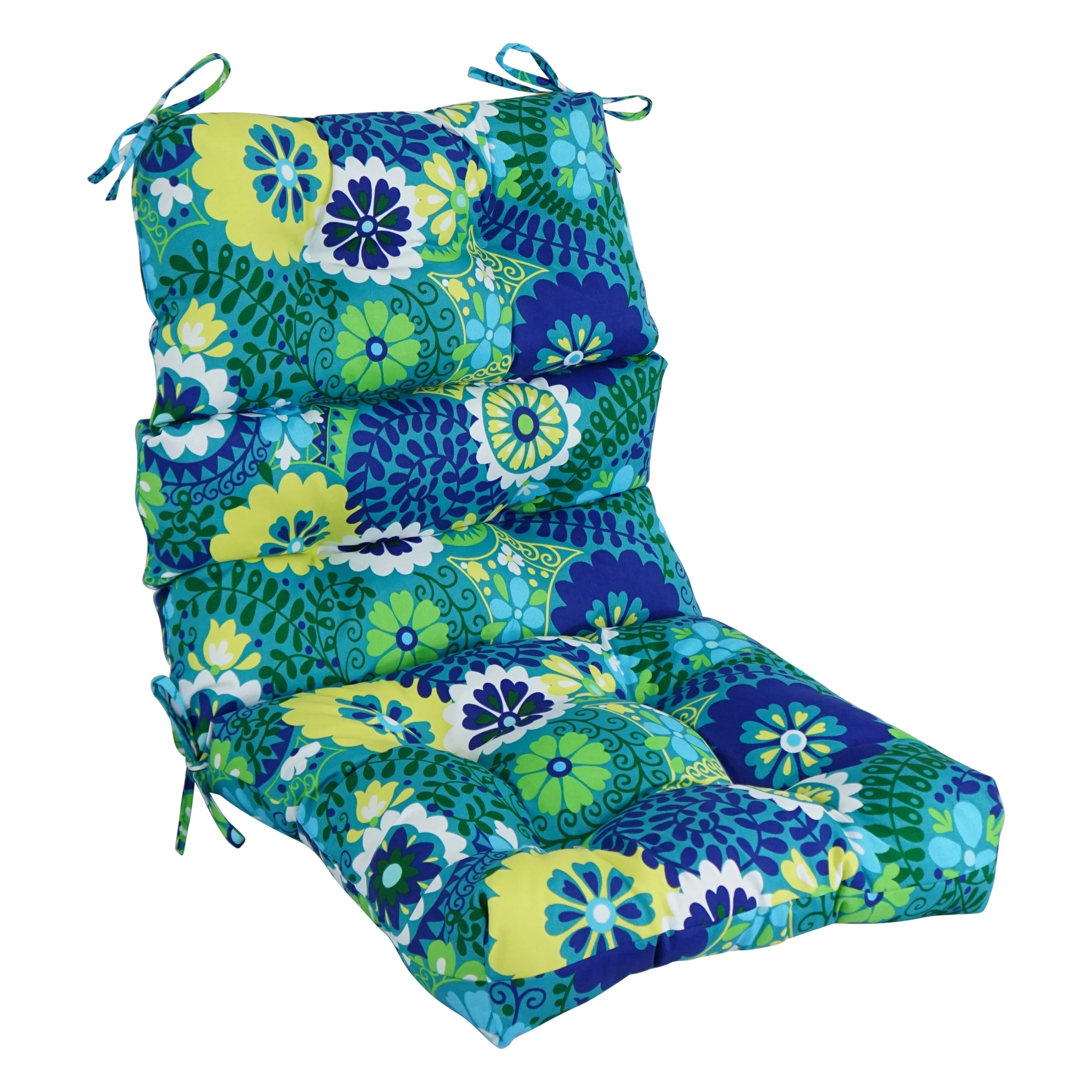 Add a touch of comfort and splash of color to your outdoor patio furnishings with this seat/back chair cushion. Crafted of durable, UV-resistant, and fade-resistant spun polyester outdoor fabric, these cushions include a classic tufted design for �ample cushioned loft. �This cushion can be easily secured to chairs using the attached fabric ties and is available is three sizes to allow a snug fit to a variety of patio and garden chairs. �Available in a wide variety of fabric patterns ranging from the timeless to the trendy, it is easy to select an color option that is a perfect match for your existing outdoor style.