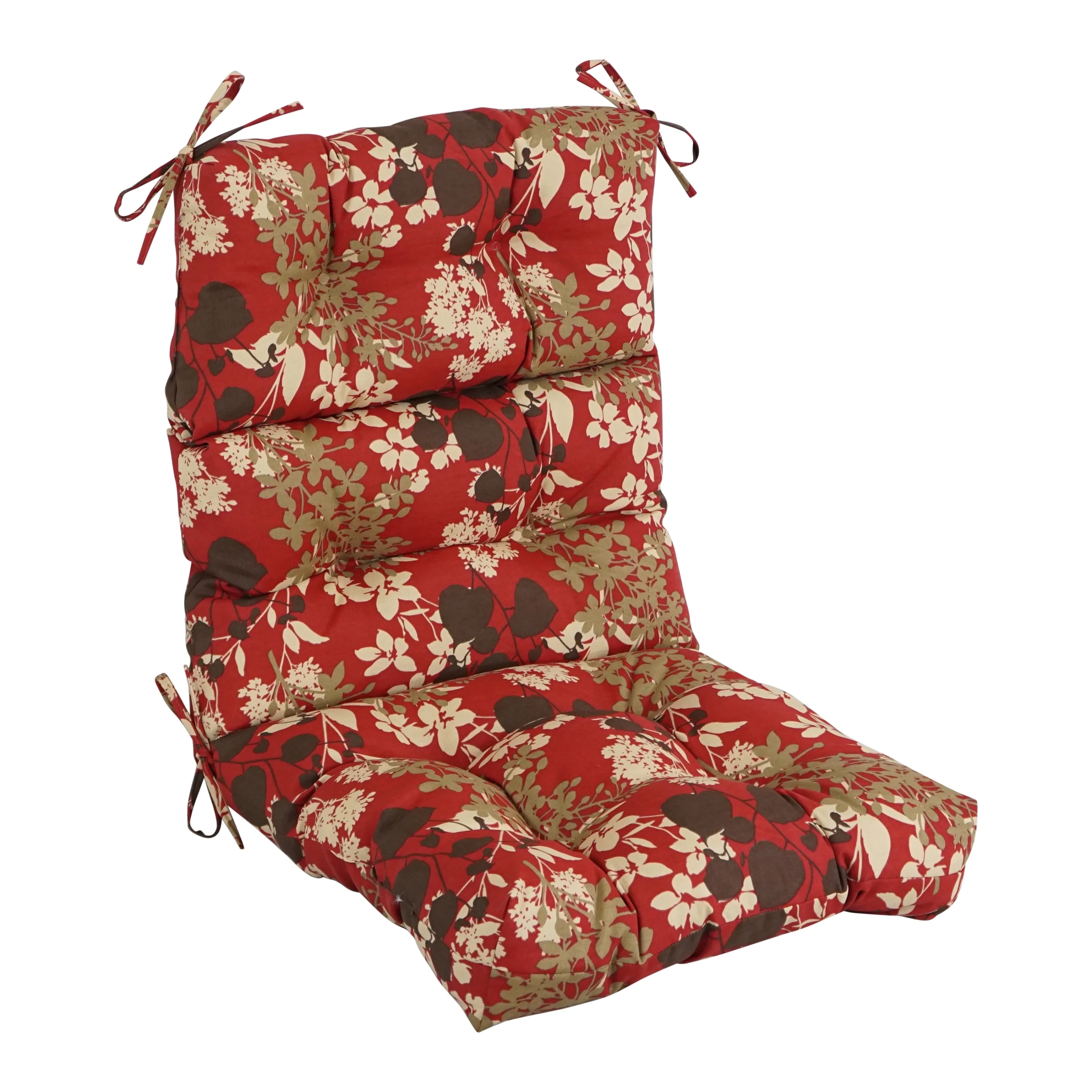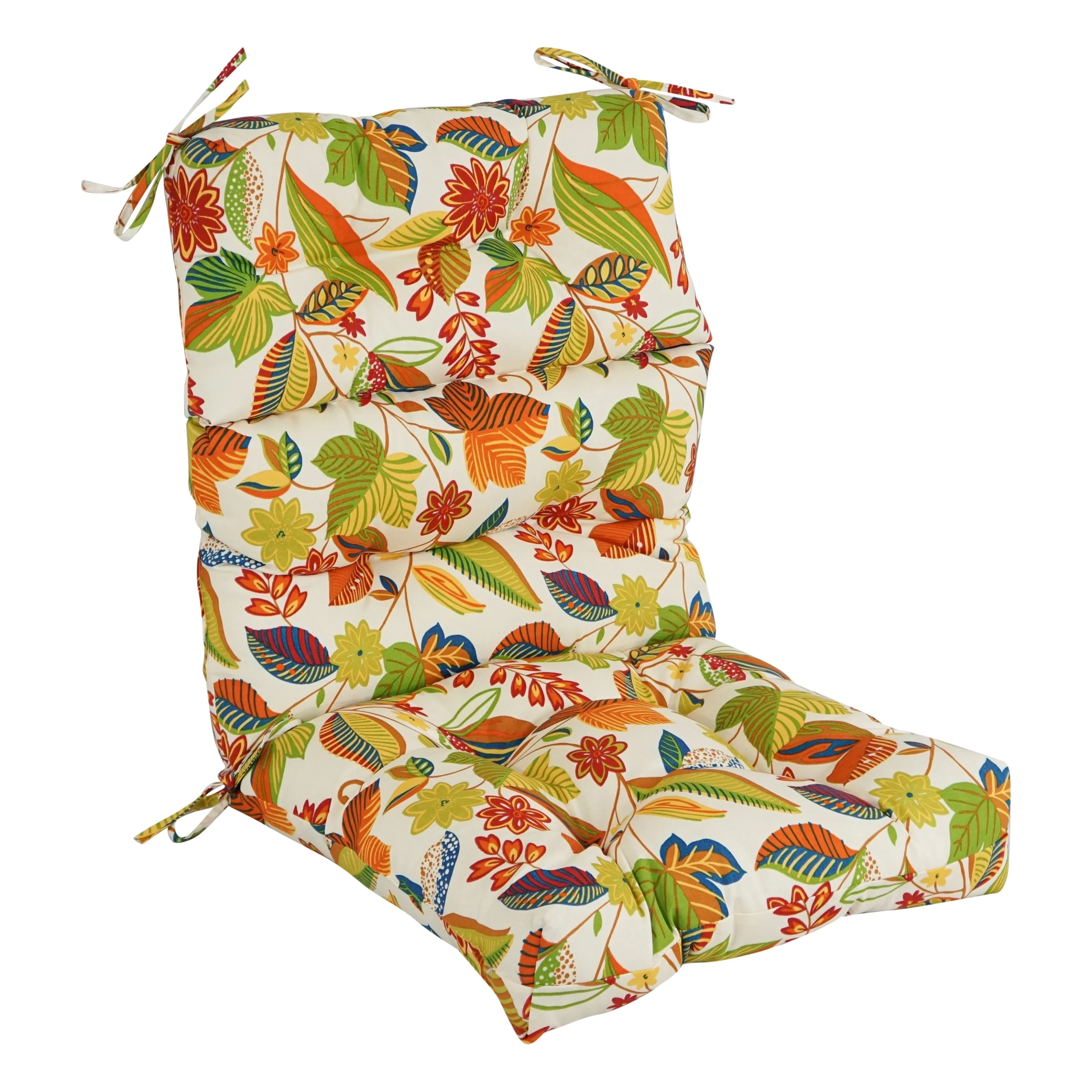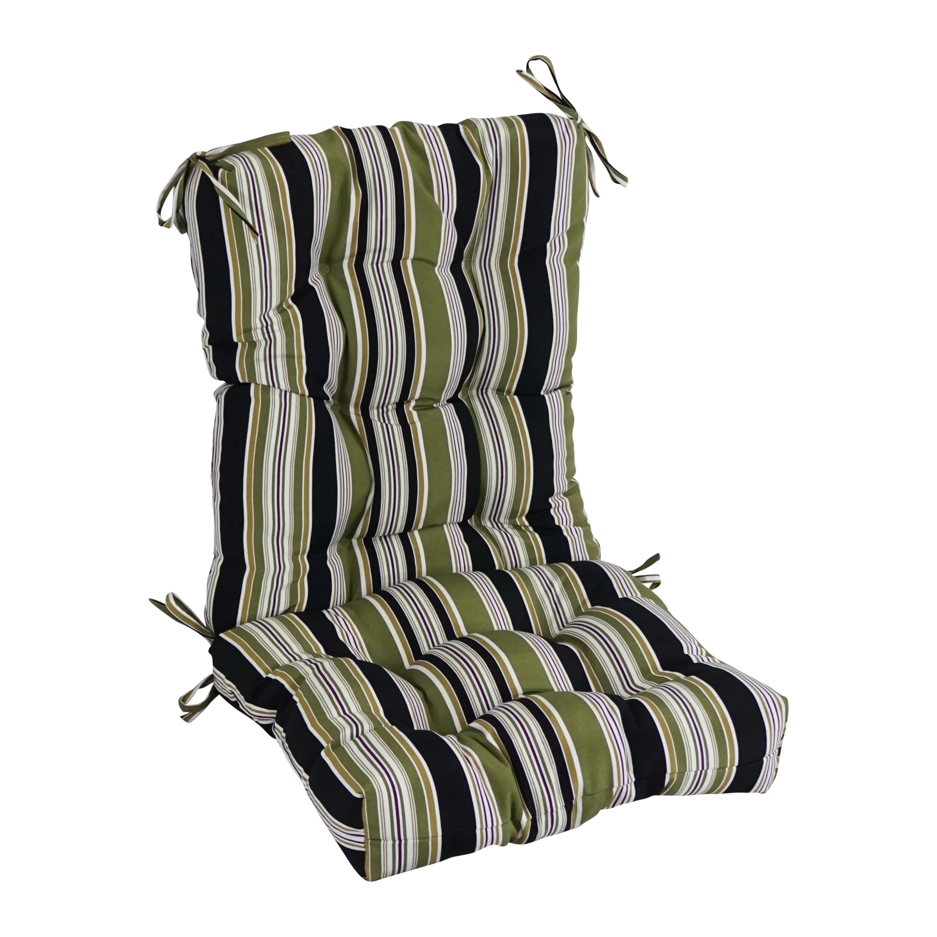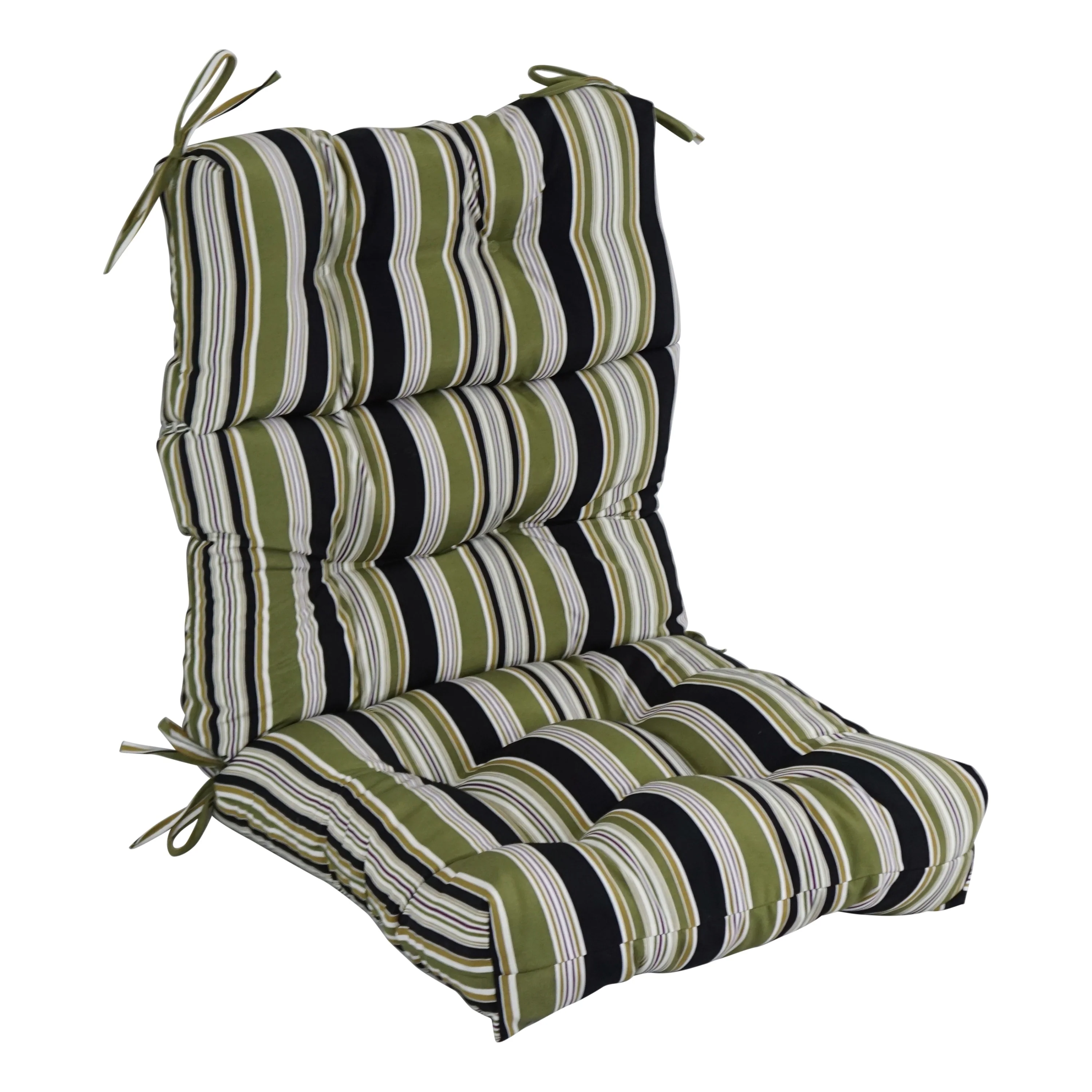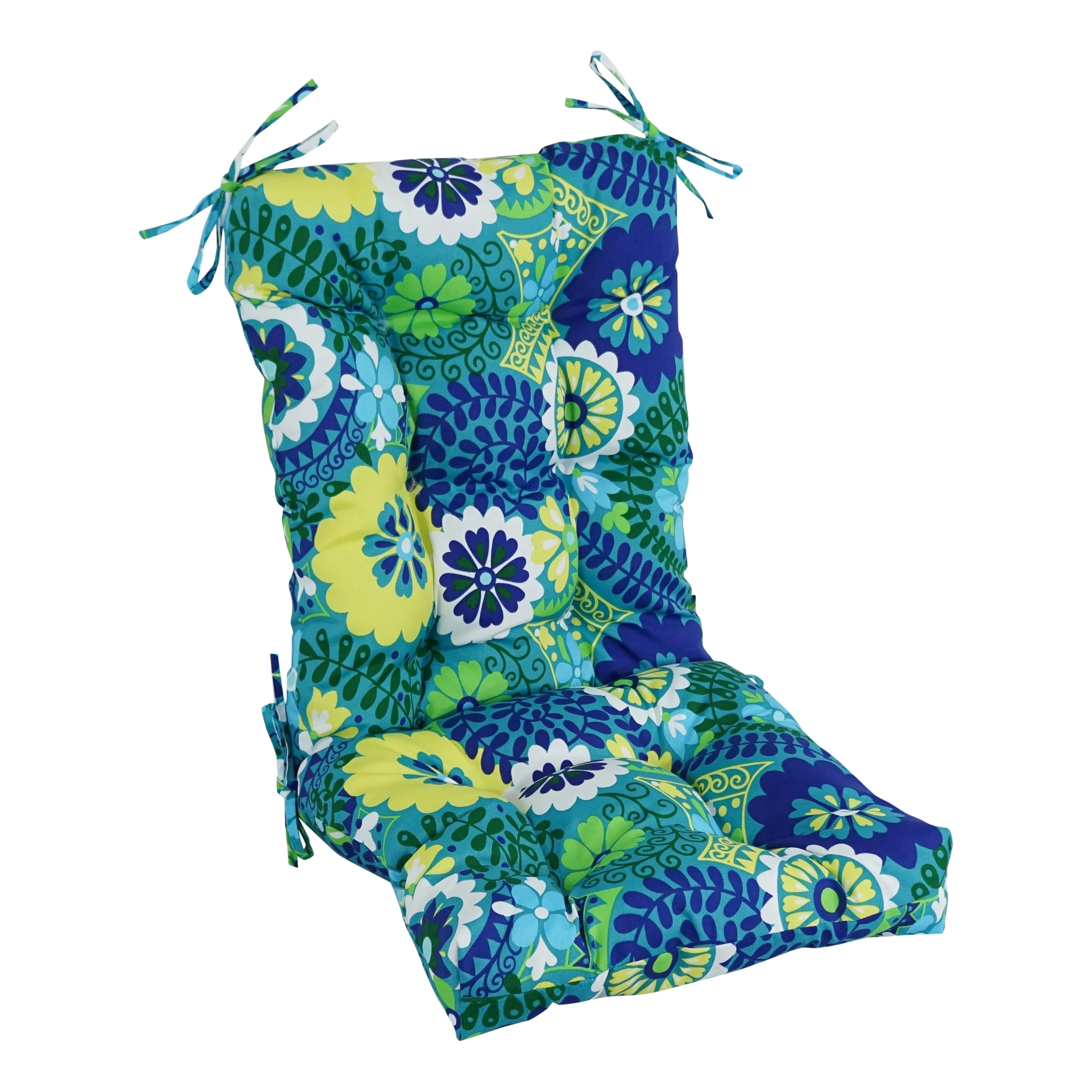 Add a touch of comfort and splash of color to your outdoor patio furnishings with this seat/back chair cushion. Crafted of durable, UV-resistant, and fade-resistant spun polyester outdoor fabric, these cushions include a classic tufted design for �ample cushioned loft. �This cushion can be easily secured to chairs using the attached fabric ties and is available is three sizes to allow a snug fit to a variety of patio and garden chairs. �Available in a wide variety of fabric patterns ranging from the timeless to the trendy, it is easy to select an color option that is a perfect match for your existing outdoor style.