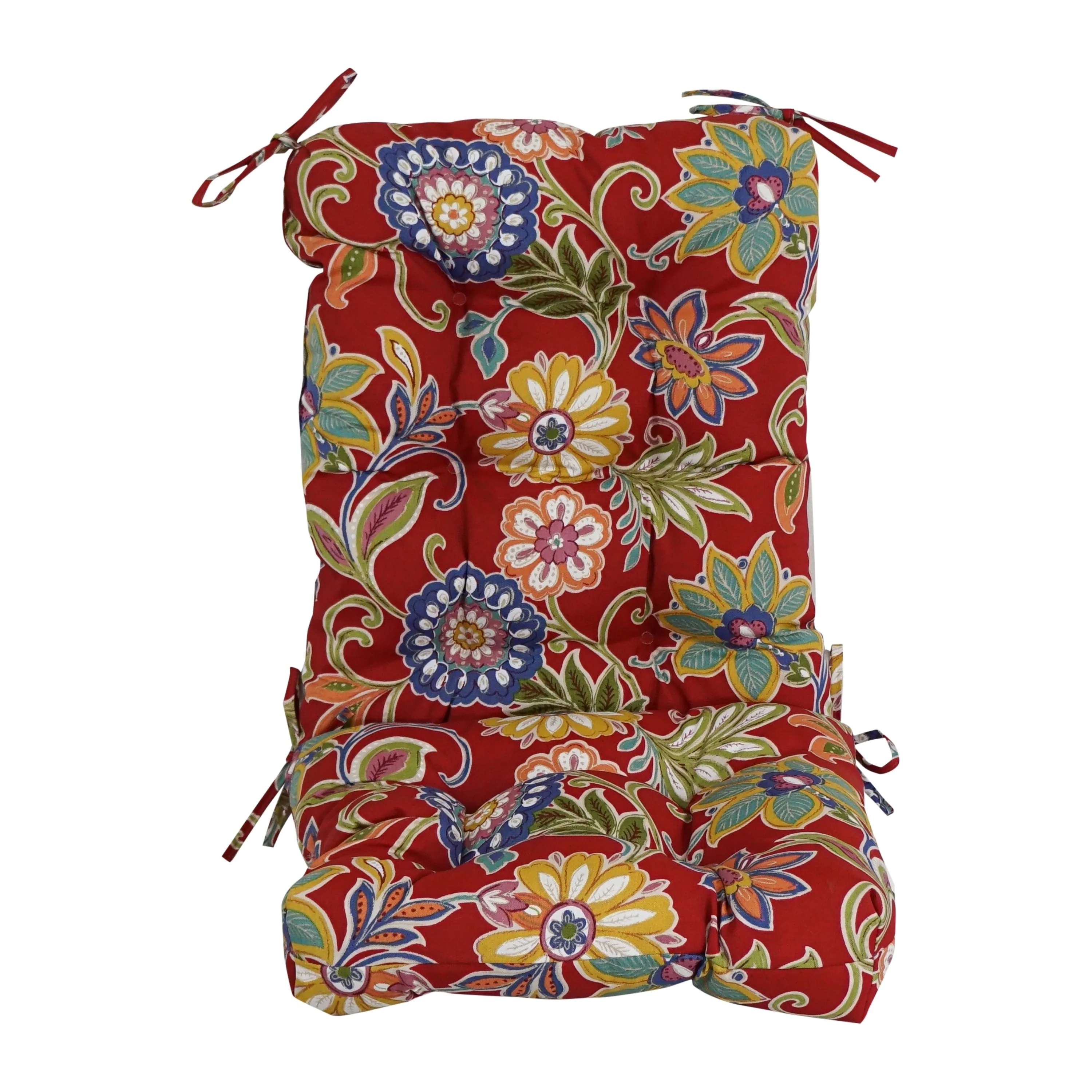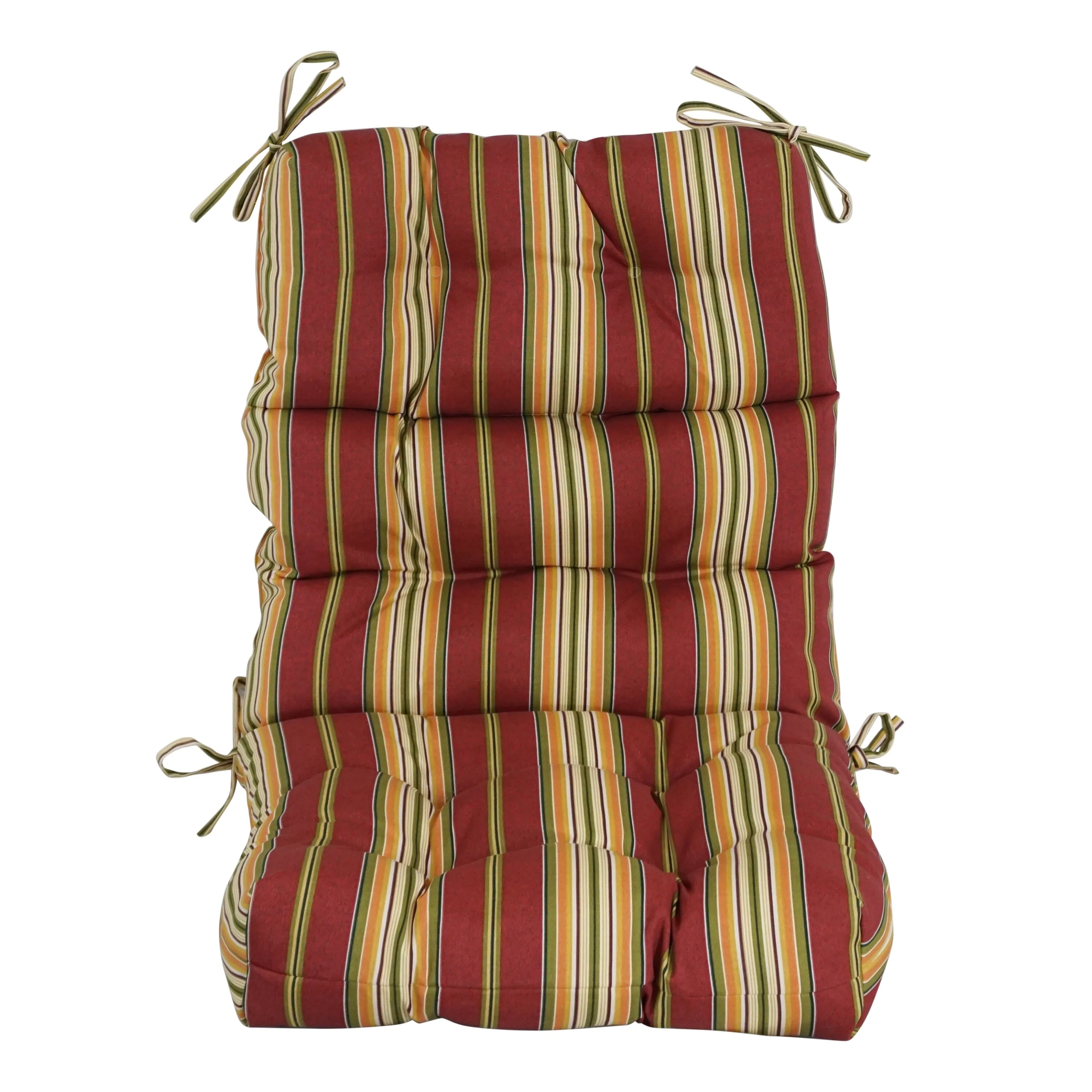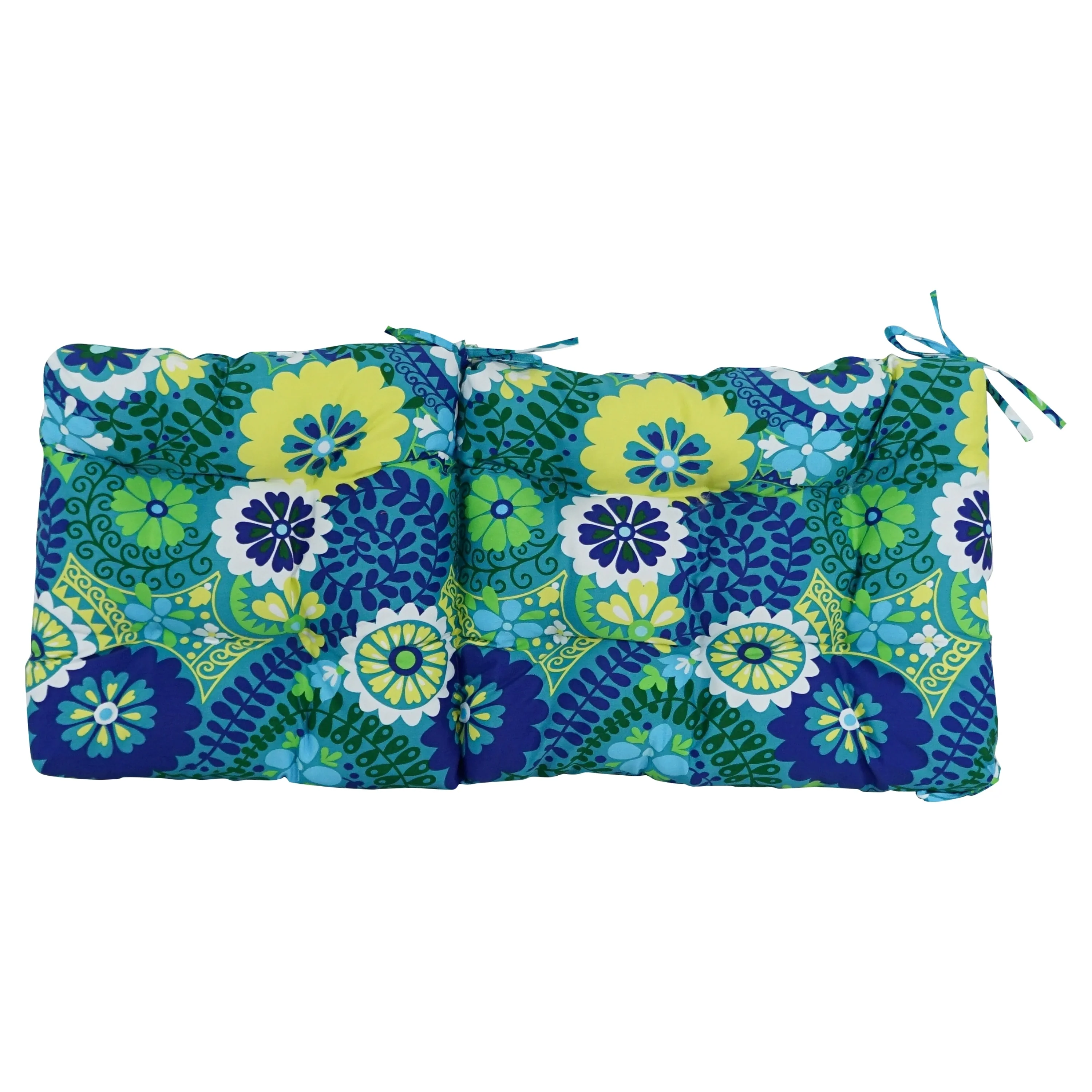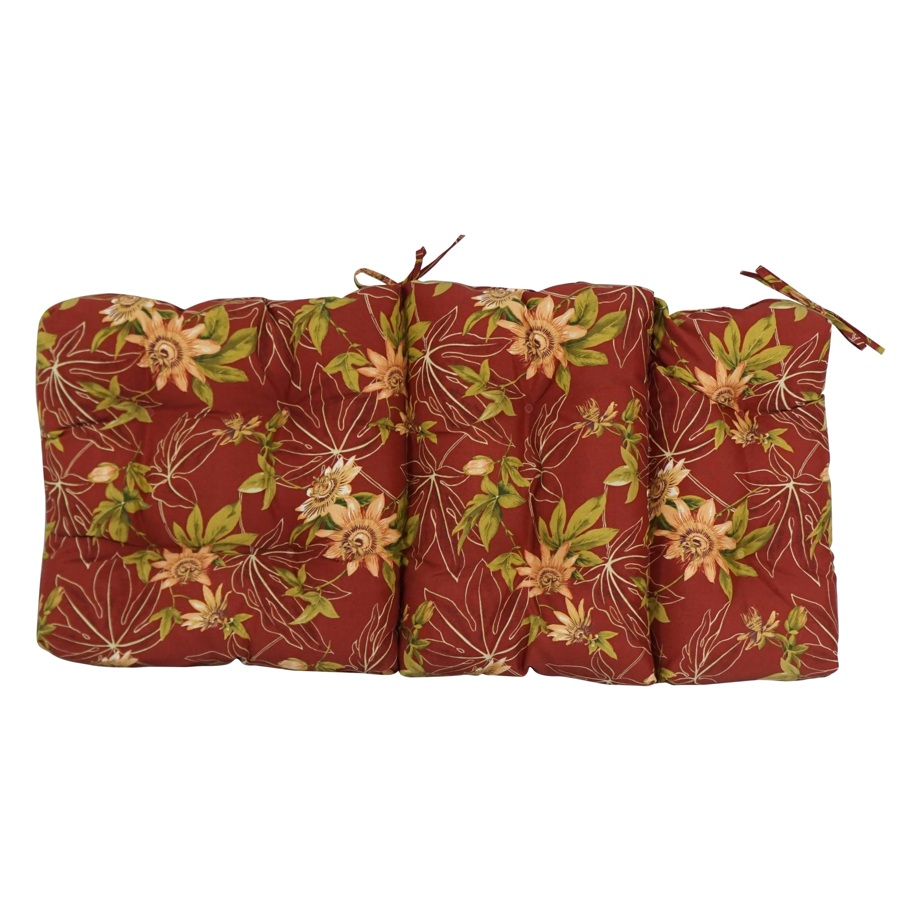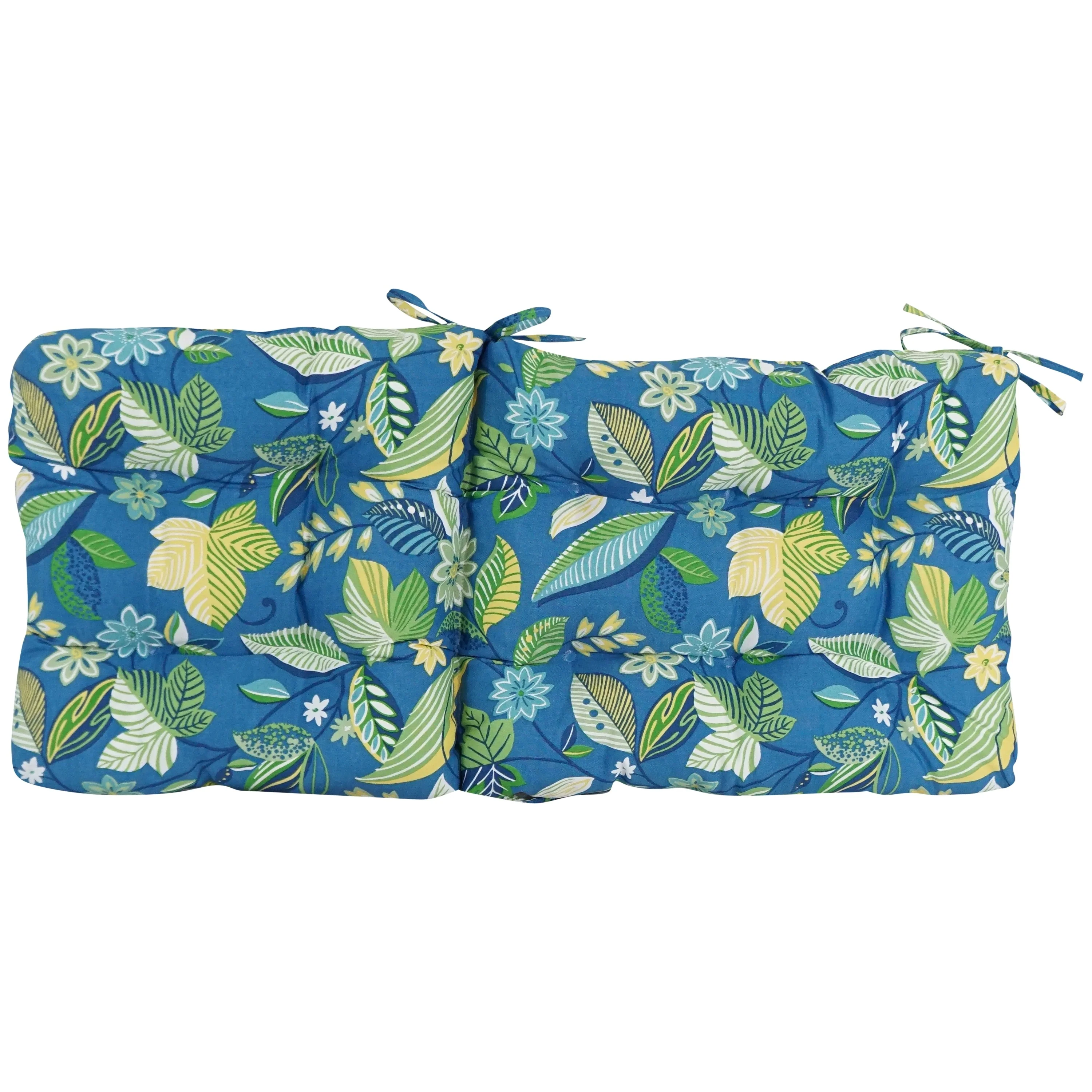 Add a touch of comfort and splash of color to your outdoor patio furnishings with this seat/back chair cushion. Crafted of durable, UV-resistant, and fade-resistant spun polyester outdoor fabric, these cushions include a classic tufted design for �ample cushioned loft. �This cushion can be easily secured to chairs using the attached fabric ties and is available is three sizes to allow a snug fit to a variety of patio and garden chairs. �Available in a wide variety of fabric patterns ranging from the timeless to the trendy, it is easy to select an color option that is a perfect match for your existing outdoor style.
