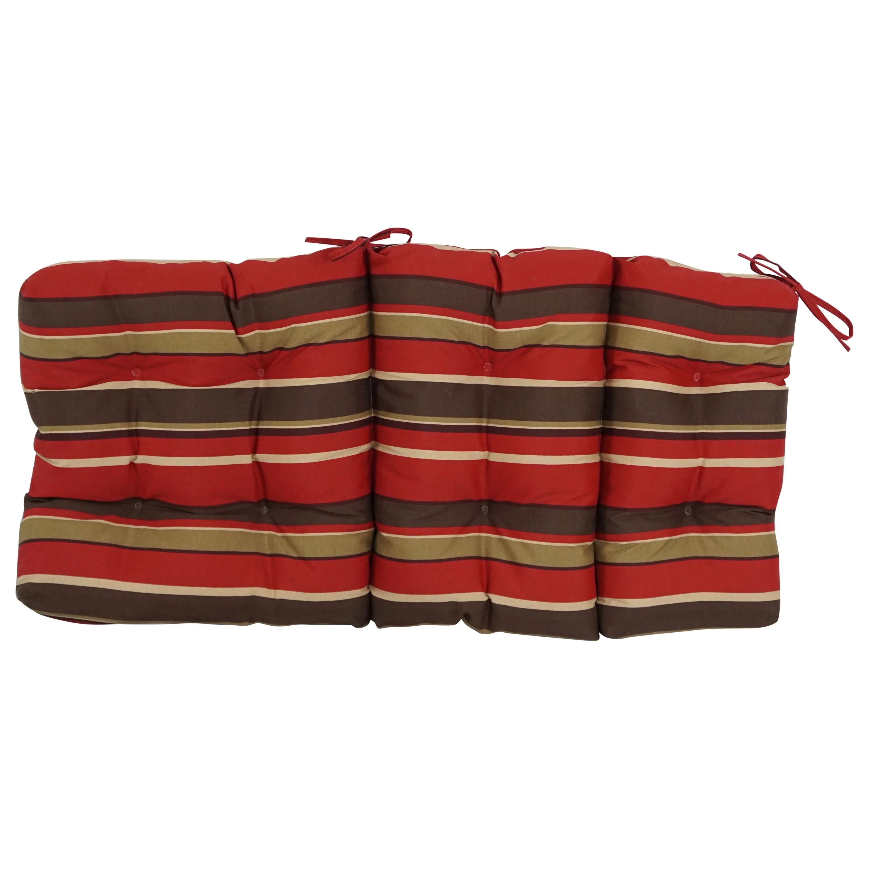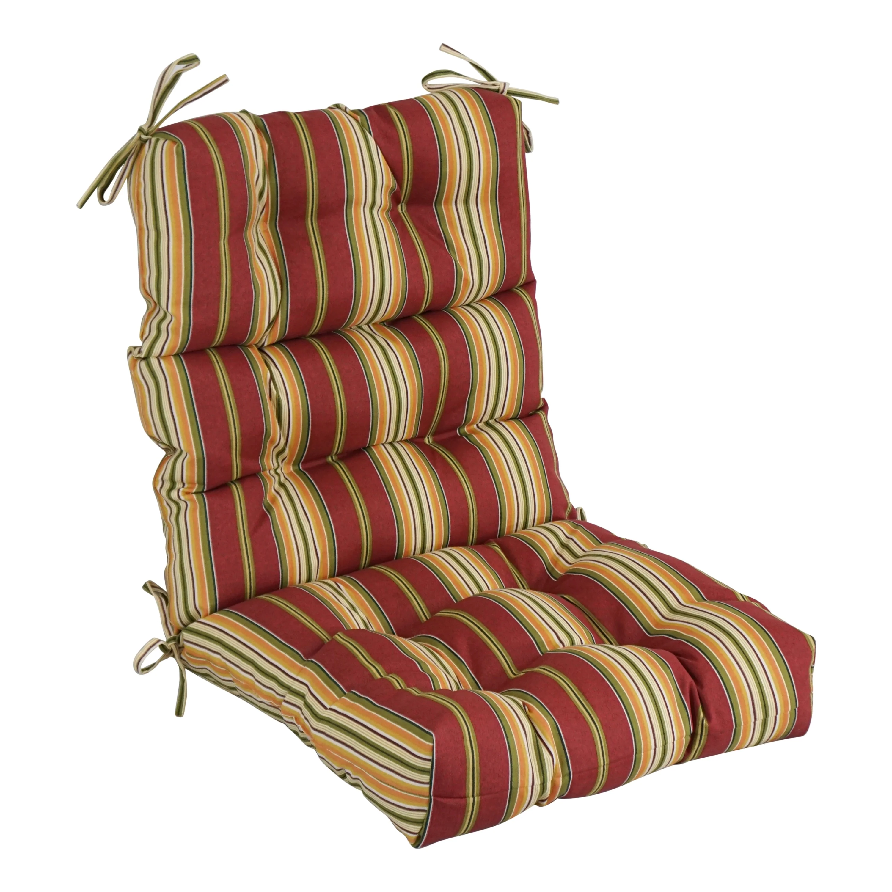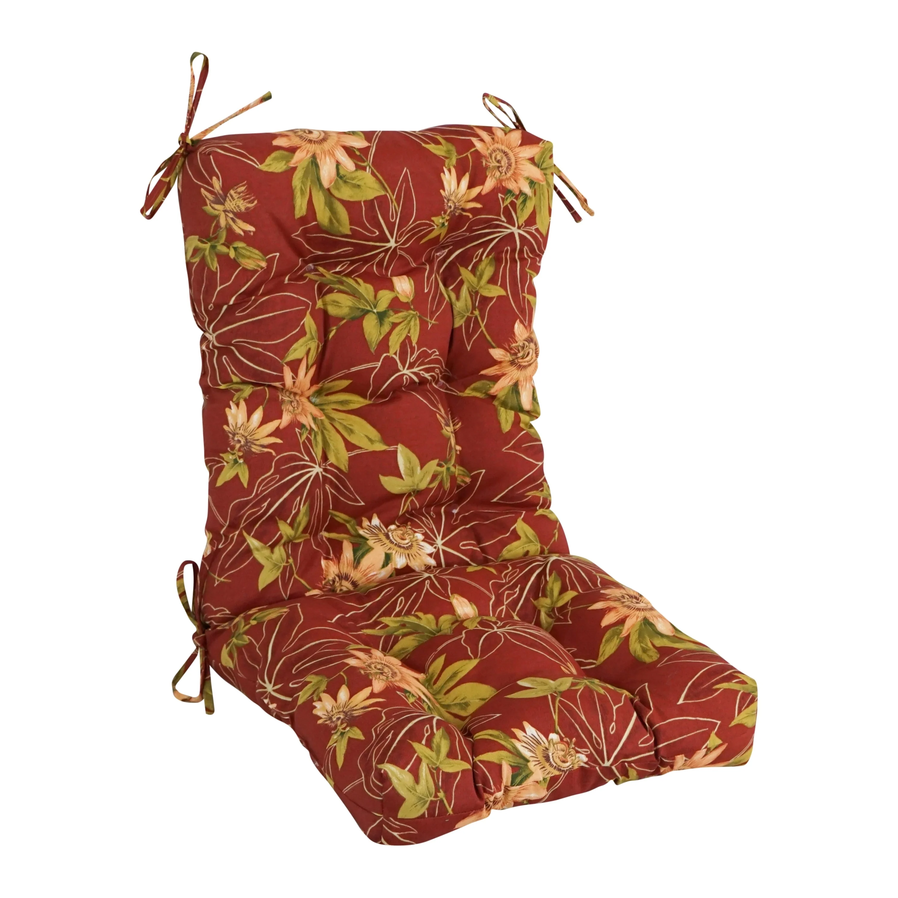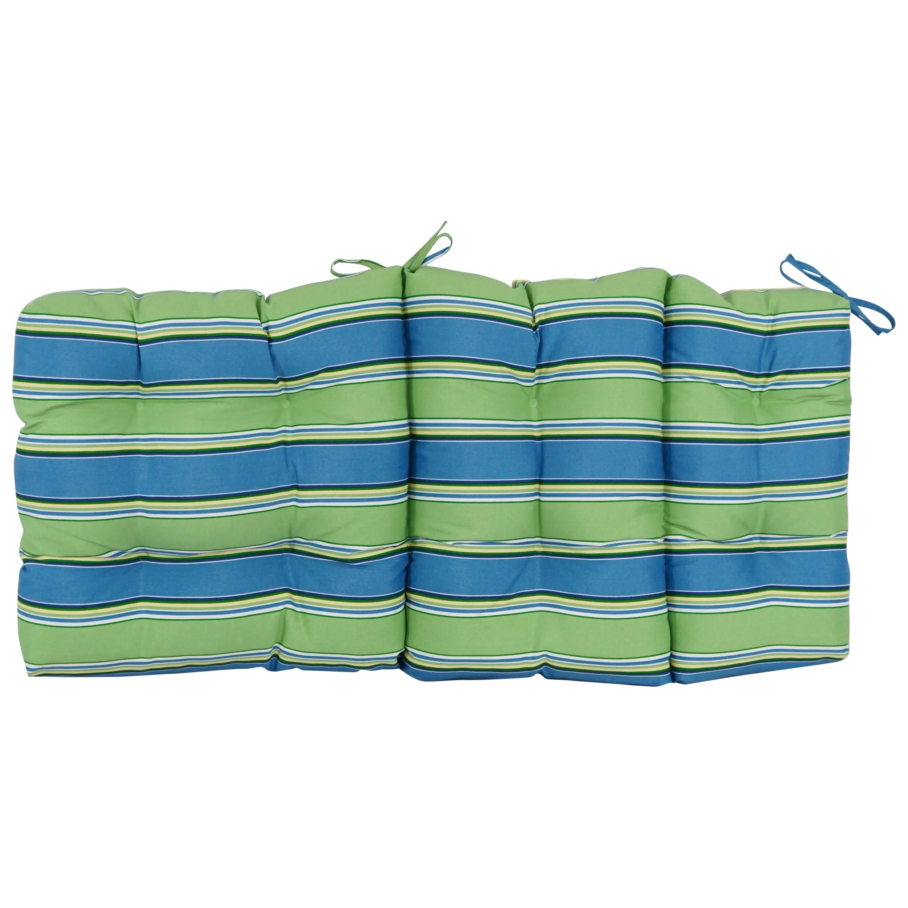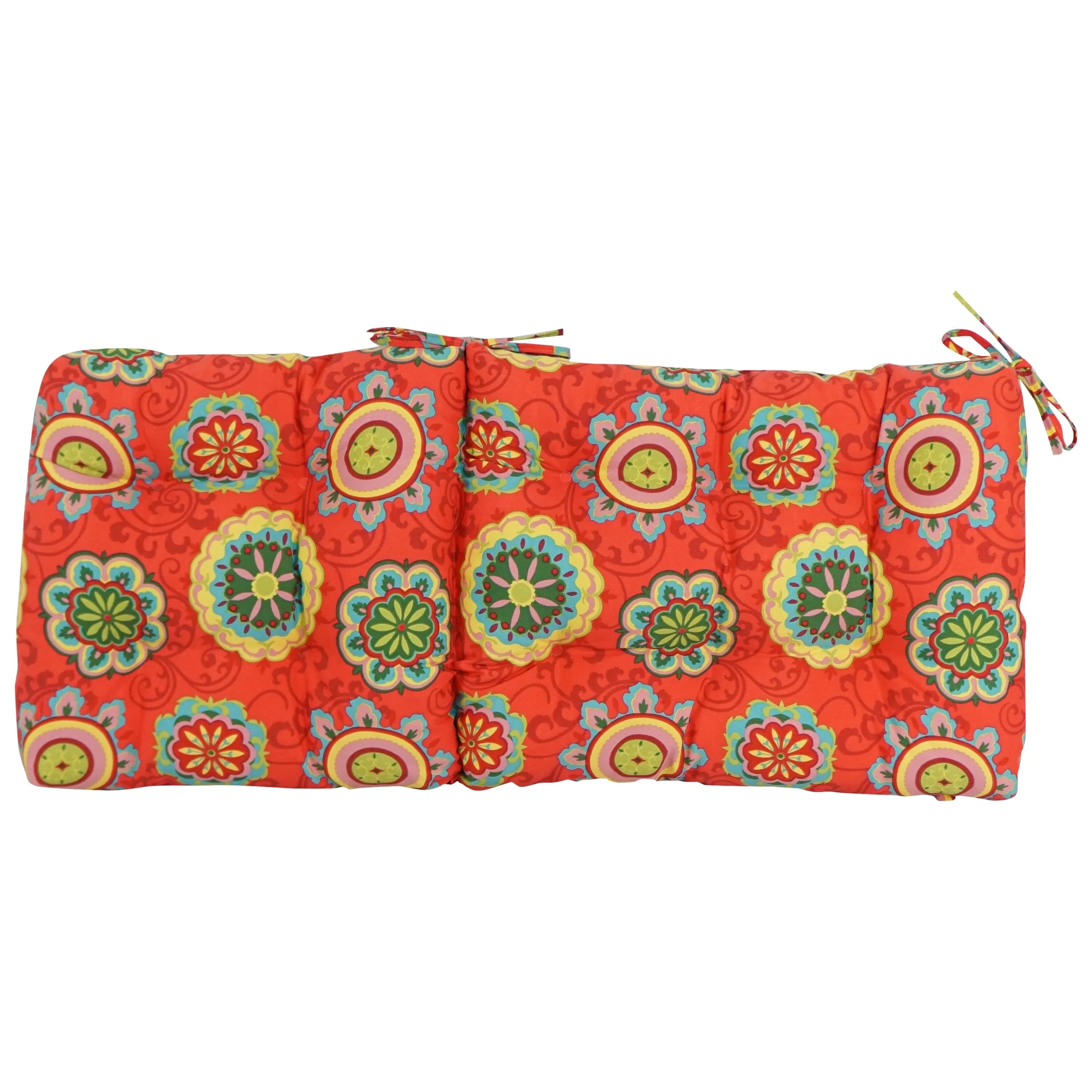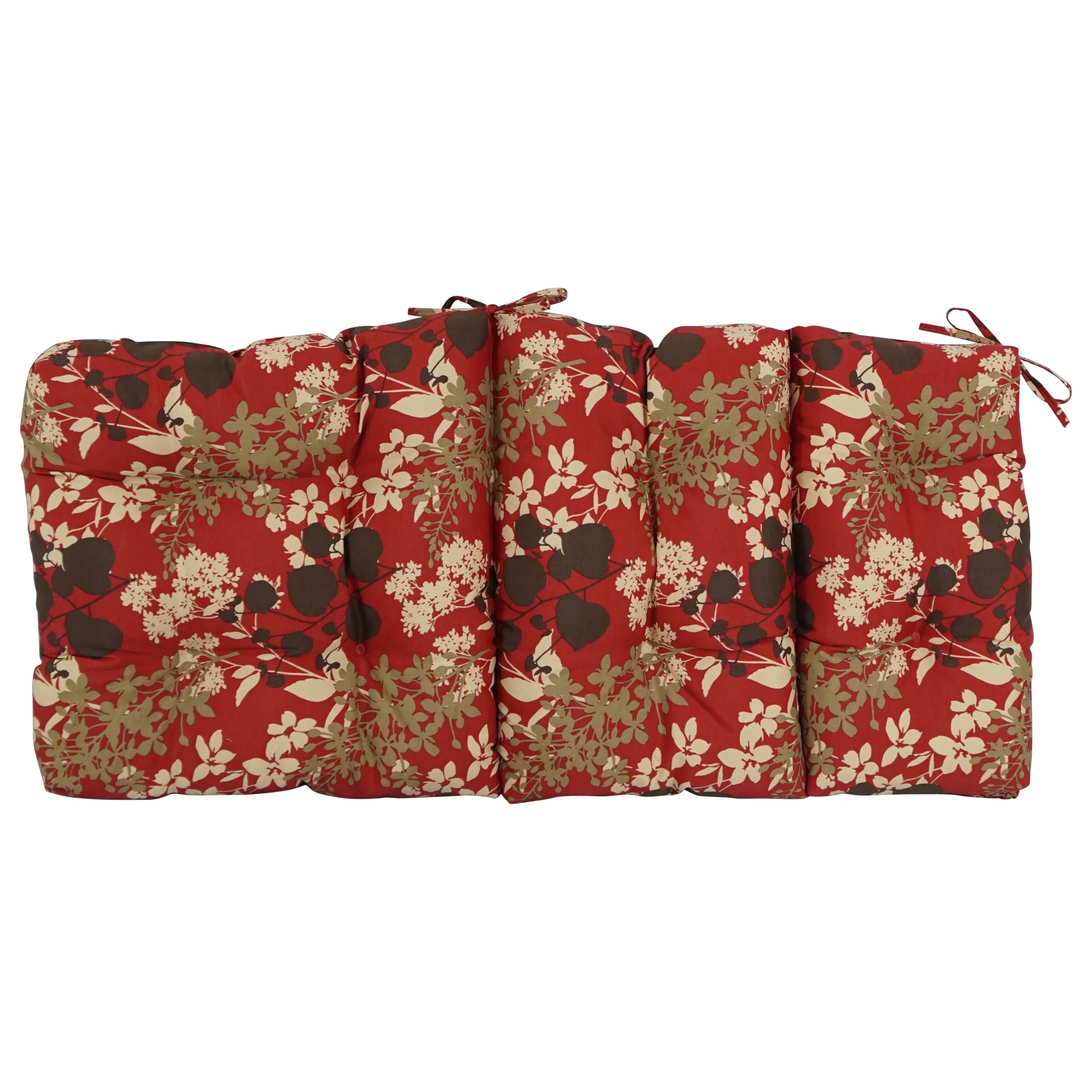 Add a touch of comfort and splash of color to your outdoor patio furnishings with this seat/back chair cushion. Crafted of durable, UV-resistant, and fade-resistant spun polyester outdoor fabric, these cushions include a classic tufted design for �ample cushioned loft. �This cushion can be easily secured to chairs using the attached fabric ties and is available is three sizes to allow a snug fit to a variety of patio and garden chairs. �Available in a wide variety of fabric patterns ranging from the timeless to the trendy, it is easy to select an color option that is a perfect match for your existing outdoor style.