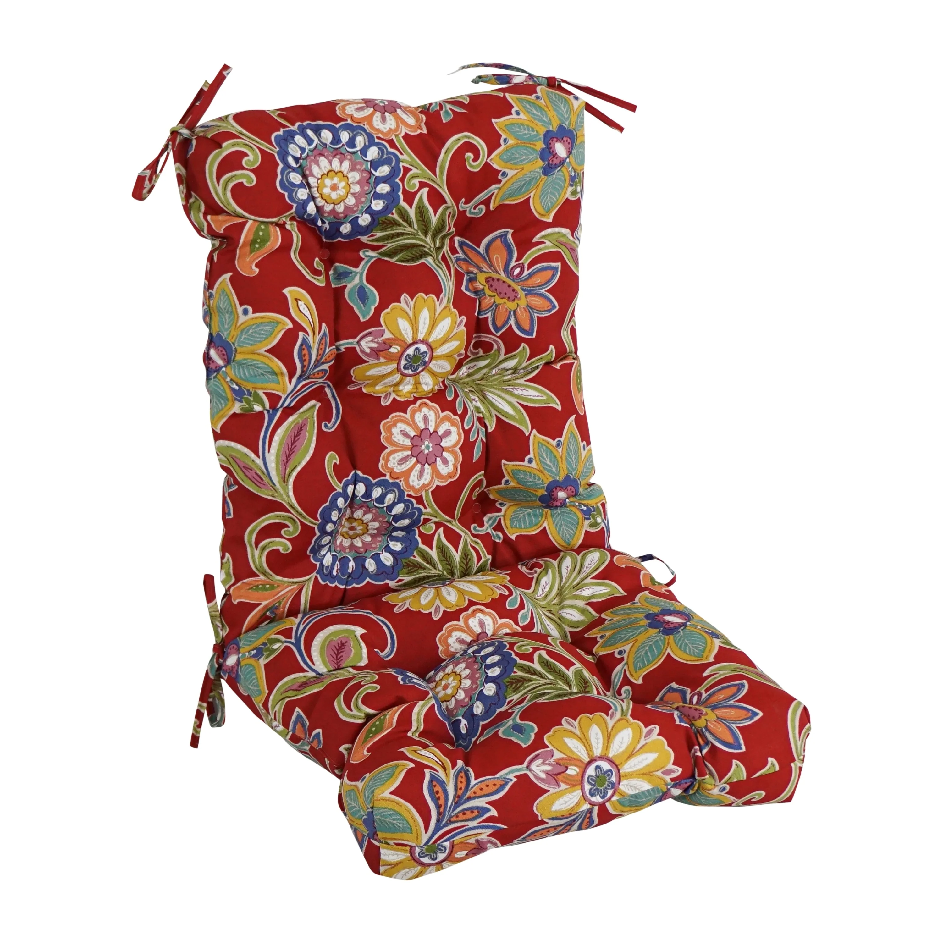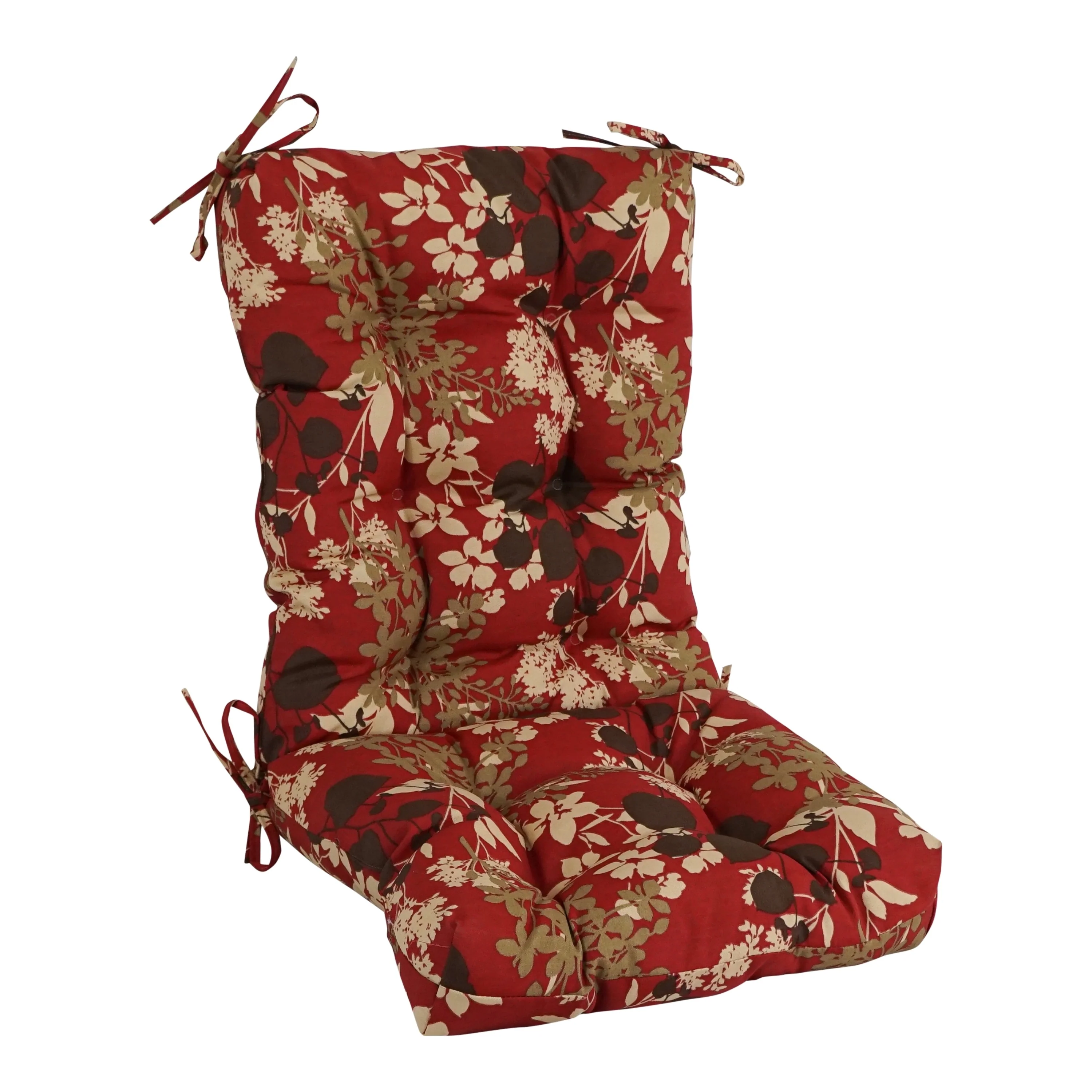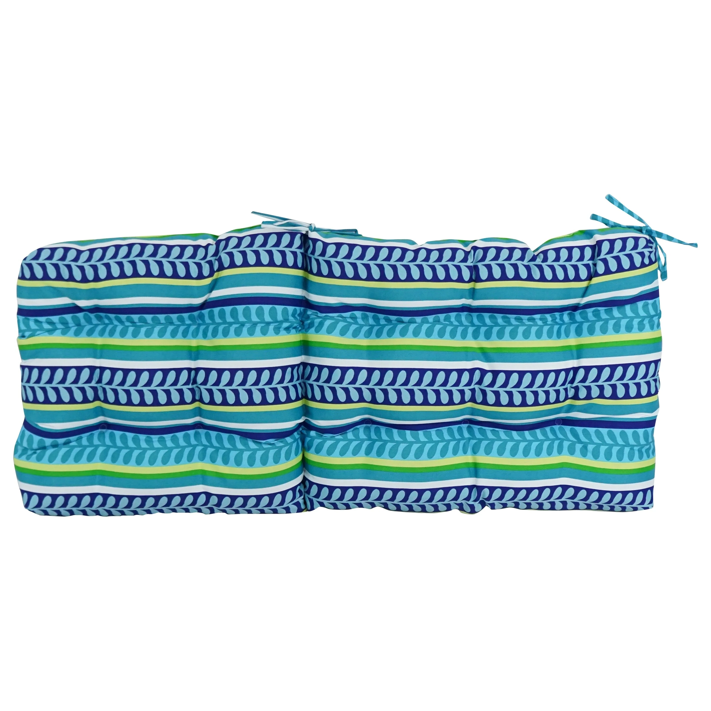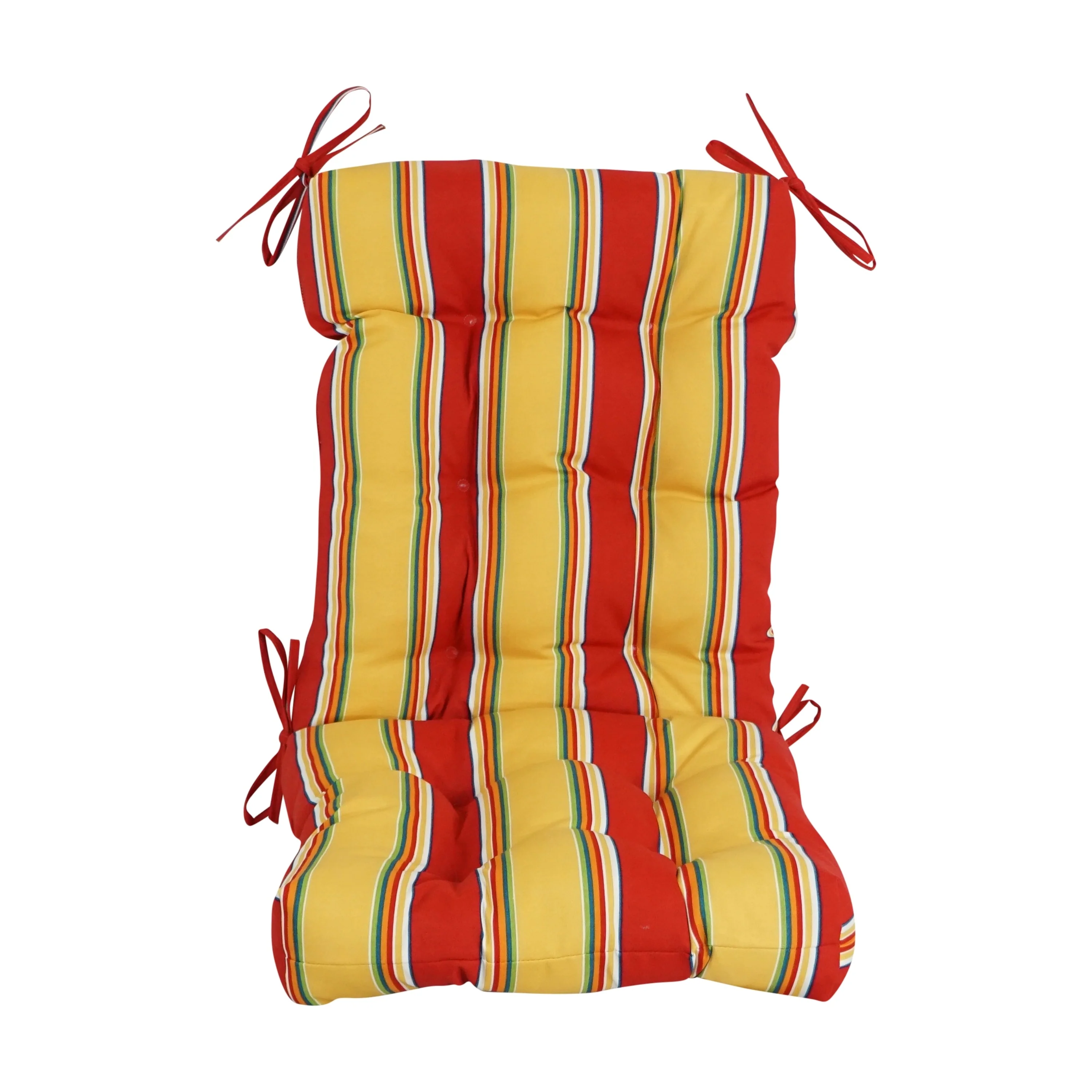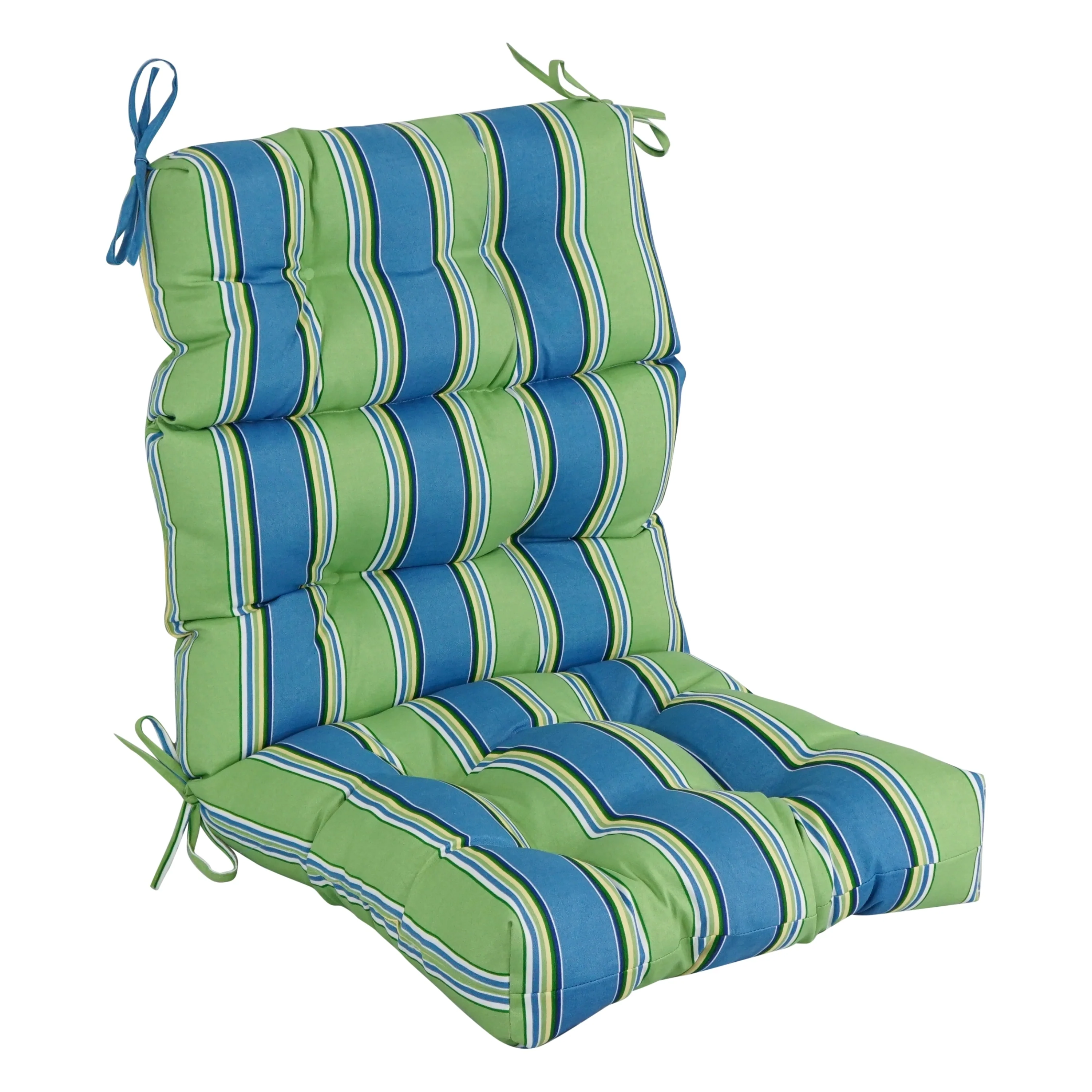 Add a touch of comfort and splash of color to your outdoor patio furnishings with this seat/back chair cushion. Crafted of durable, UV-resistant, and fade-resistant spun polyester outdoor fabric, these cushions include a classic tufted design for �ample cushioned loft. �This cushion can be easily secured to chairs using the attached fabric ties and is available is three sizes to allow a snug fit to a variety of patio and garden chairs. �Available in a wide variety of fabric patterns ranging from the timeless to the trendy, it is easy to select an color option that is a perfect match for your existing outdoor style.