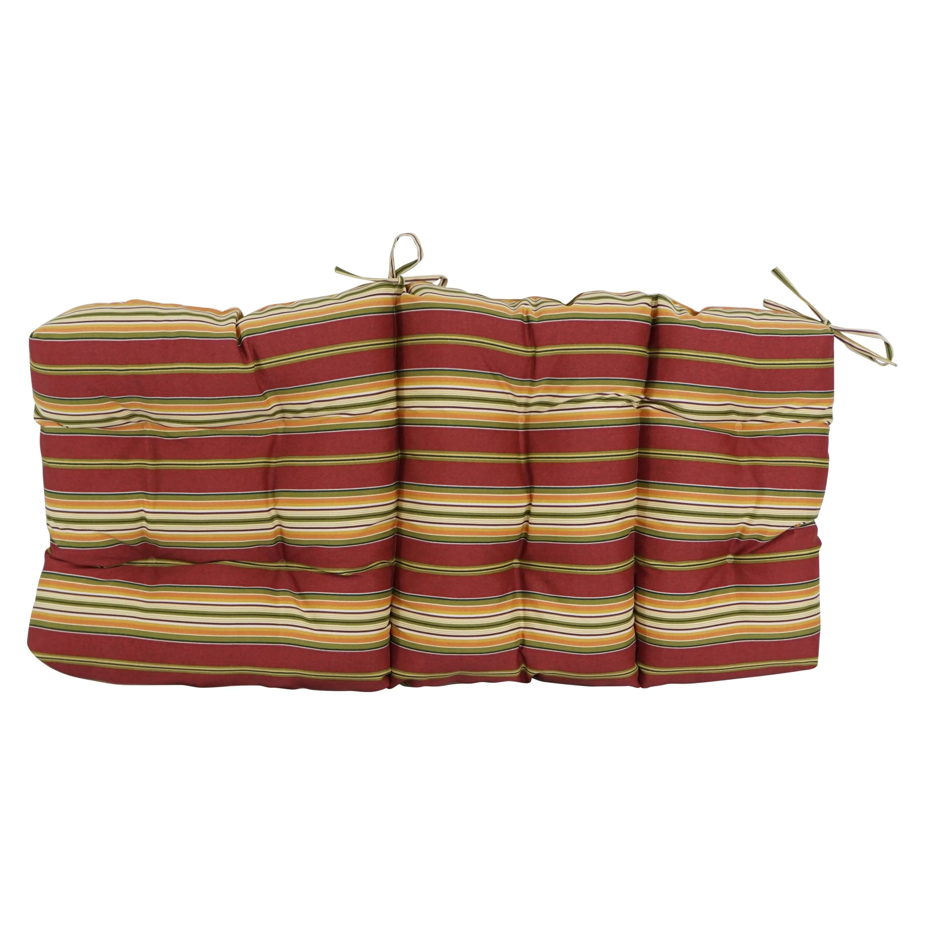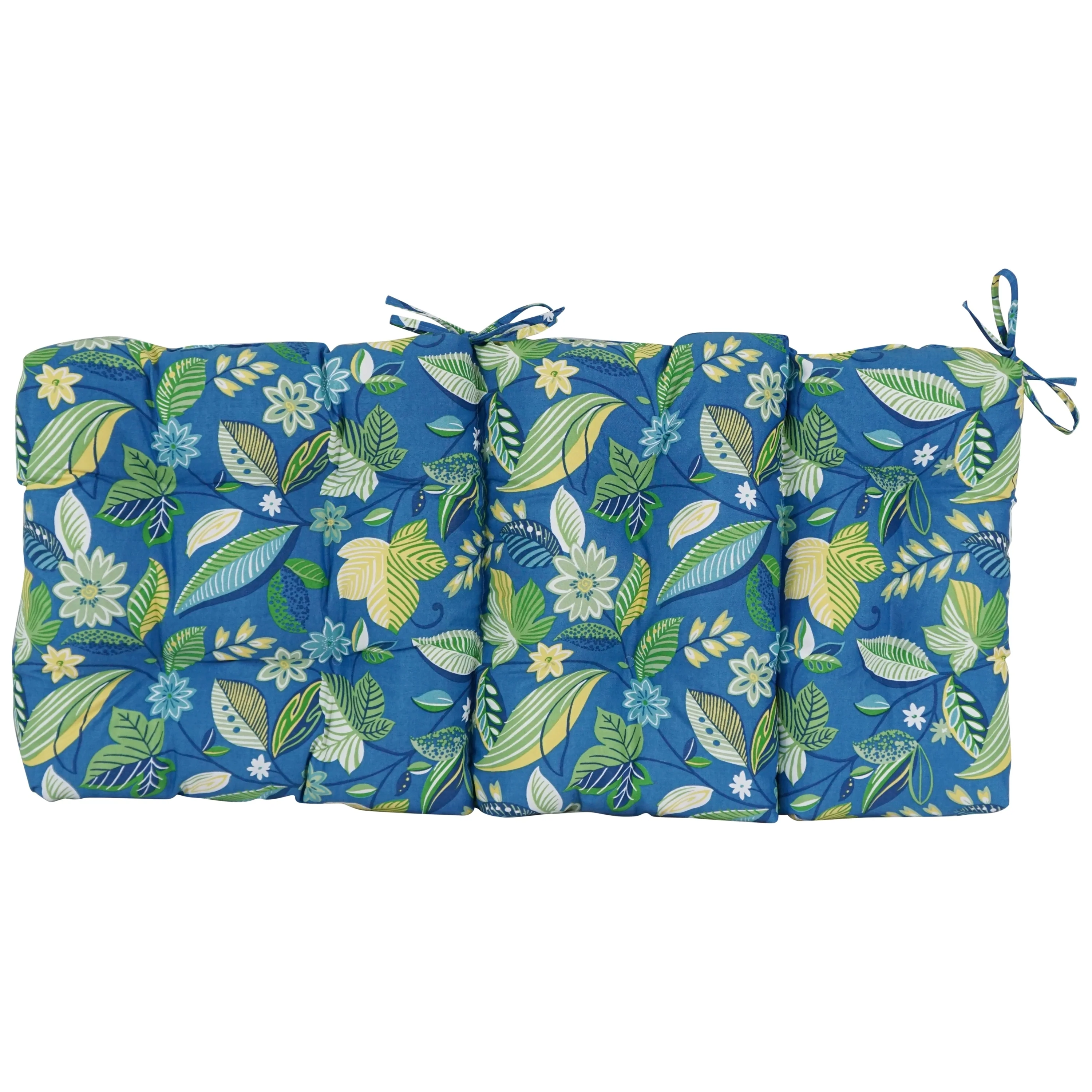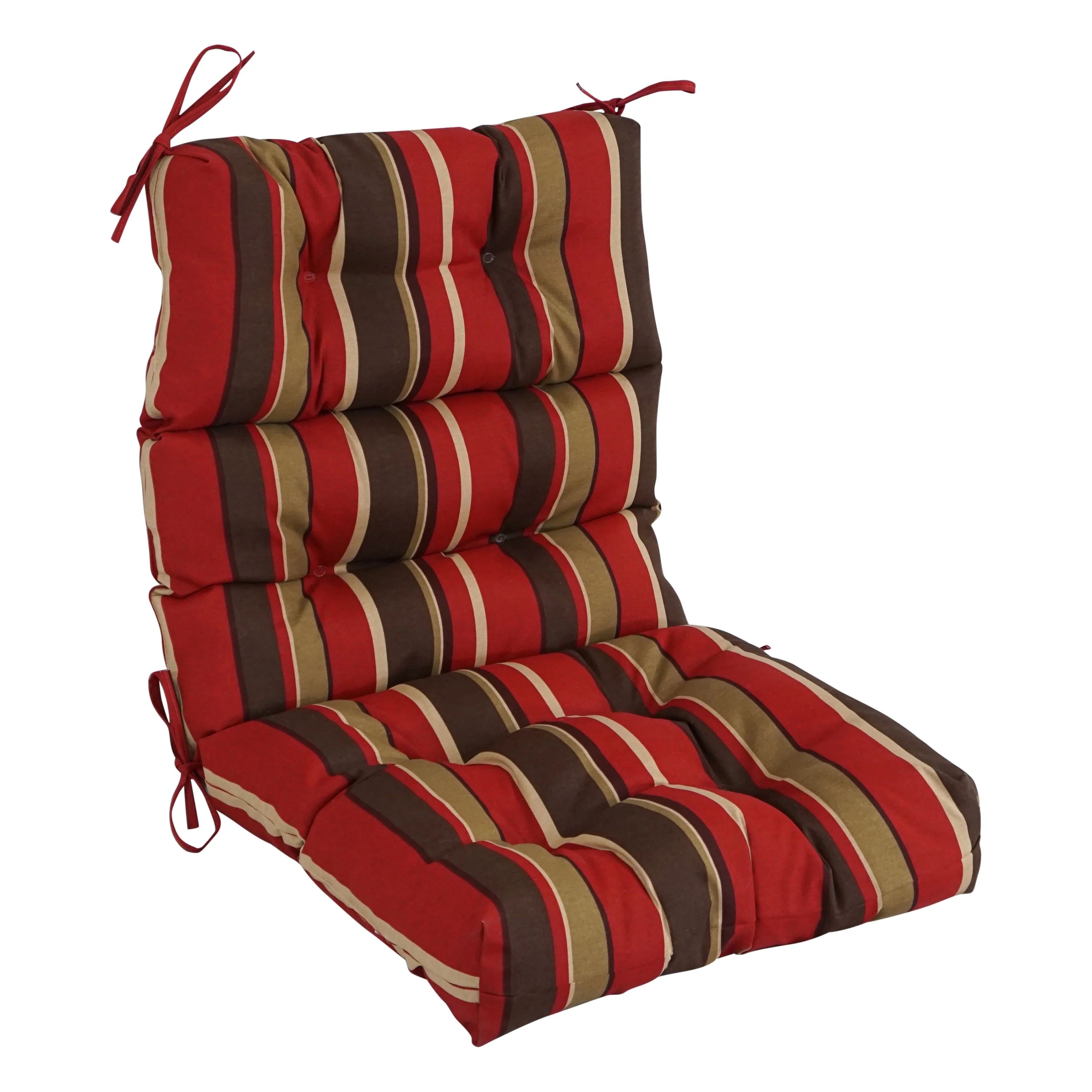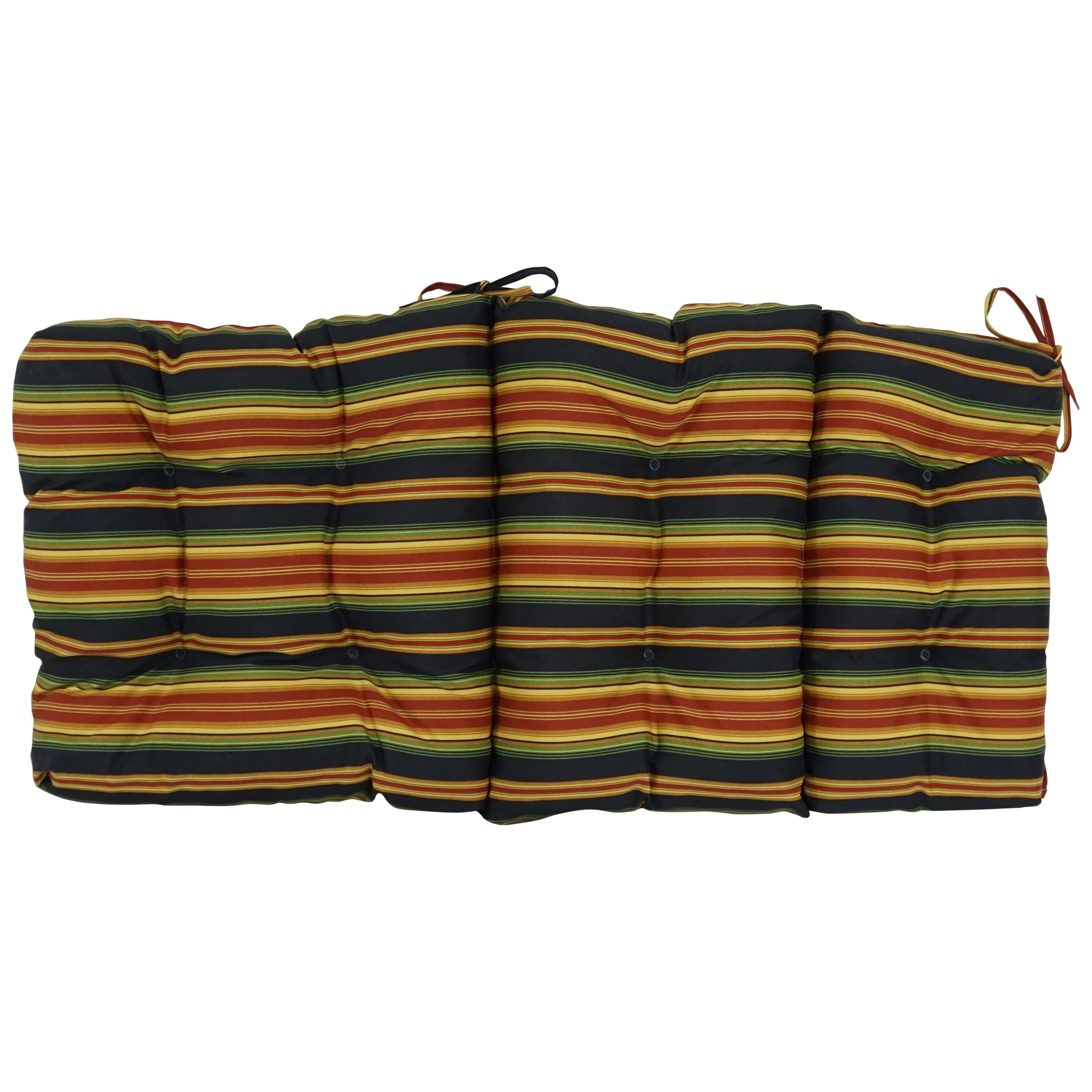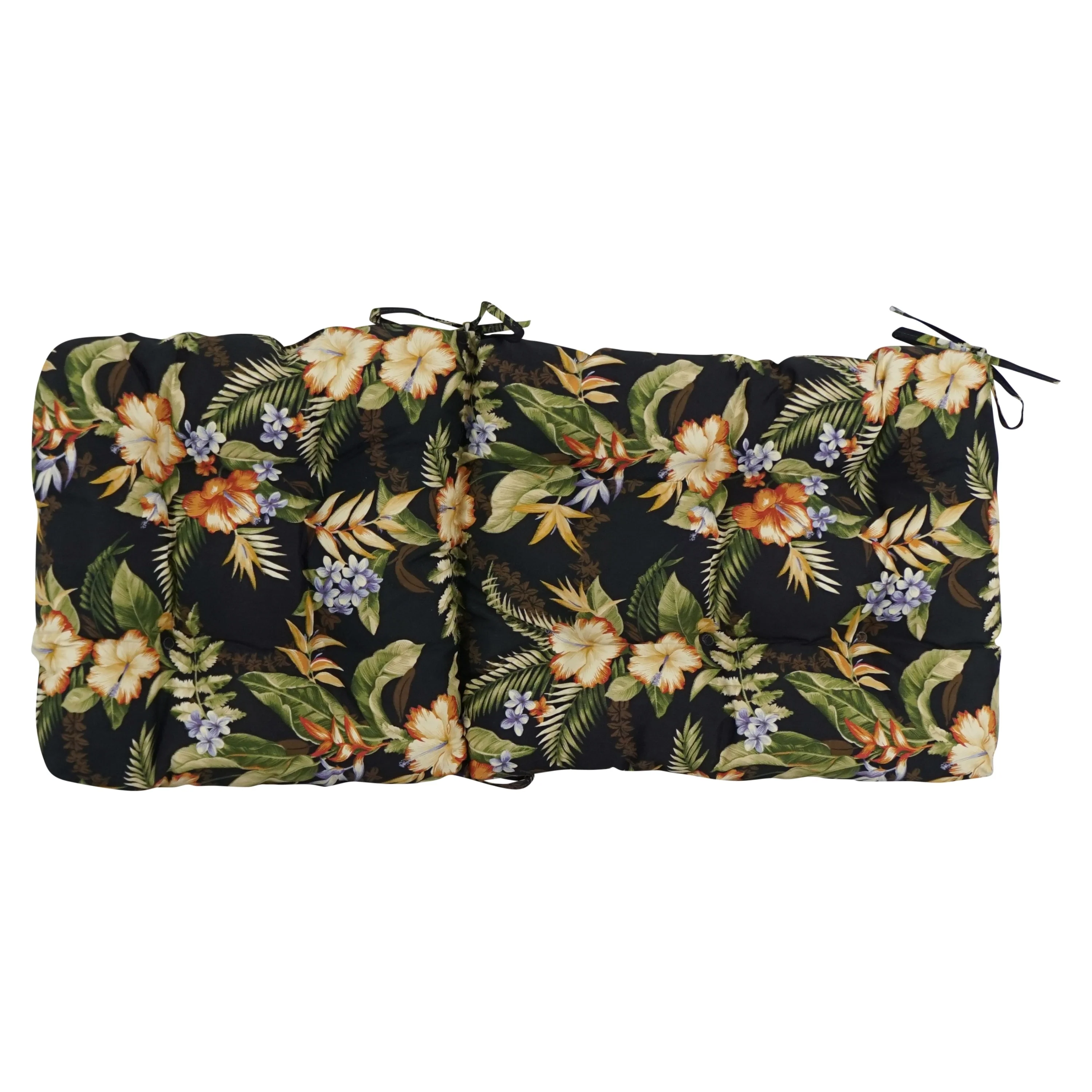 Add a touch of comfort and splash of color to your outdoor patio furnishings with this seat/back chair cushion. Crafted of durable, UV-resistant, and fade-resistant spun polyester outdoor fabric, these cushions include a classic tufted design for �ample cushioned loft. �This cushion can be easily secured to chairs using the attached fabric ties and is available is three sizes to allow a snug fit to a variety of patio and garden chairs. �Available in a wide variety of fabric patterns ranging from the timeless to the trendy, it is easy to select an color option that is a perfect match for your existing outdoor style.