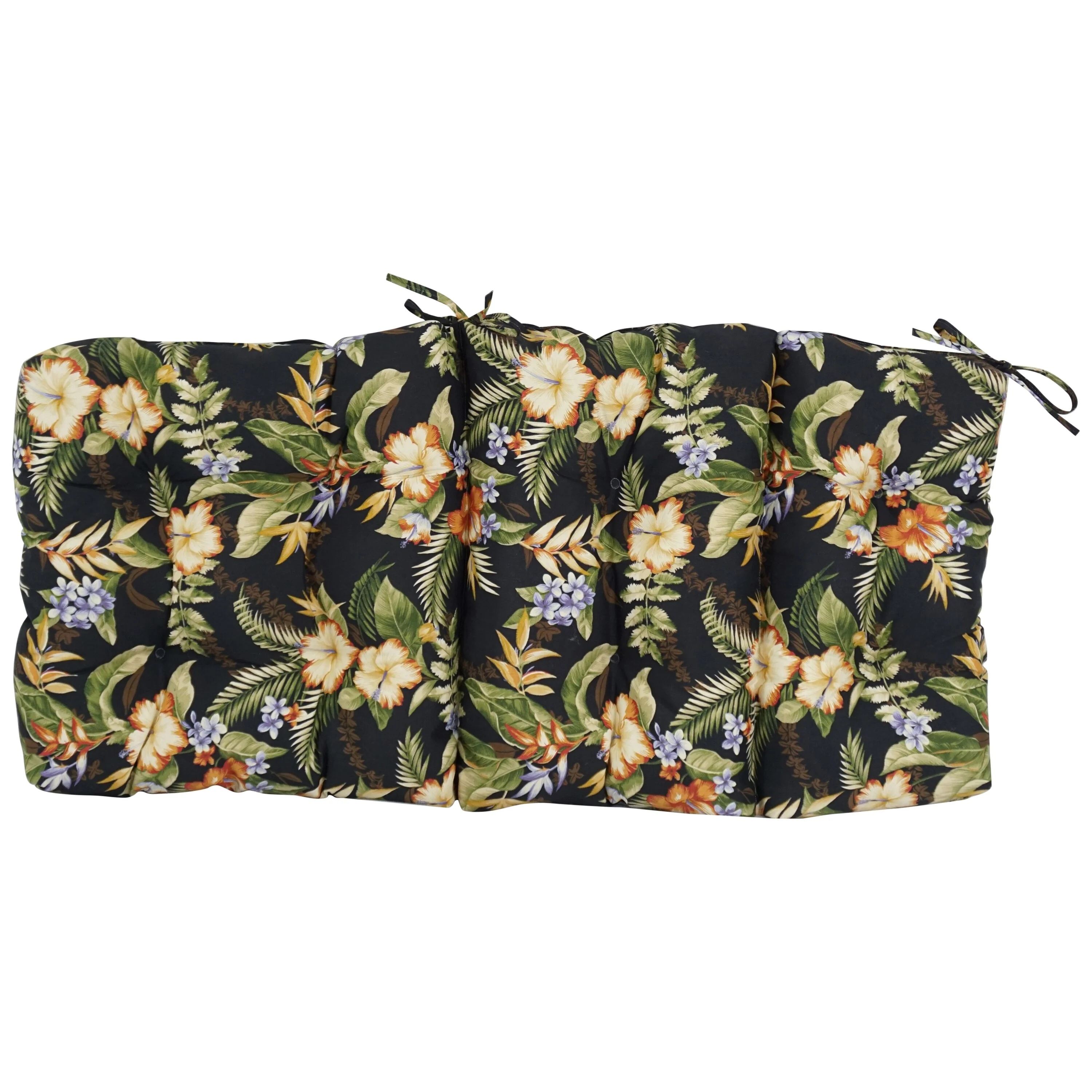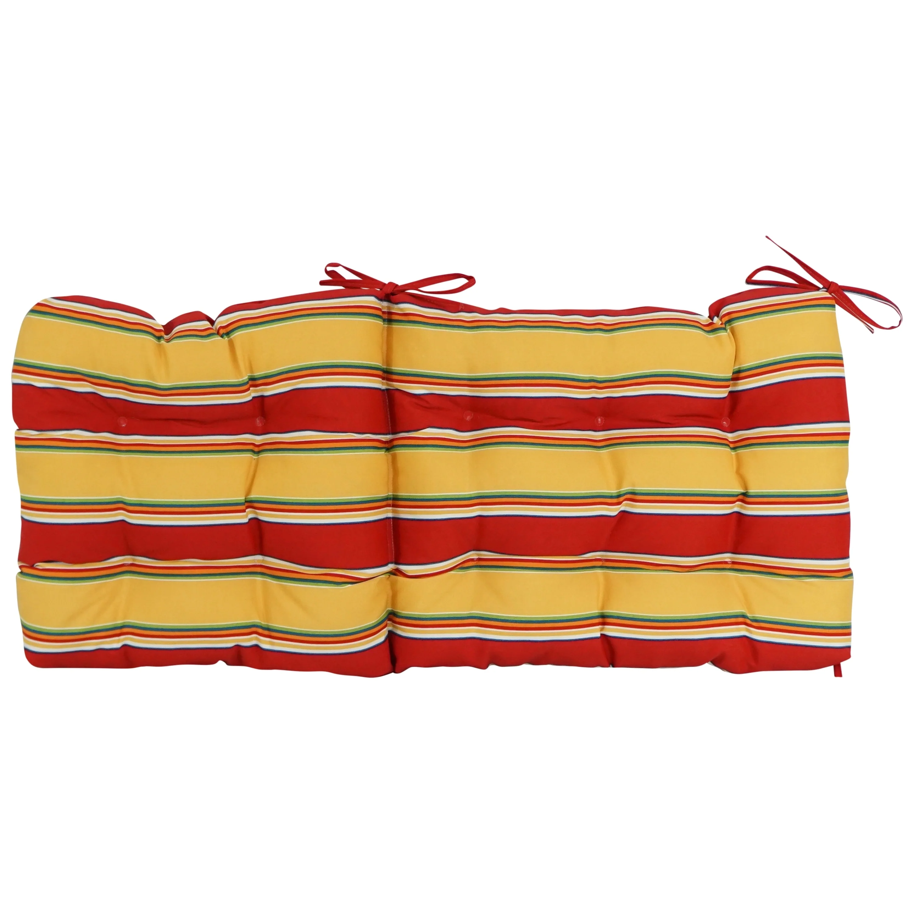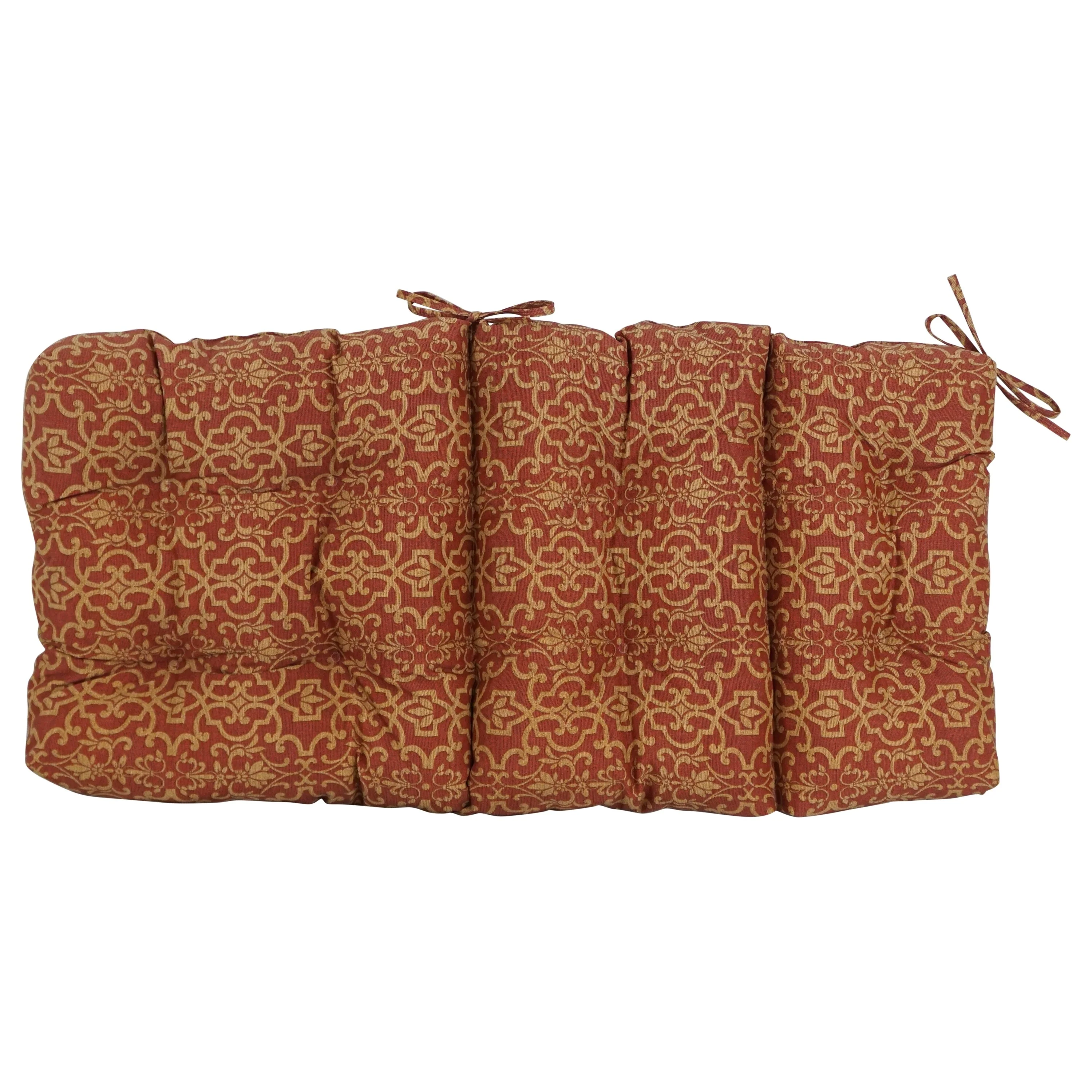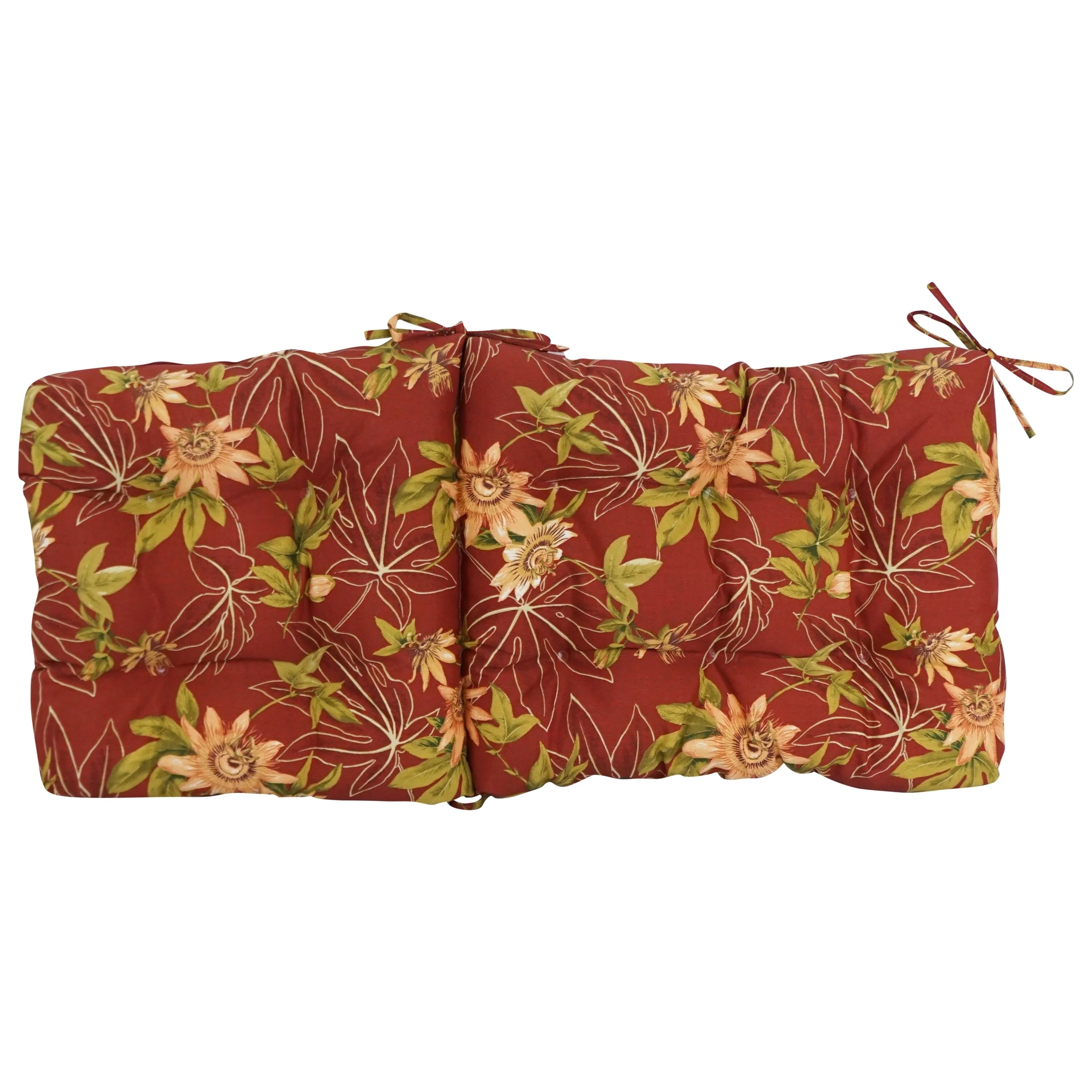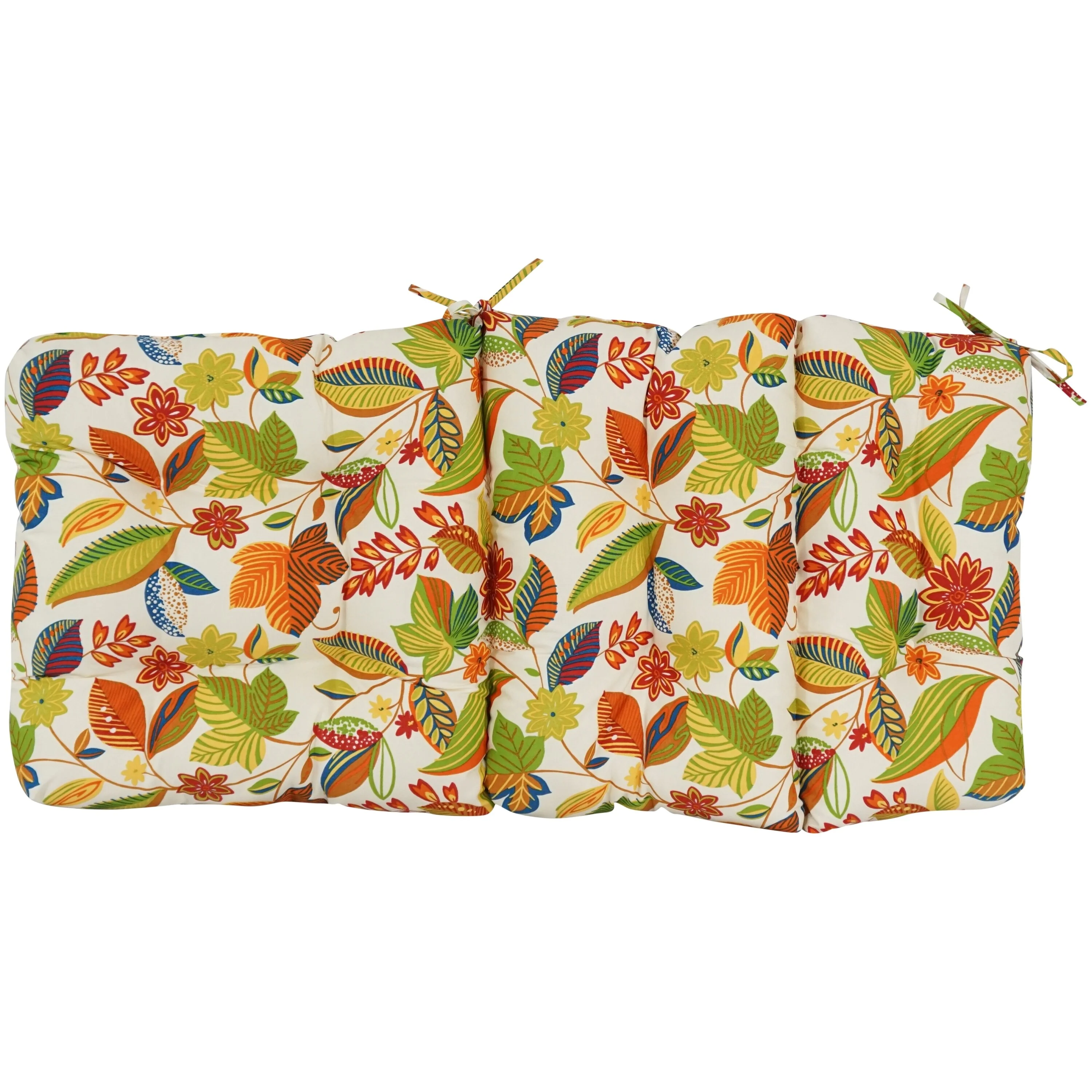 Add a touch of comfort and splash of color to your outdoor patio furnishings with this seat/back chair cushion. Crafted of durable, UV-resistant, and fade-resistant spun polyester outdoor fabric, these cushions include a classic tufted design for �ample cushioned loft. �This cushion can be easily secured to chairs using the attached fabric ties and is available is three sizes to allow a snug fit to a variety of patio and garden chairs. �Available in a wide variety of fabric patterns ranging from the timeless to the trendy, it is easy to select an color option that is a perfect match for your existing outdoor style.