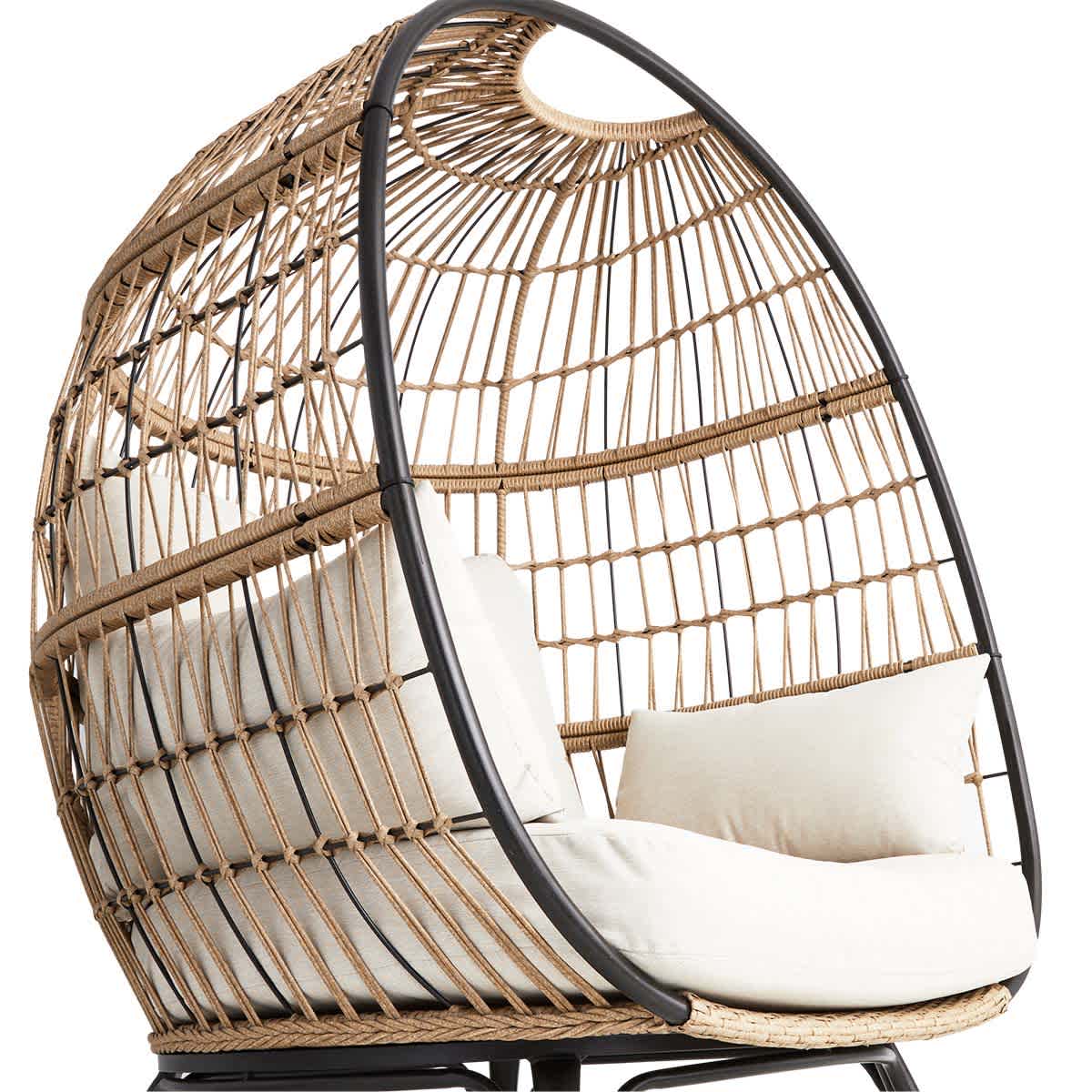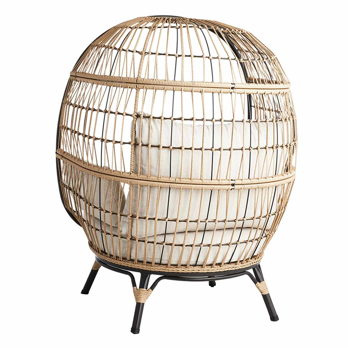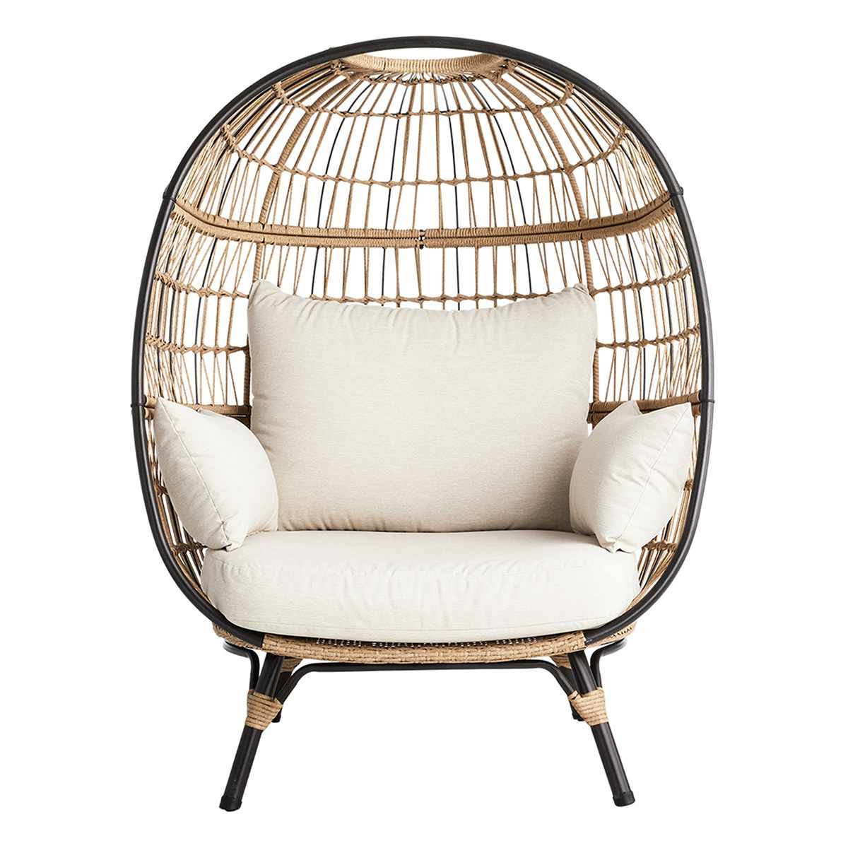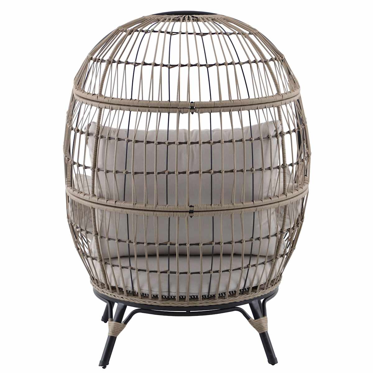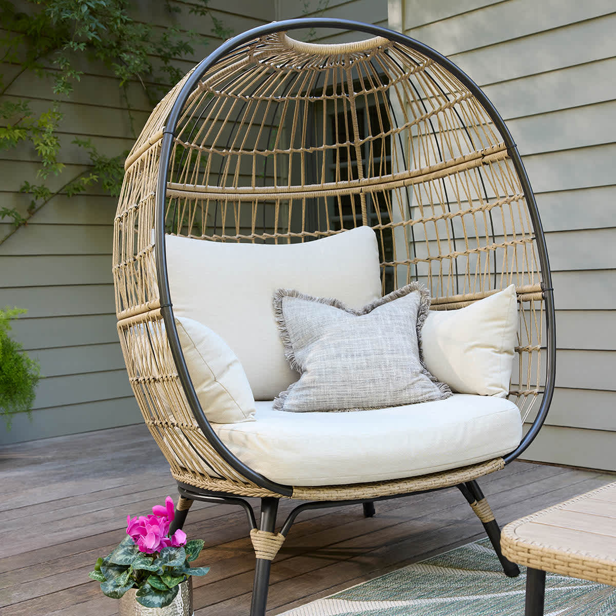 Explore what's right around the corner. Choose your own adventure every day. Savor it all and say yes to what comes next. Found & Fable is a collection only found at At Home. Create a calming modern aesthetic in your outdoor living space with our Found & Fable Paloma Taupe Wicker Oversized Egg Chair with Sand Cushions.