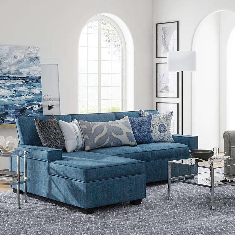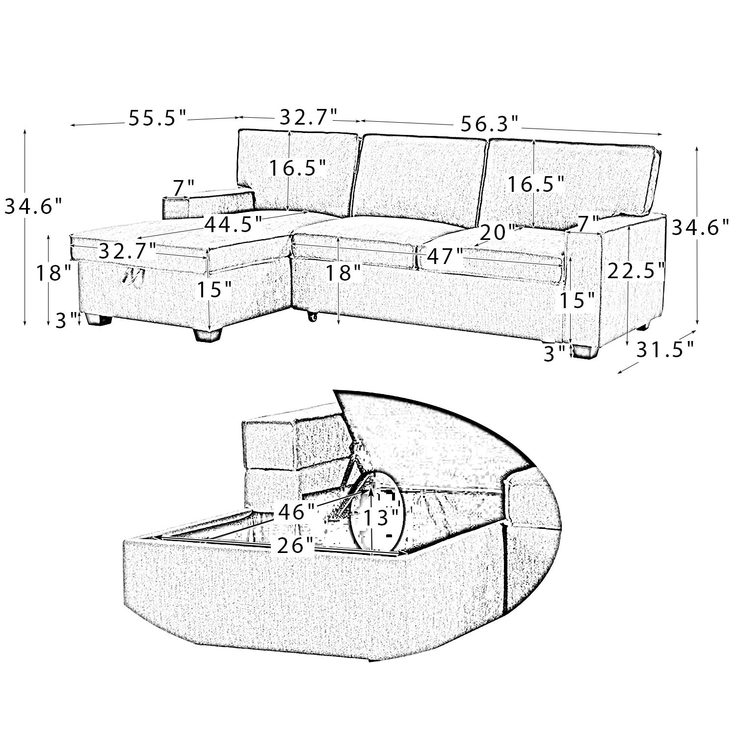 Classic lines and contemporary design make the sectional a timeless piece for living rooms and seating areas. Whether you're entertaining guests or having a family stay for a weekend, this Sleeper Sectional with a pull-out bed and compartment lets you do both. Soft fabric upholstery on a hardwood frame with overstuffed back cushions and foam seat cushion. The perfect centerpiece for your seating arrangement, it blends contemporary appeal with simple sophistication. Plus, this sofa easily converts to a pull-out sleeper, while the chaise features hidden storage.?