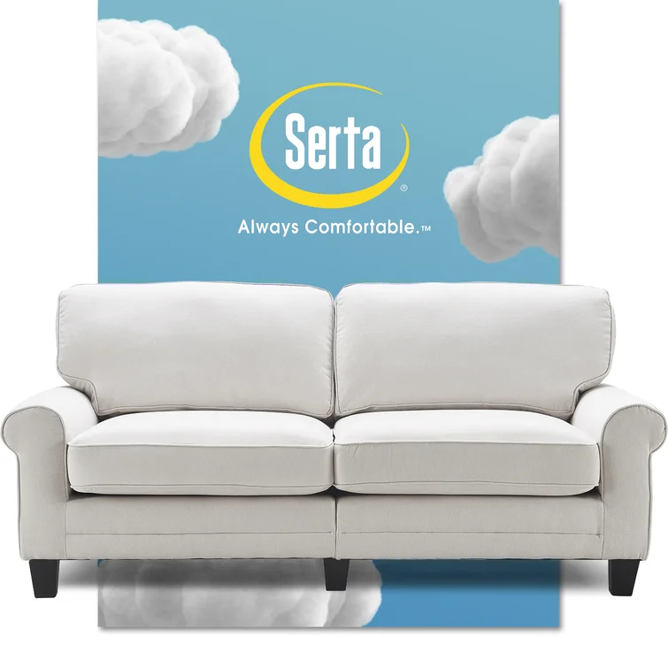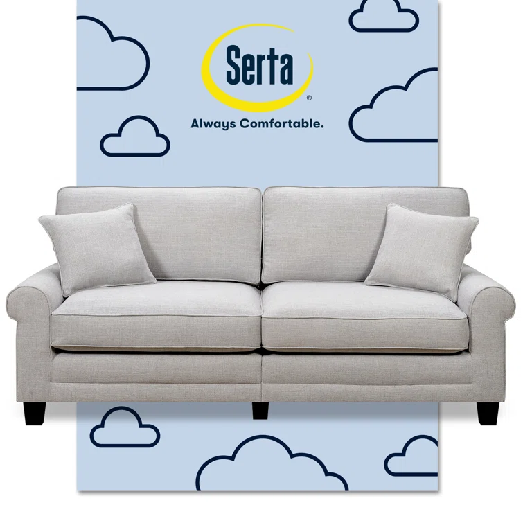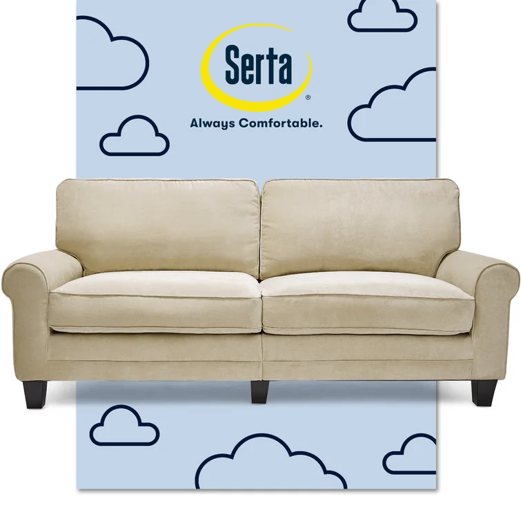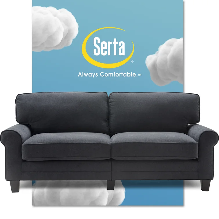 Enjoy functional style and plush, comfortable seating with the Copenhagen Rolled Arm Sofa. A great solution for smaller spaces, its compact size, and easy tool-free assembly make it an affordable and stylish seating solution for your apartment, condo, or office. Softly rounded arms and pillowy back cushions bring traditional style to your living room, den, or game room. Quality hardwood materials deliver strength and stability you can count on, while individually wrapped coils surrounded by high-density foam and poly-fibers provide comfortable seating you can sit back into. Designed to match pieces in the Copenhagen Collection, this Serta sofa can be combined with another sofa, loveseat, and accent chair for a completely coordinated look.
