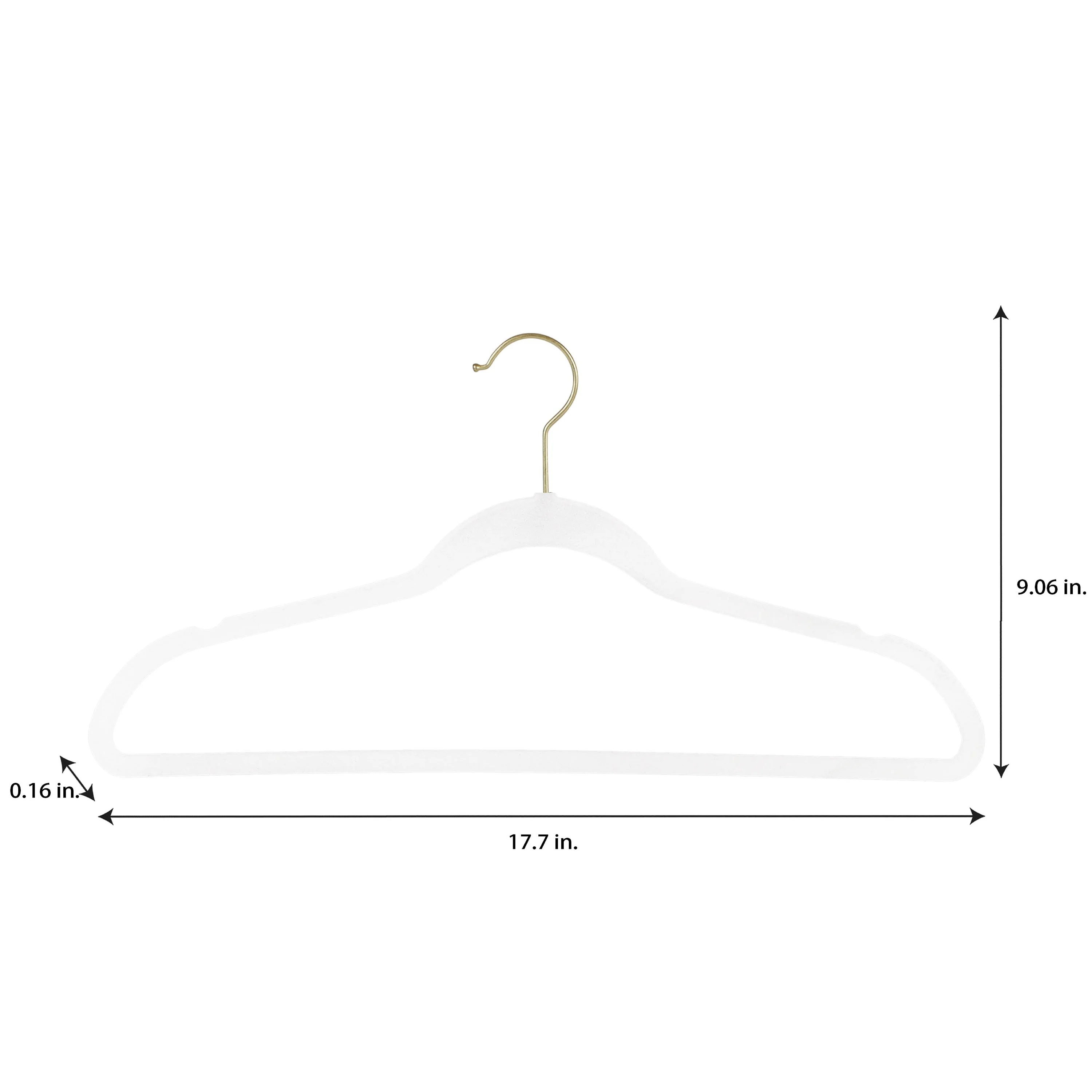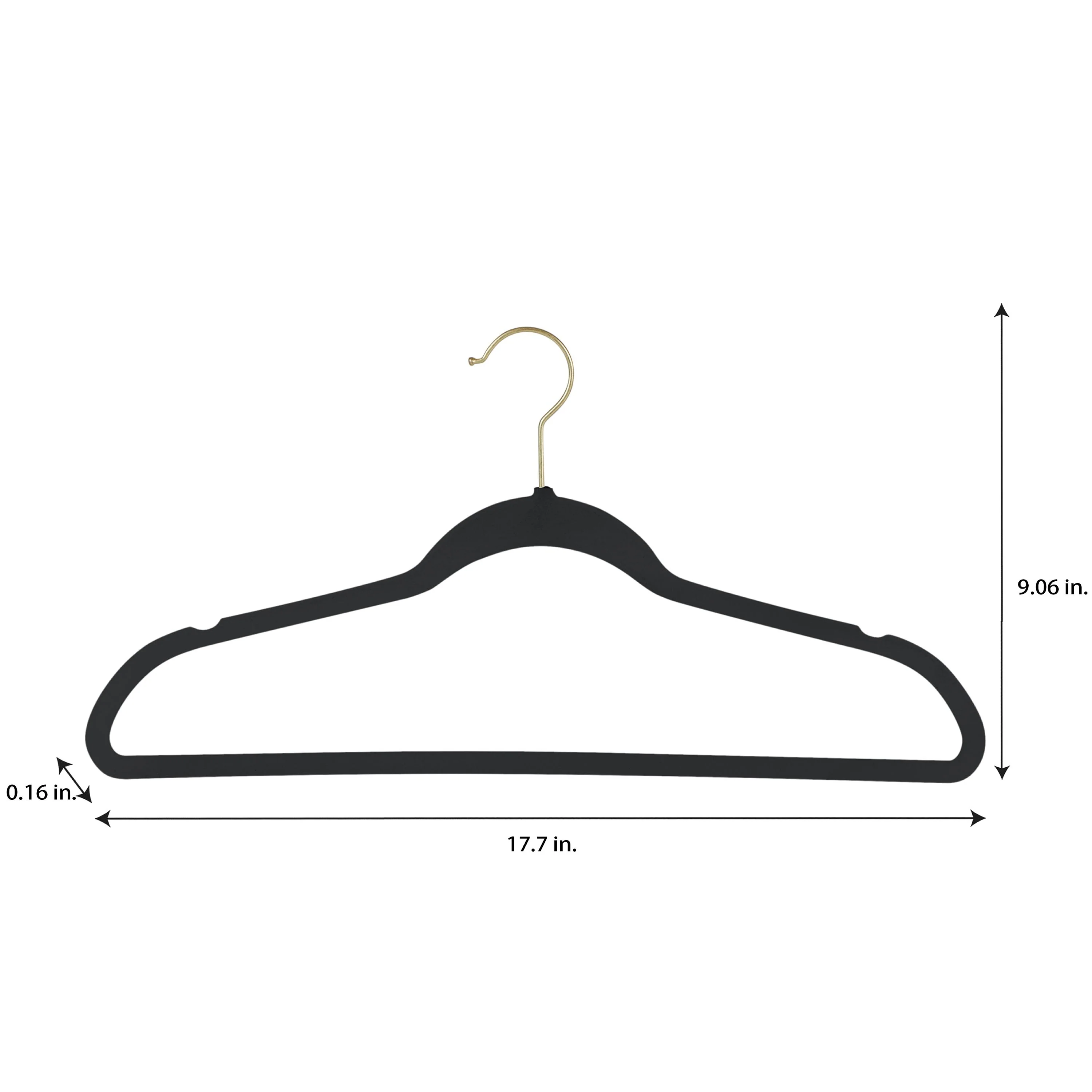 This Velvet Hanger is an elegant way to create both stylish and functional clothing storage. Beautiful, soft and durable, this velvet suit hanger is contoured to keep suits, shirts, dresses and jackets wrinkle-free. This 25-pack of anti-slip hangers features a velvet coating that is gentle on delicate garments to prevent damage. The velvet coating also provides a non-slip surface that holds fabrics in place. This hanger features durable construction that provides strength and reliability, providing you lasting use. Slim Design optimizes closet space.